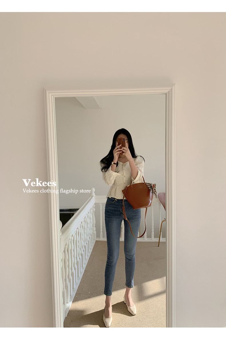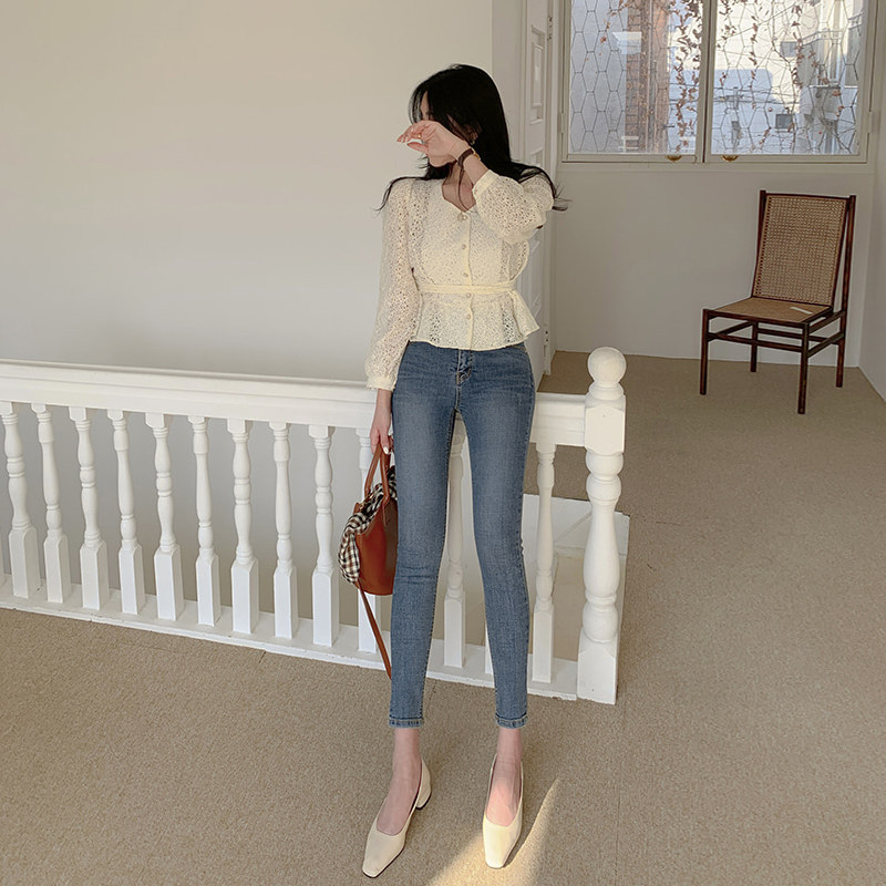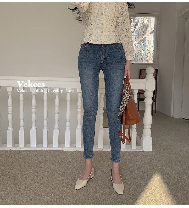 Осенние джинсы, весенние штаны, ретро приталенный карандаш, высокая талия, в корейском стиле