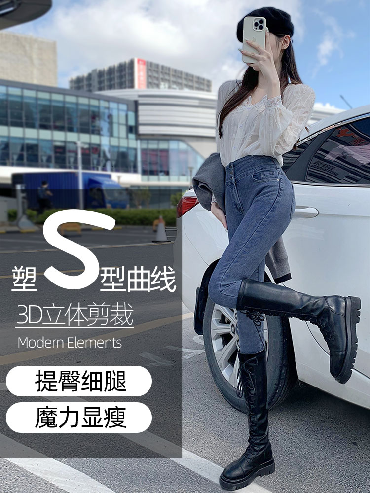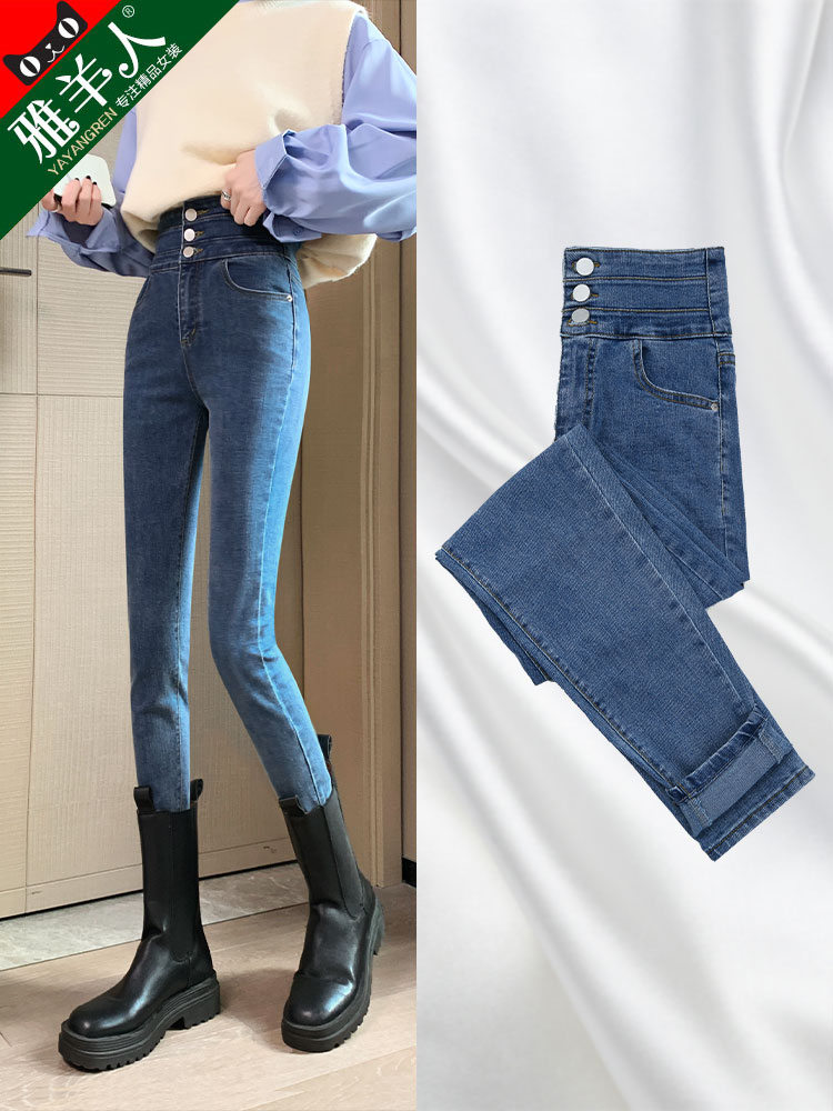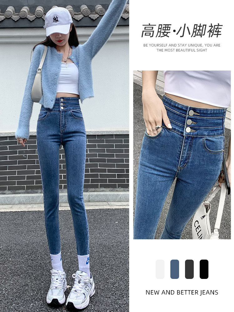 Джинсы, штаны, осенний эластичный универсальный карандаш, высокая талия, 2025 года, в обтяжку, по фигуре