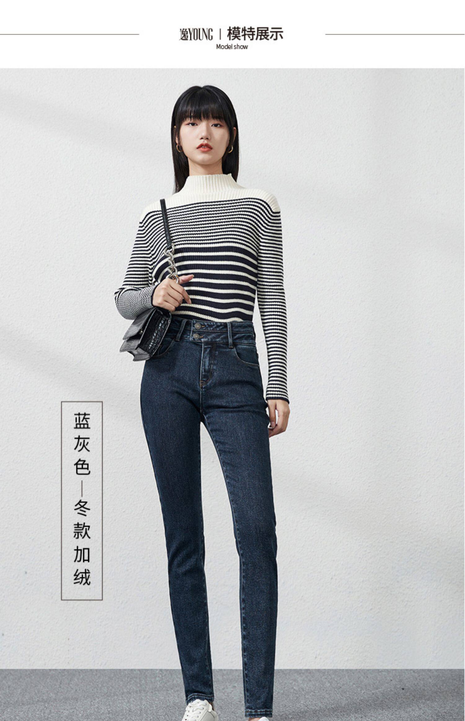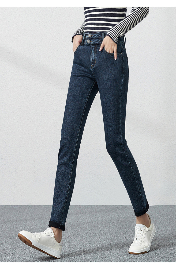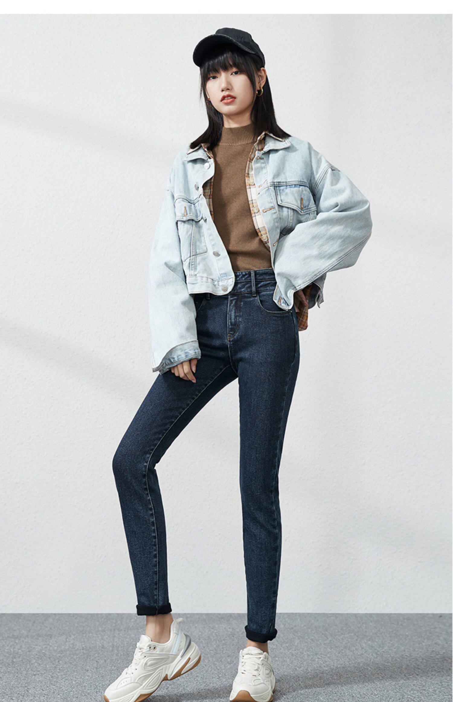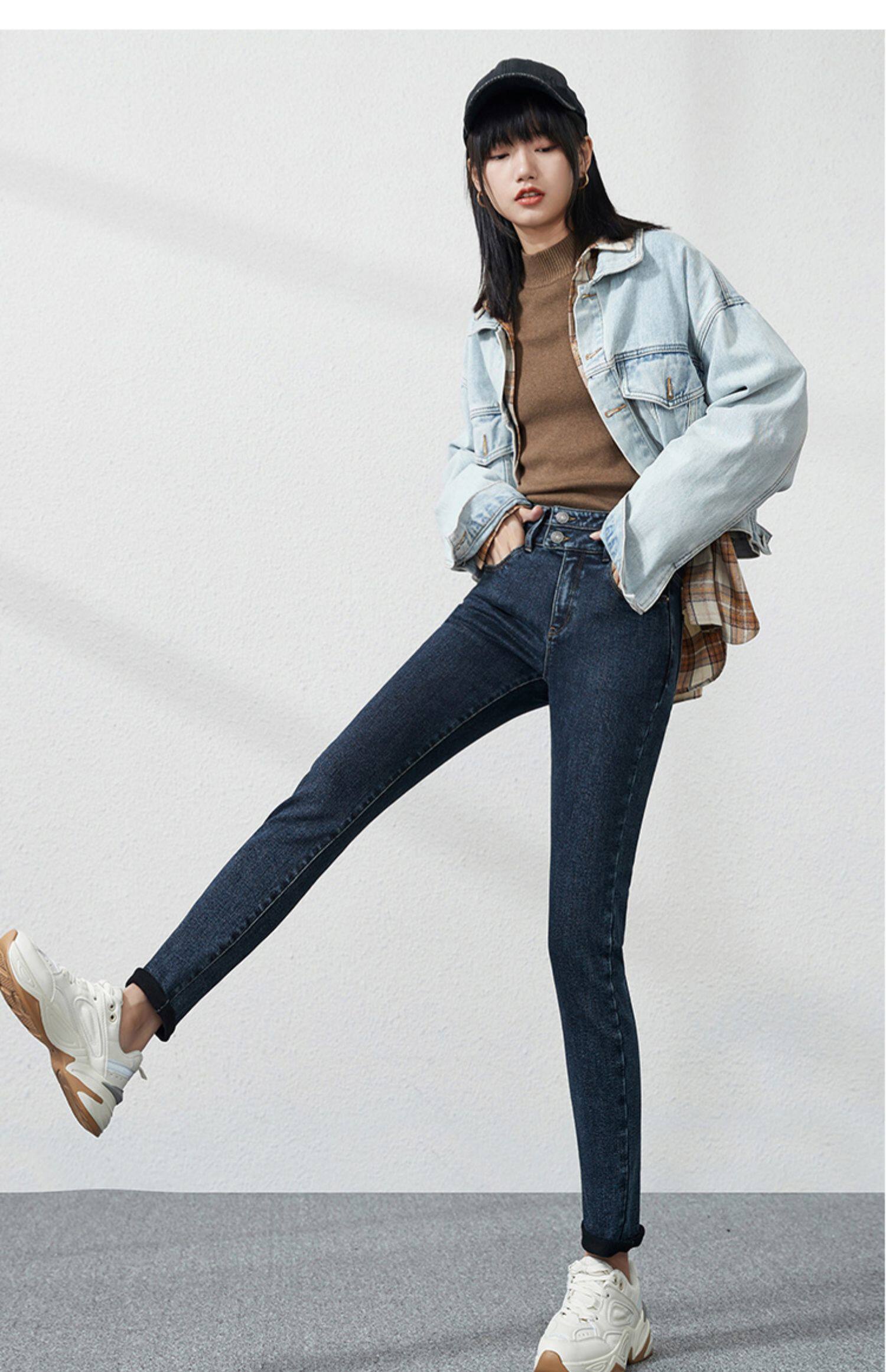 Джинсы, приталенные штаны, зимний эластичный карандаш, высокая талия, коллекция 2021, в обтяжку