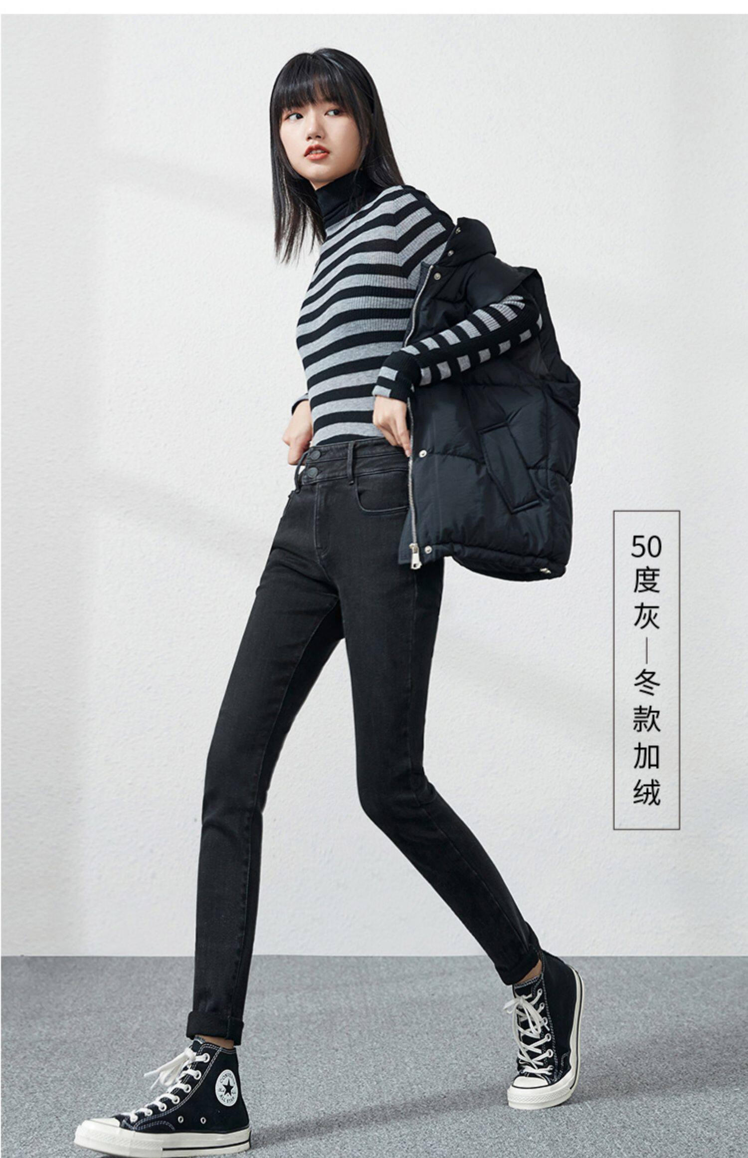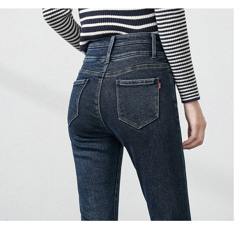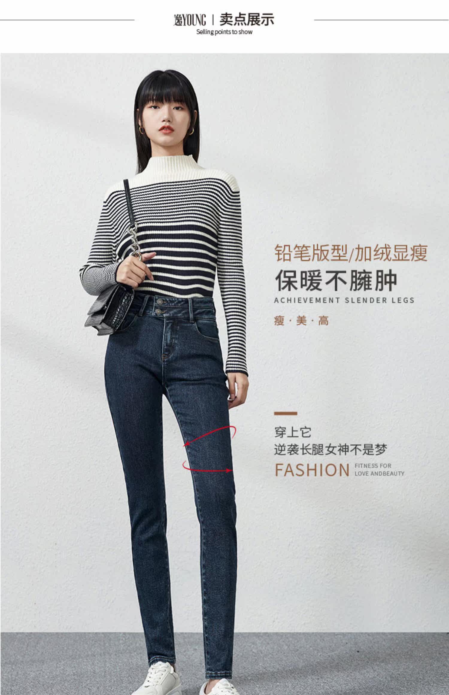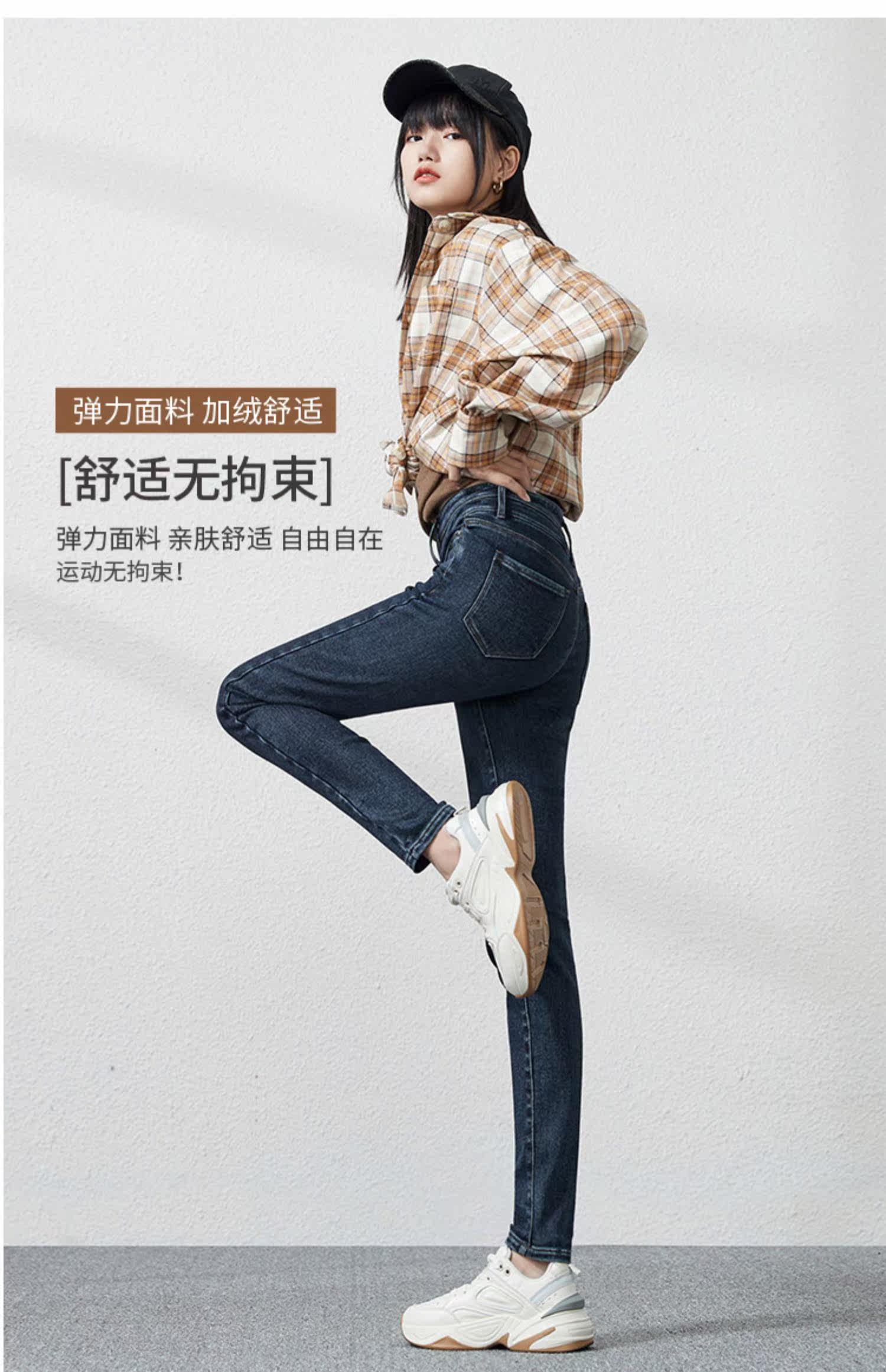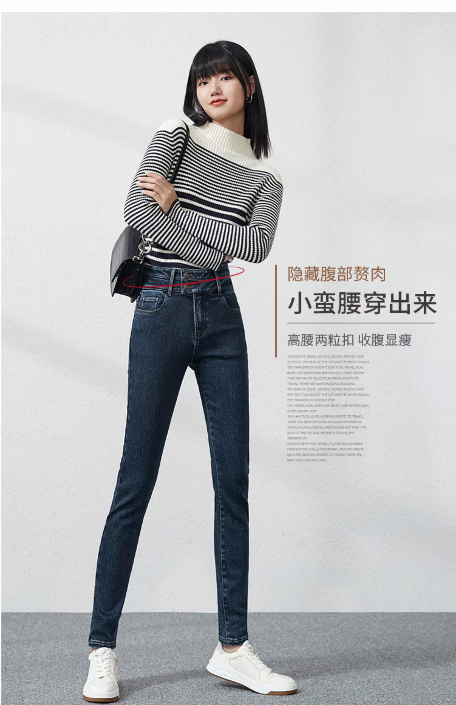 Джинсы, приталенные штаны, зимний эластичный карандаш, высокая талия, коллекция 2021, в обтяжку