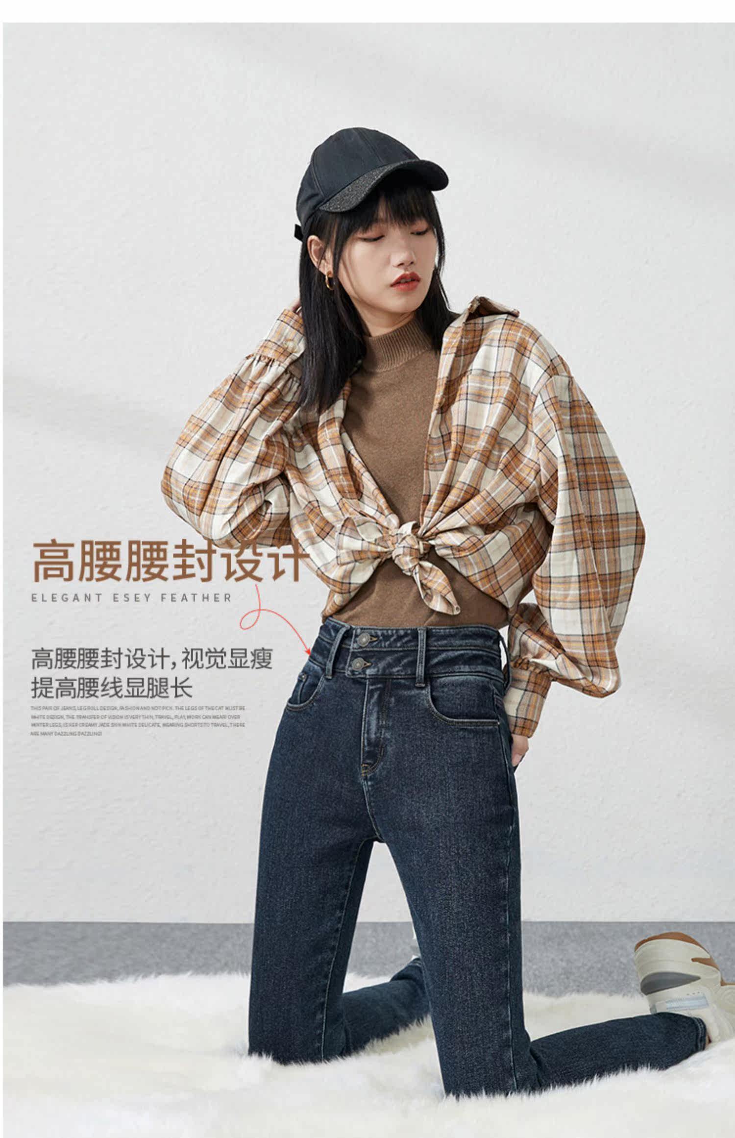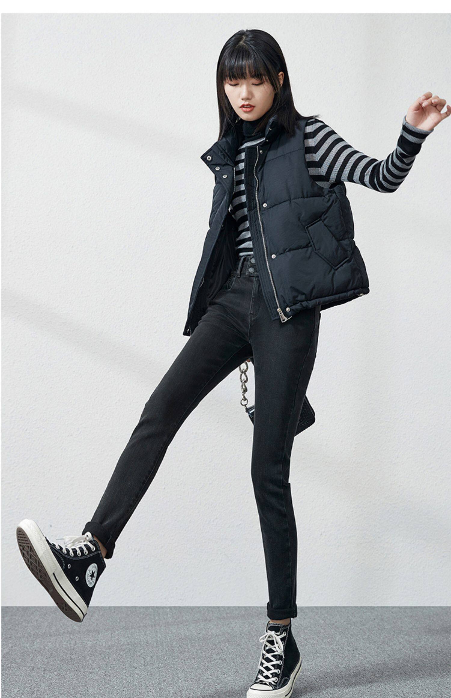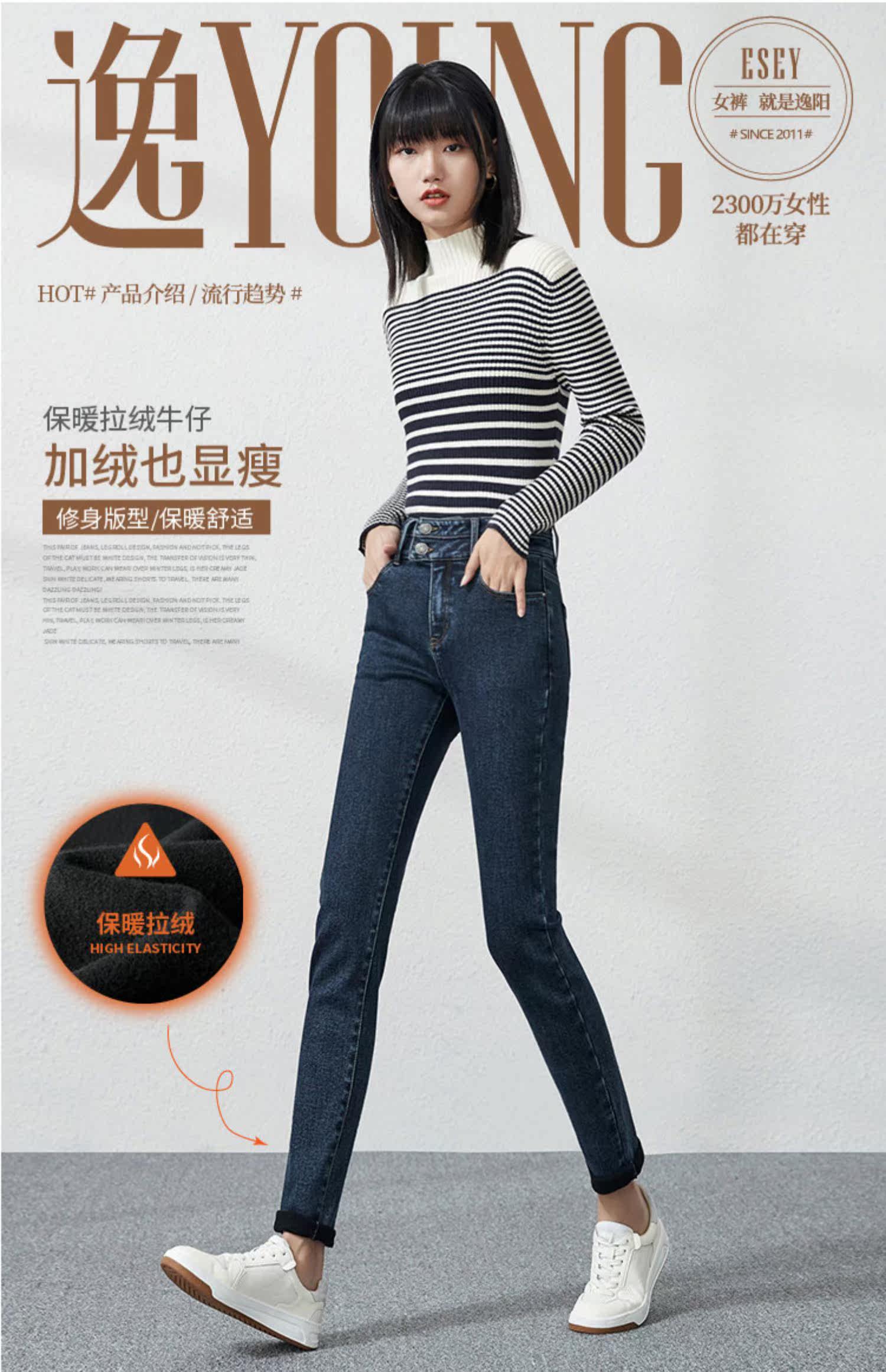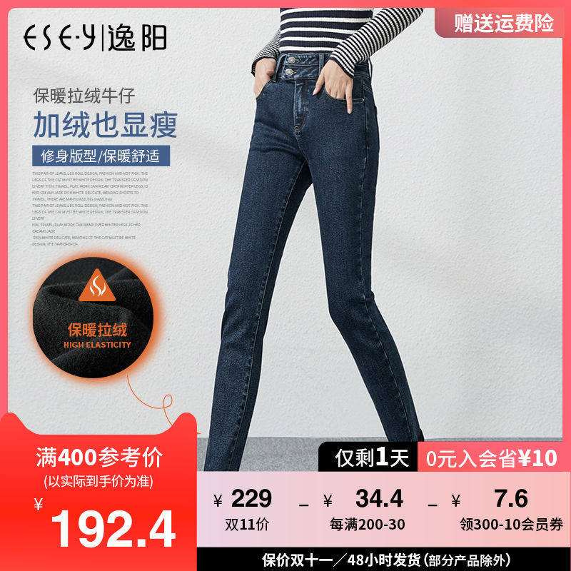 Джинсы, приталенные штаны, зимний эластичный карандаш, высокая талия, коллекция 2021, в обтяжку