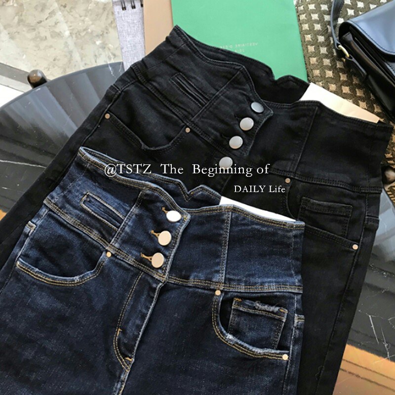 Приталенные черные штаны, джинсы, по фигуре, высокая талия