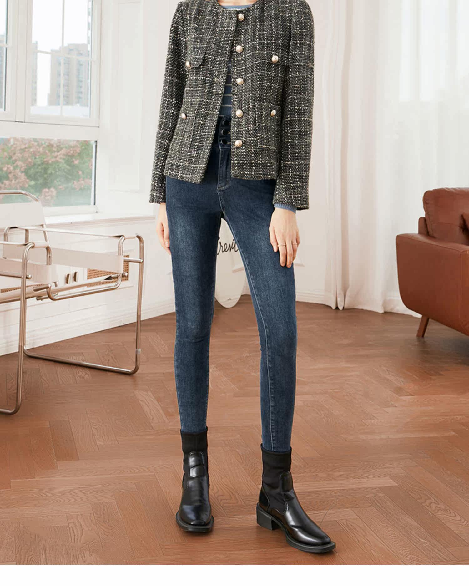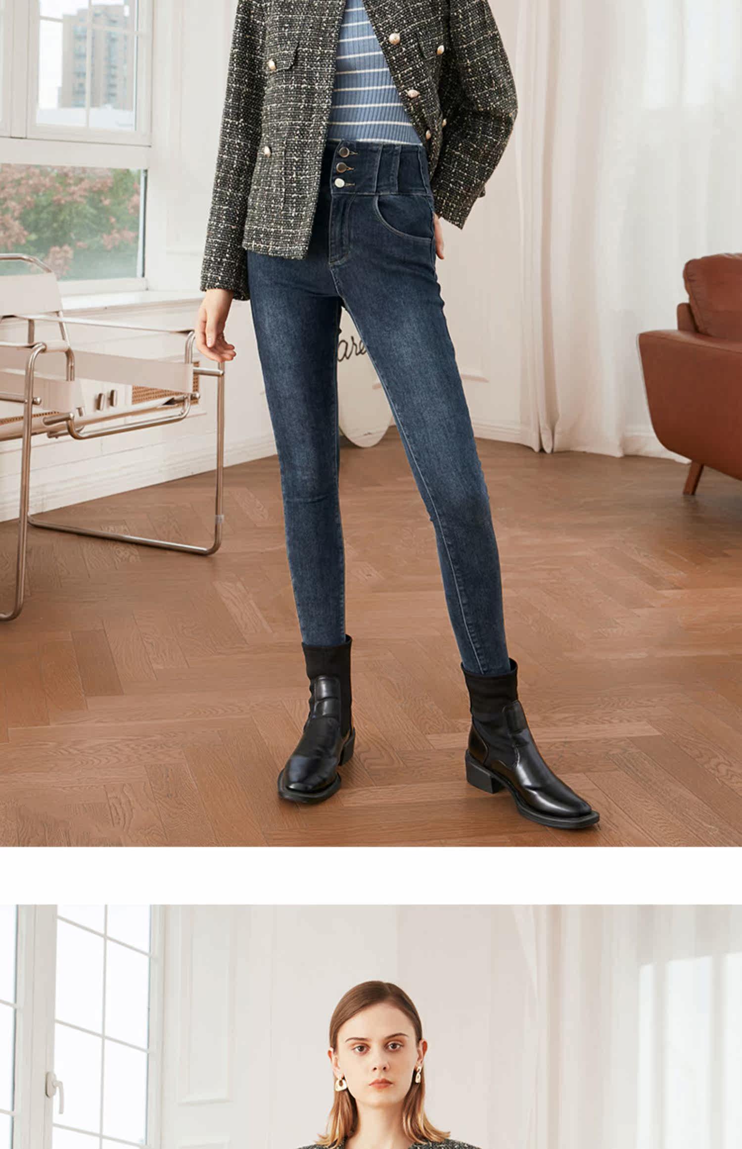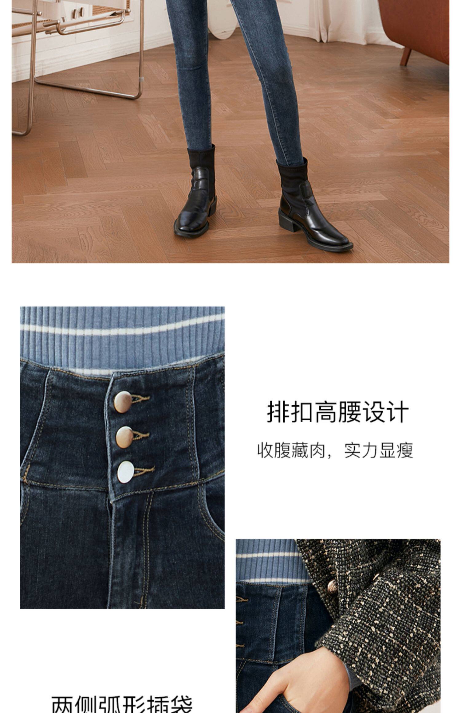 Приталенные бархатные весенние джинсы, приталенный эластичный карандаш, штаны, высокая талия, в обтяжку