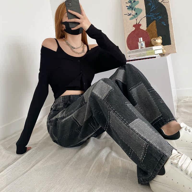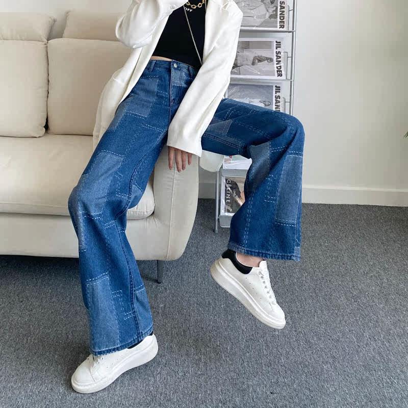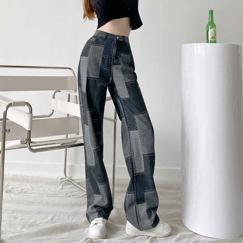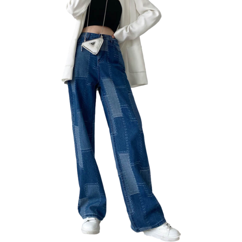 Длинные джинсы, штаны, высокая талия, свободный прямой крой