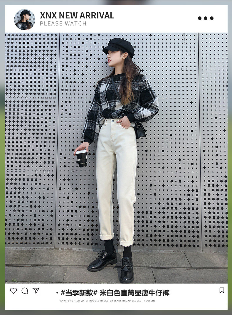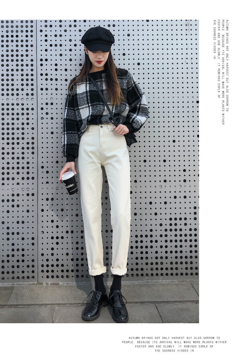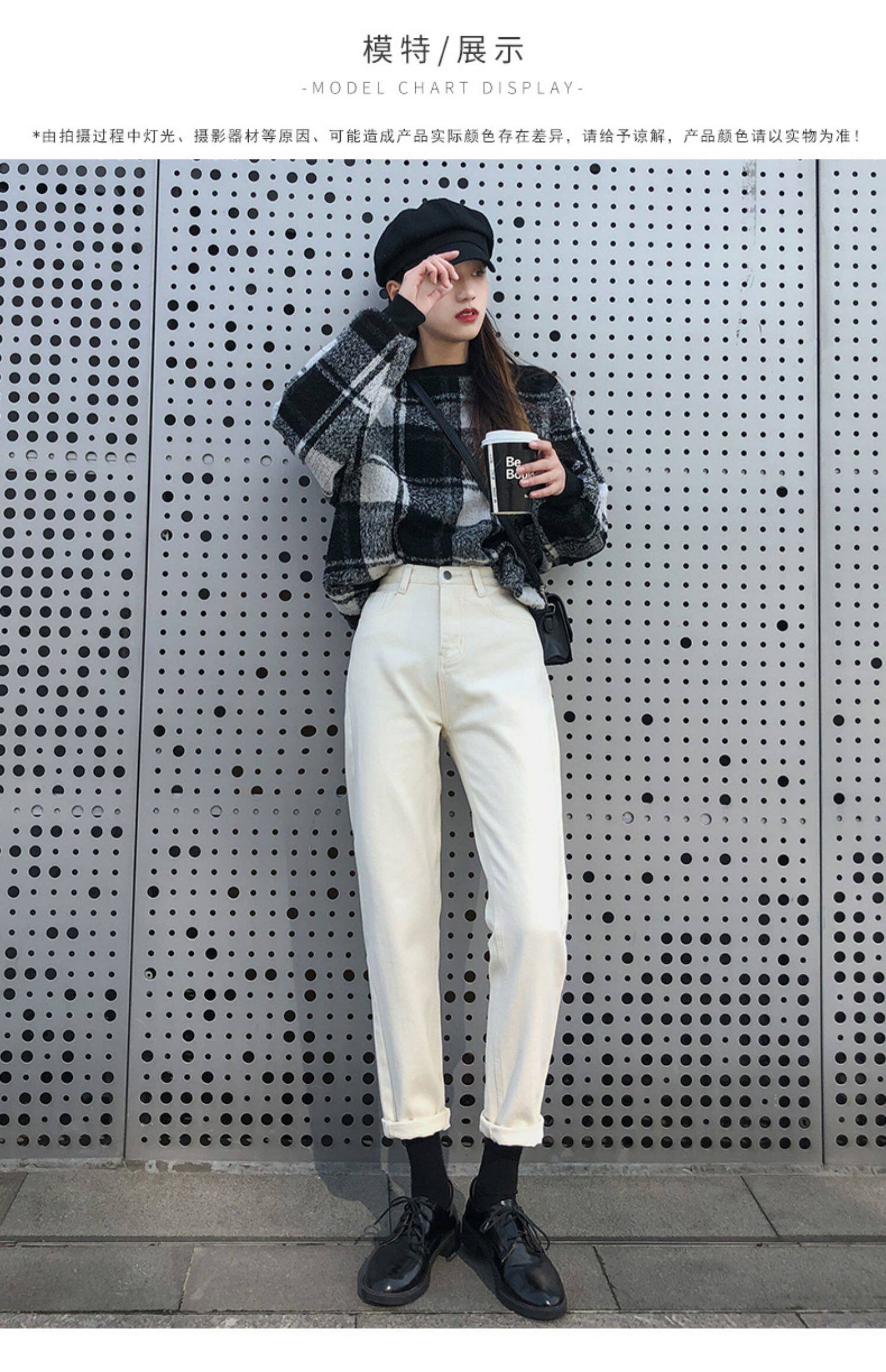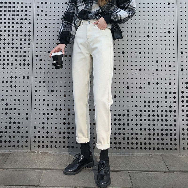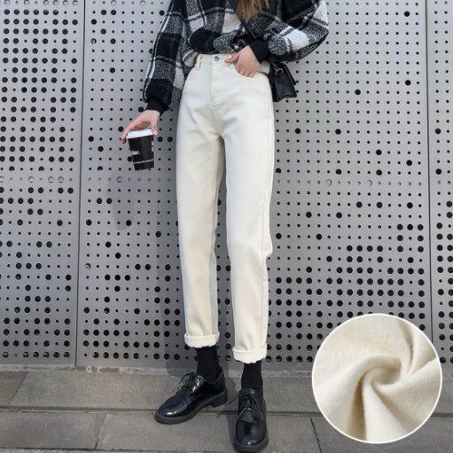 Бежевые прямые свободные джинсы, демисезонные утепленные приталенные штаны, свободный крой, высокая талия