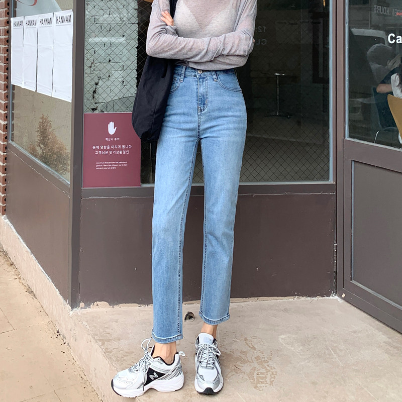 Джинсовые джинсы, штаны, цвет, высокая талия, свободный прямой крой, в корейском стиле