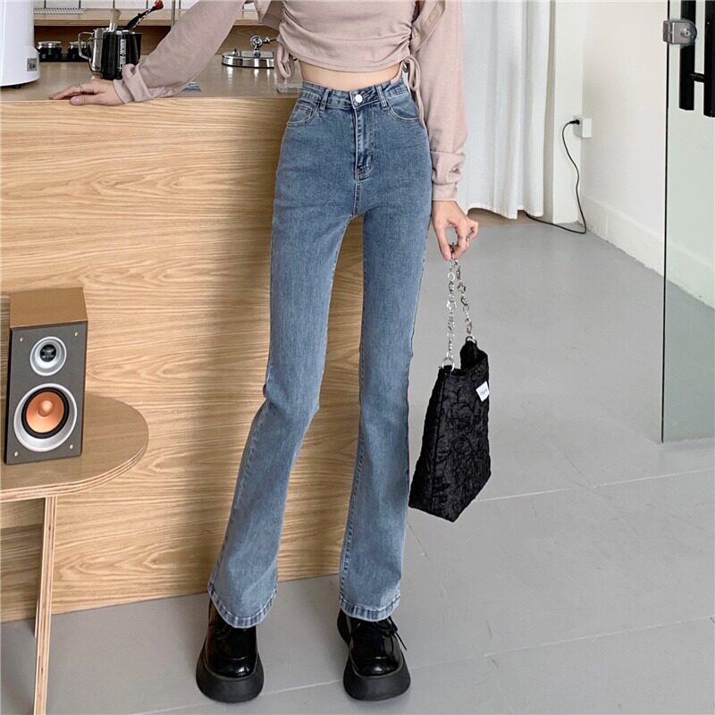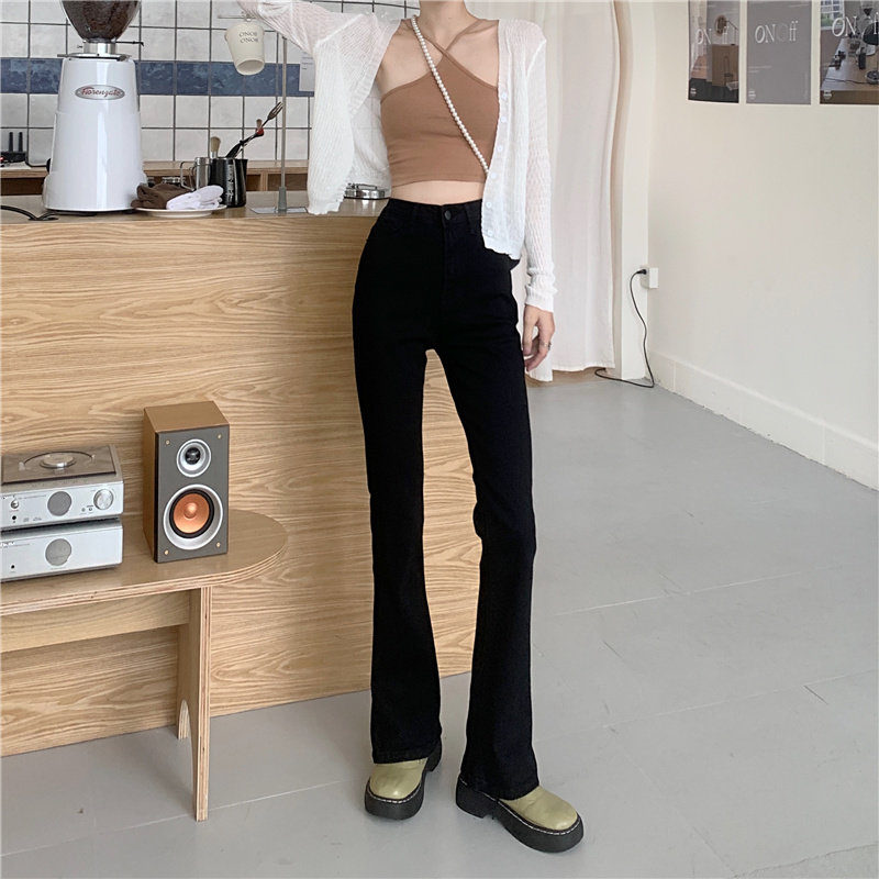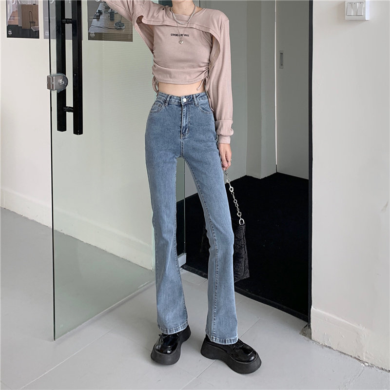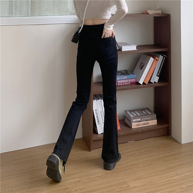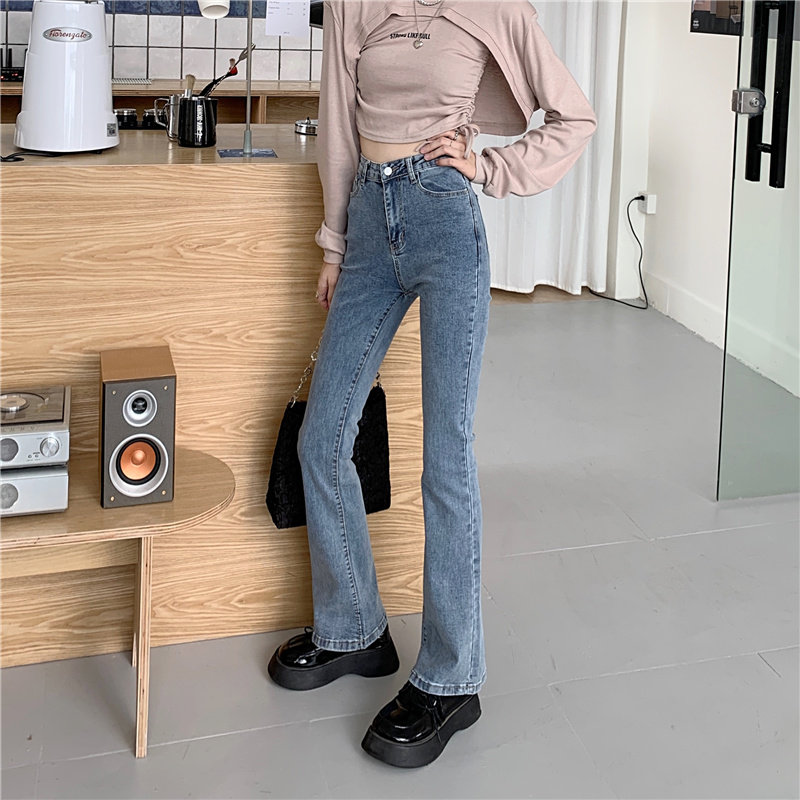 Джинсы, штаны, сексуальные приталенные эластичные штаны-клёш, коллекция 2023, осенние, подходит для подростков, высокая талия