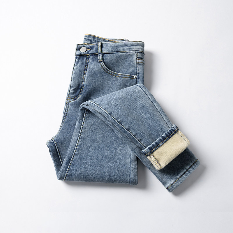 Флисовые демисезонные джинсы с начесом, штаны, приталенные зимние утепленные удерживающие тепло леггинсы, высокая талия