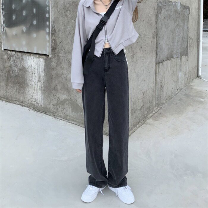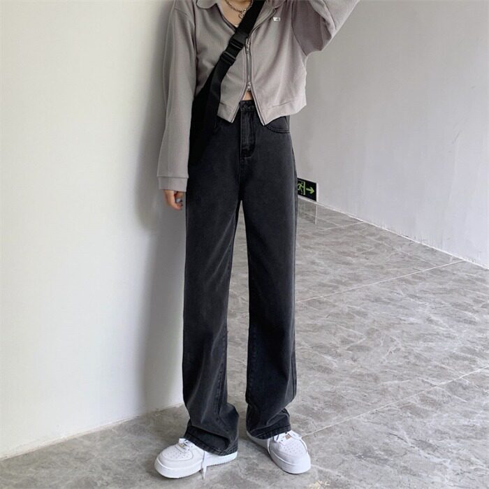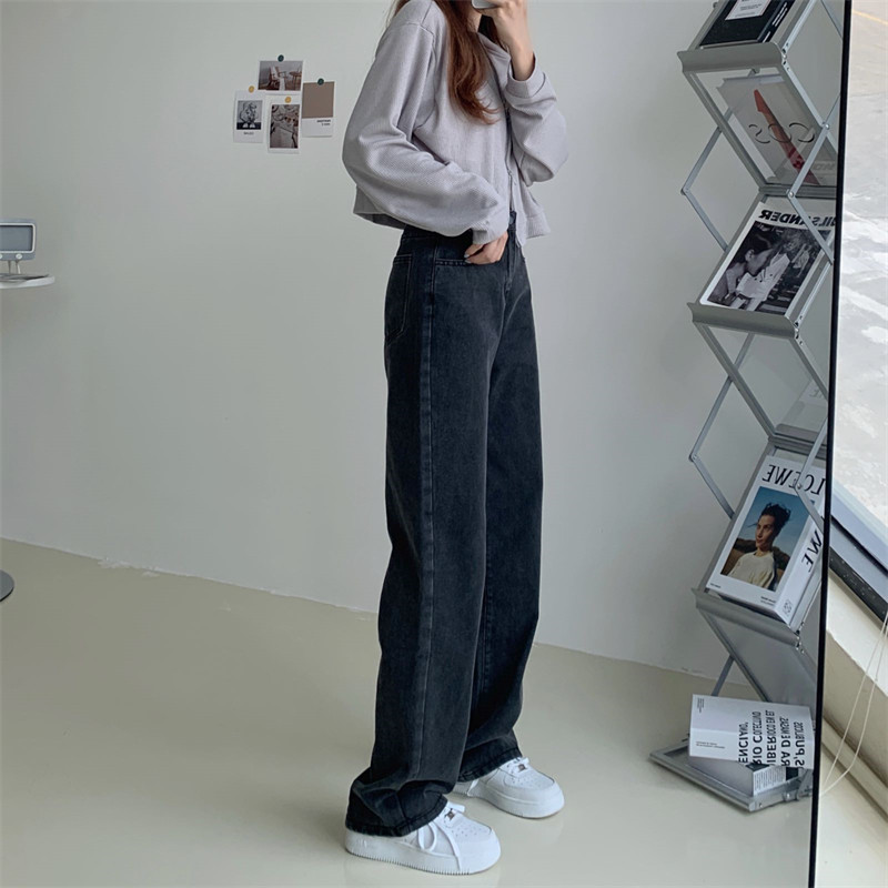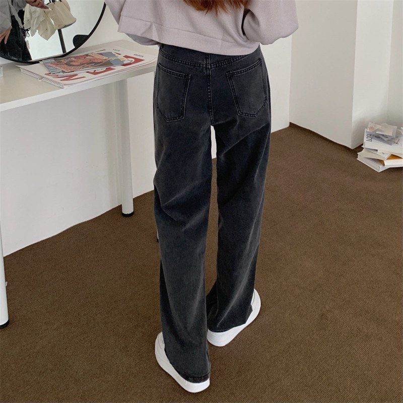 Ретро черные джинсы, штаны для отдыха, высокая талия, в корейском стиле, свободный прямой крой, по фигуре