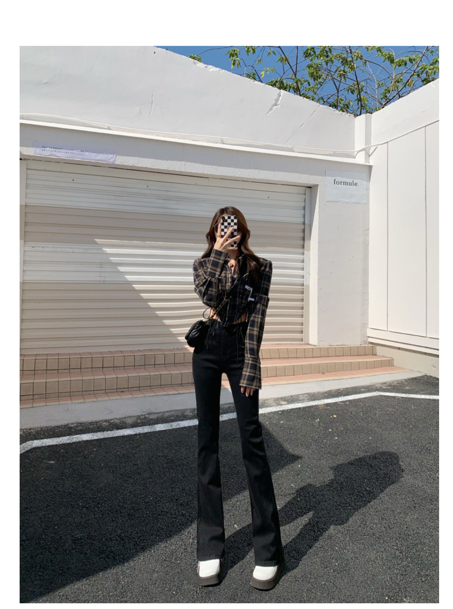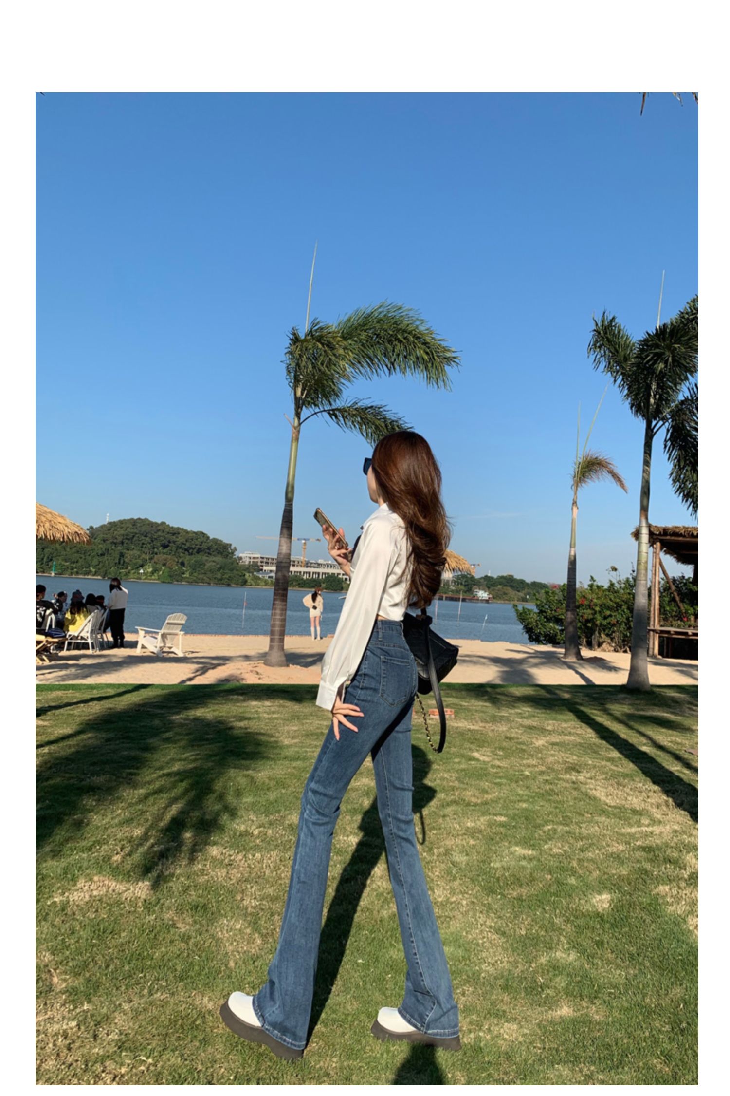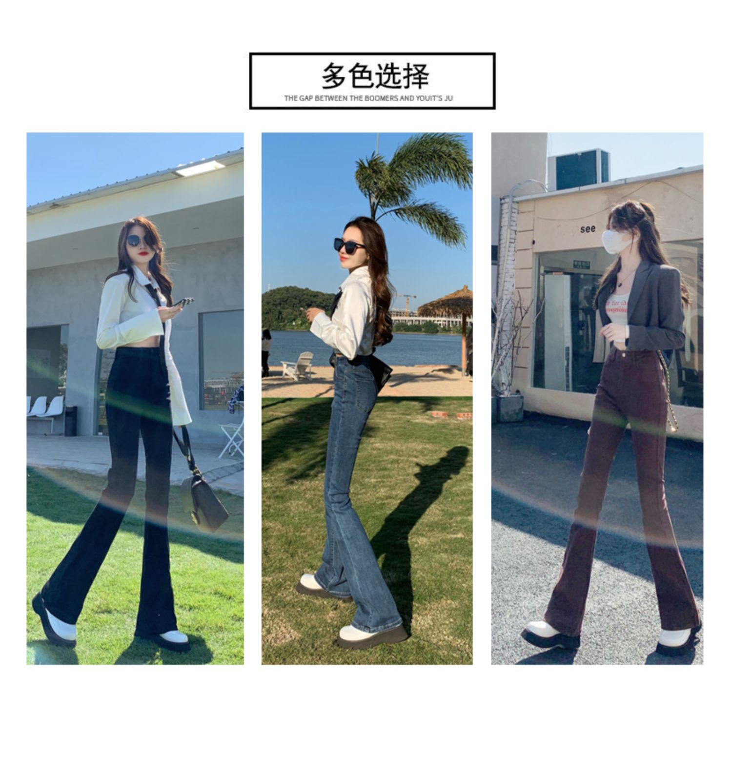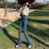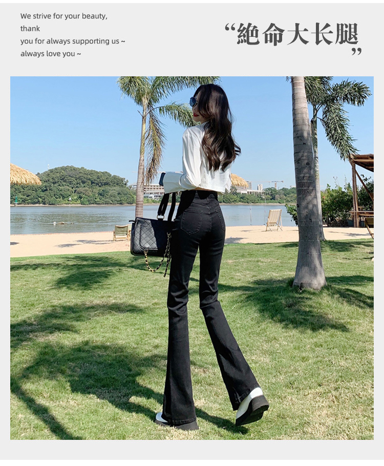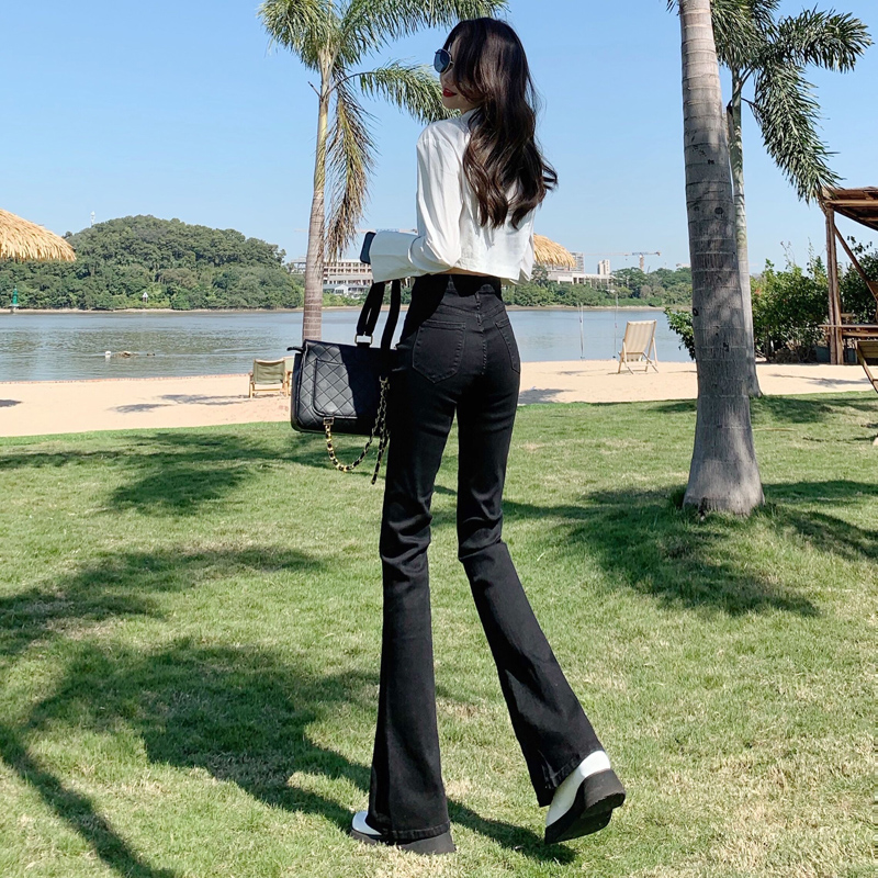 Эластичные демисезонные ретро джинсы, штаны, черные универсальные штаны-клёш, высокая талия, свободный крой, по фигуре