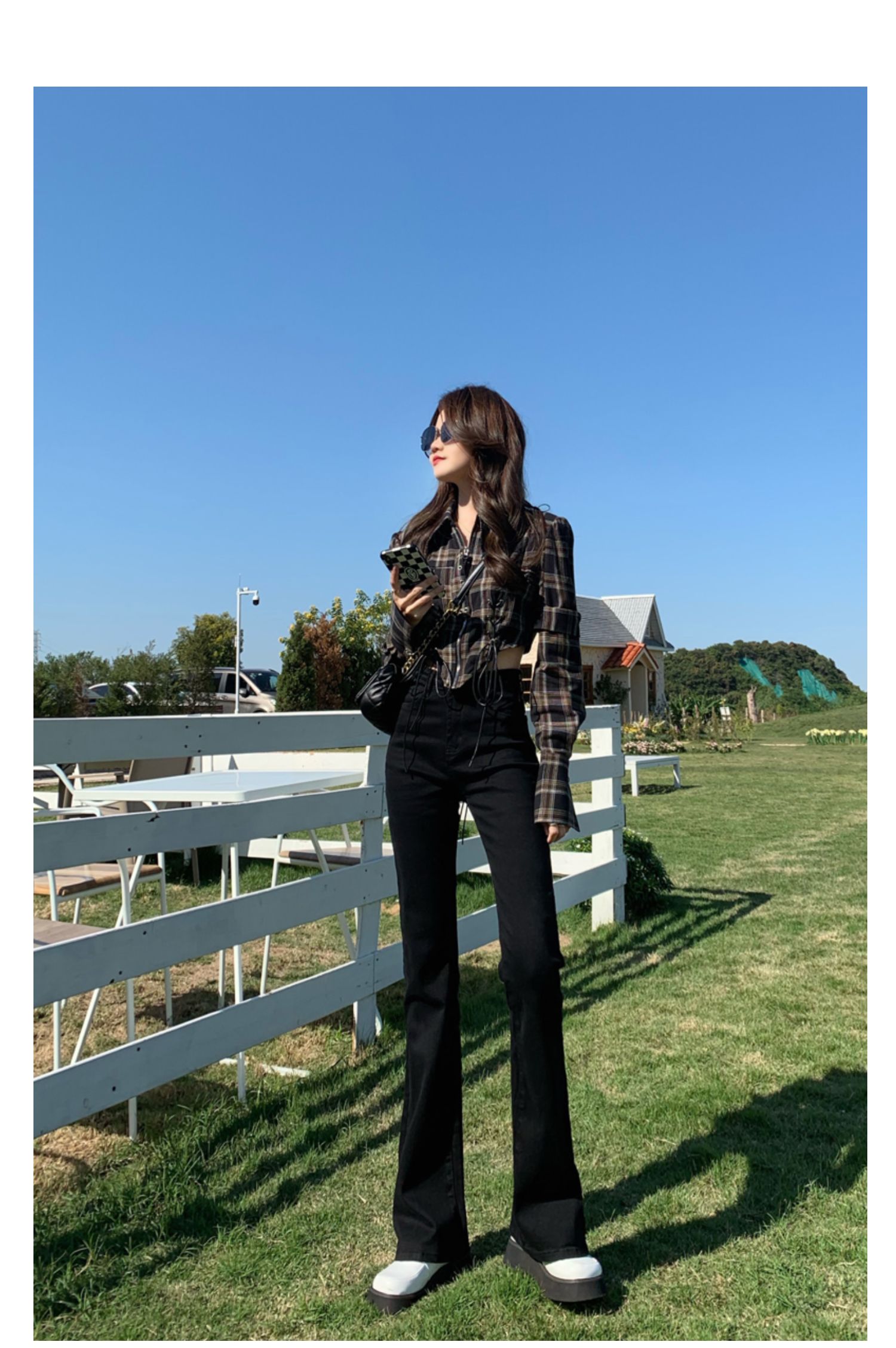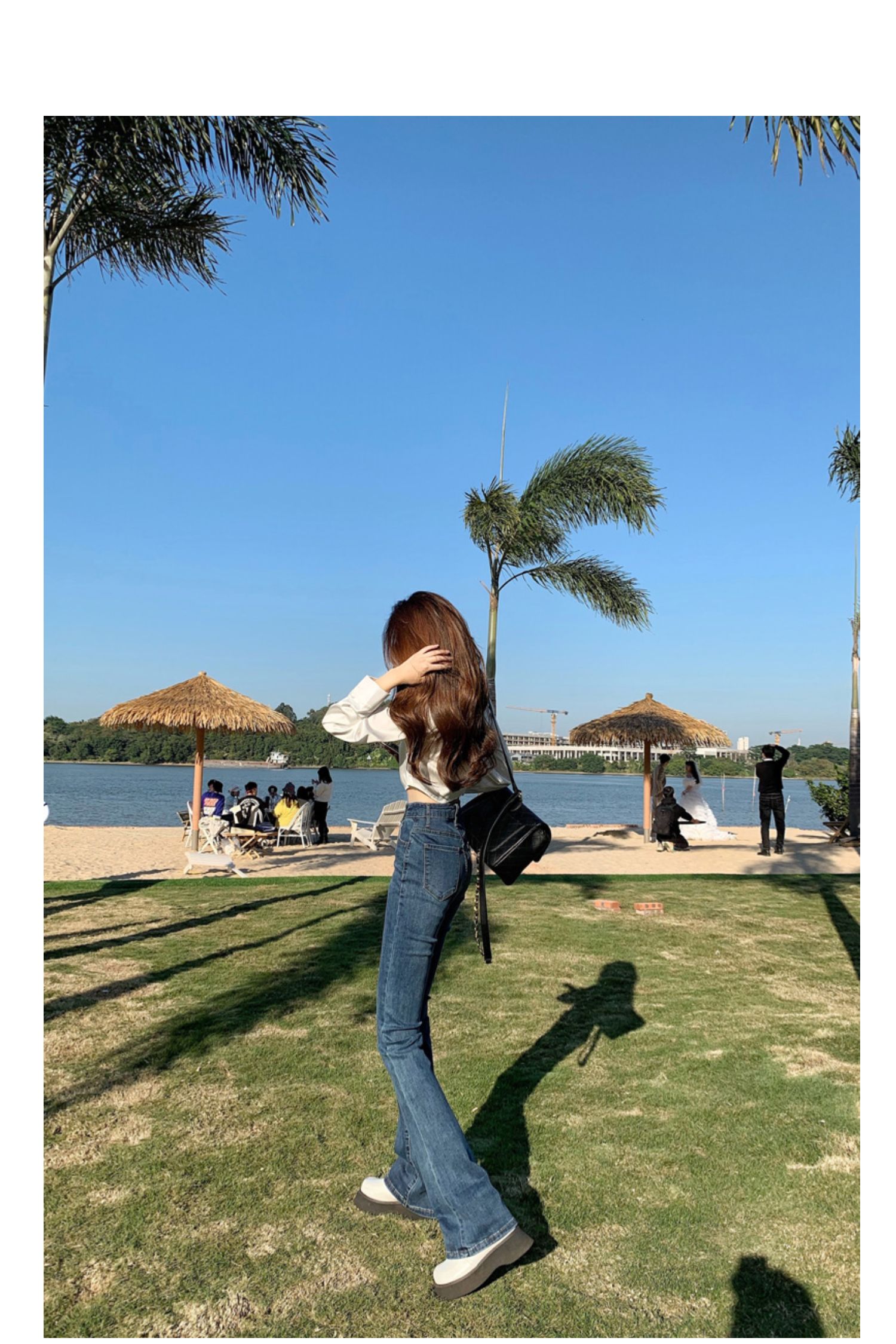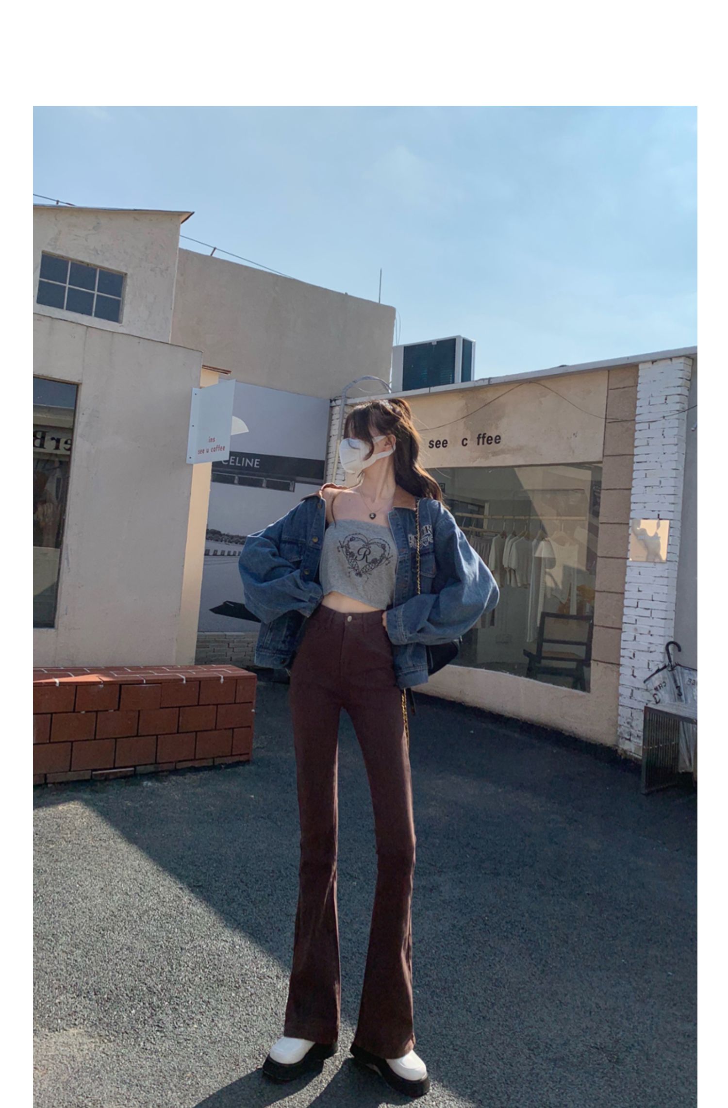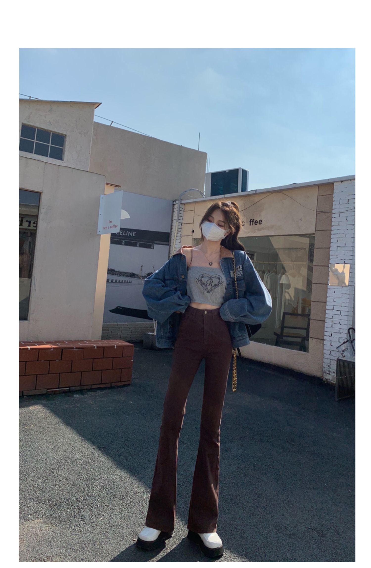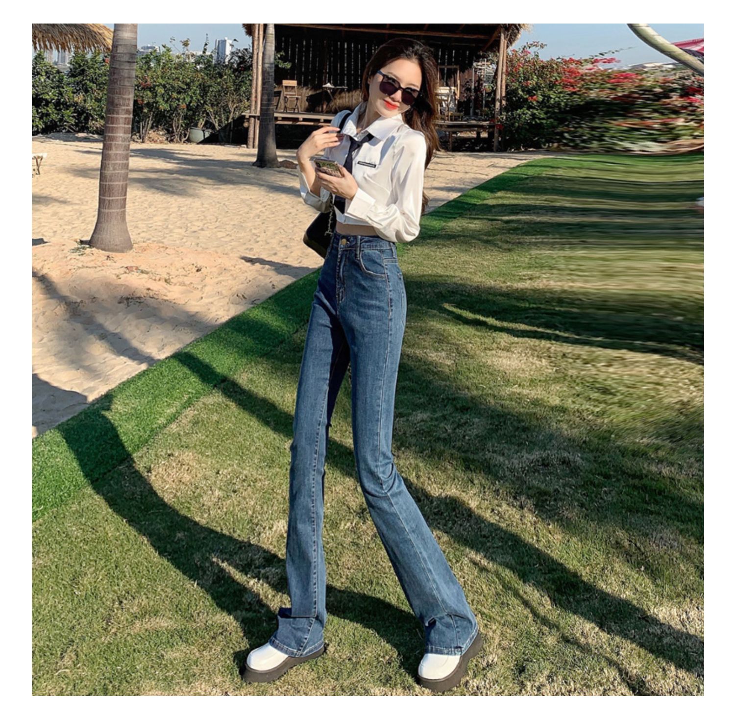 Эластичные демисезонные ретро джинсы, штаны, черные универсальные штаны-клёш, высокая талия, свободный крой, по фигуре