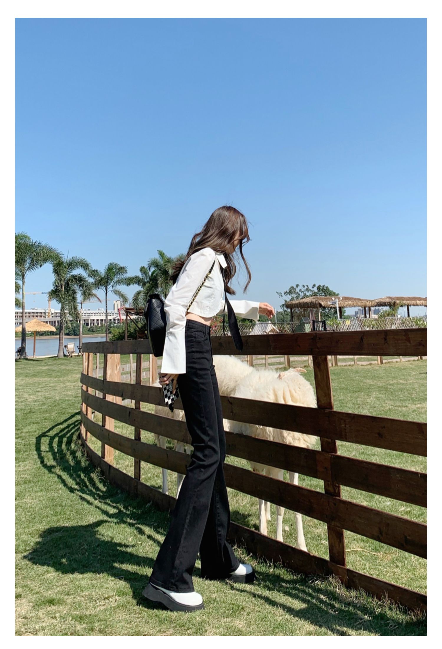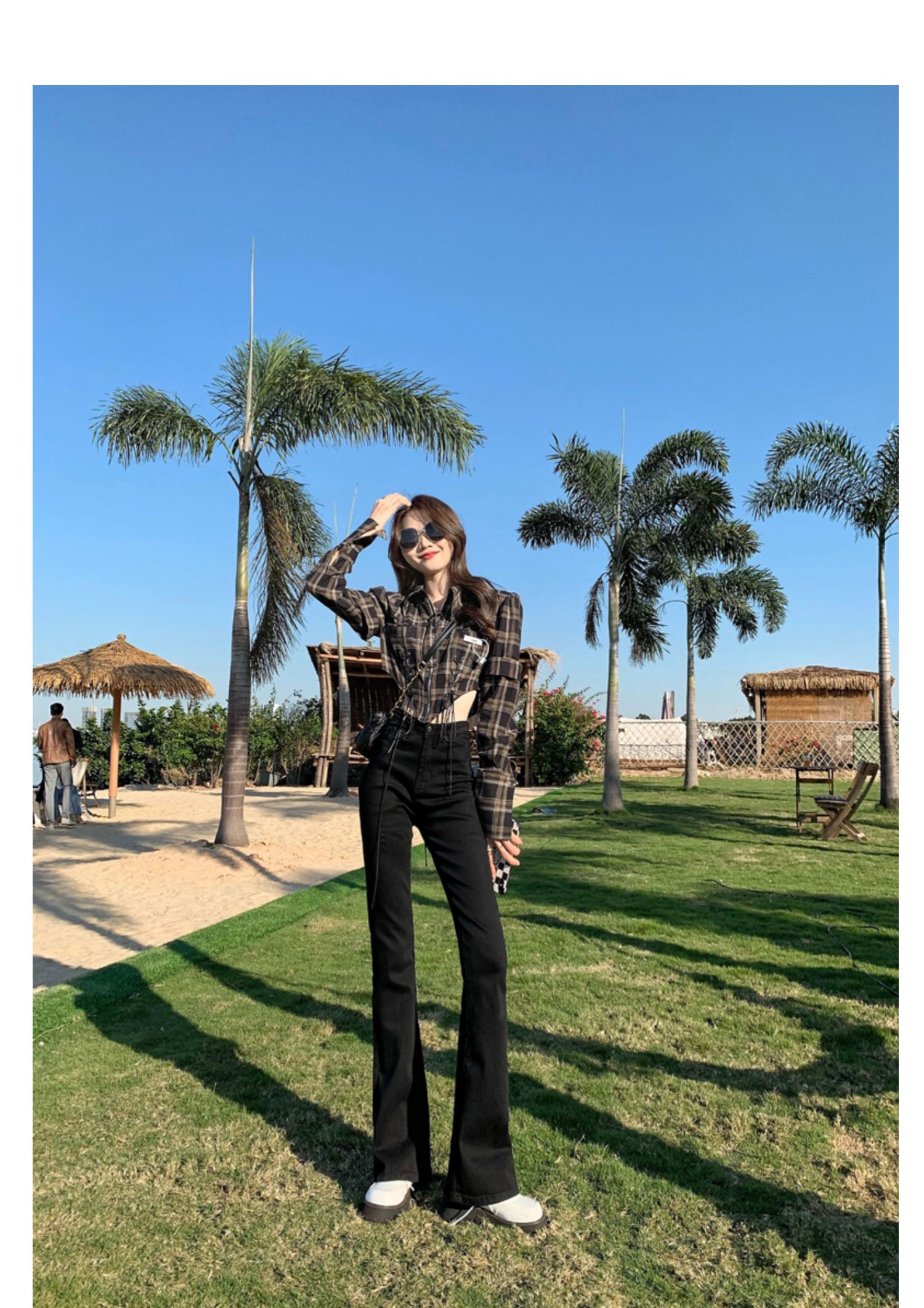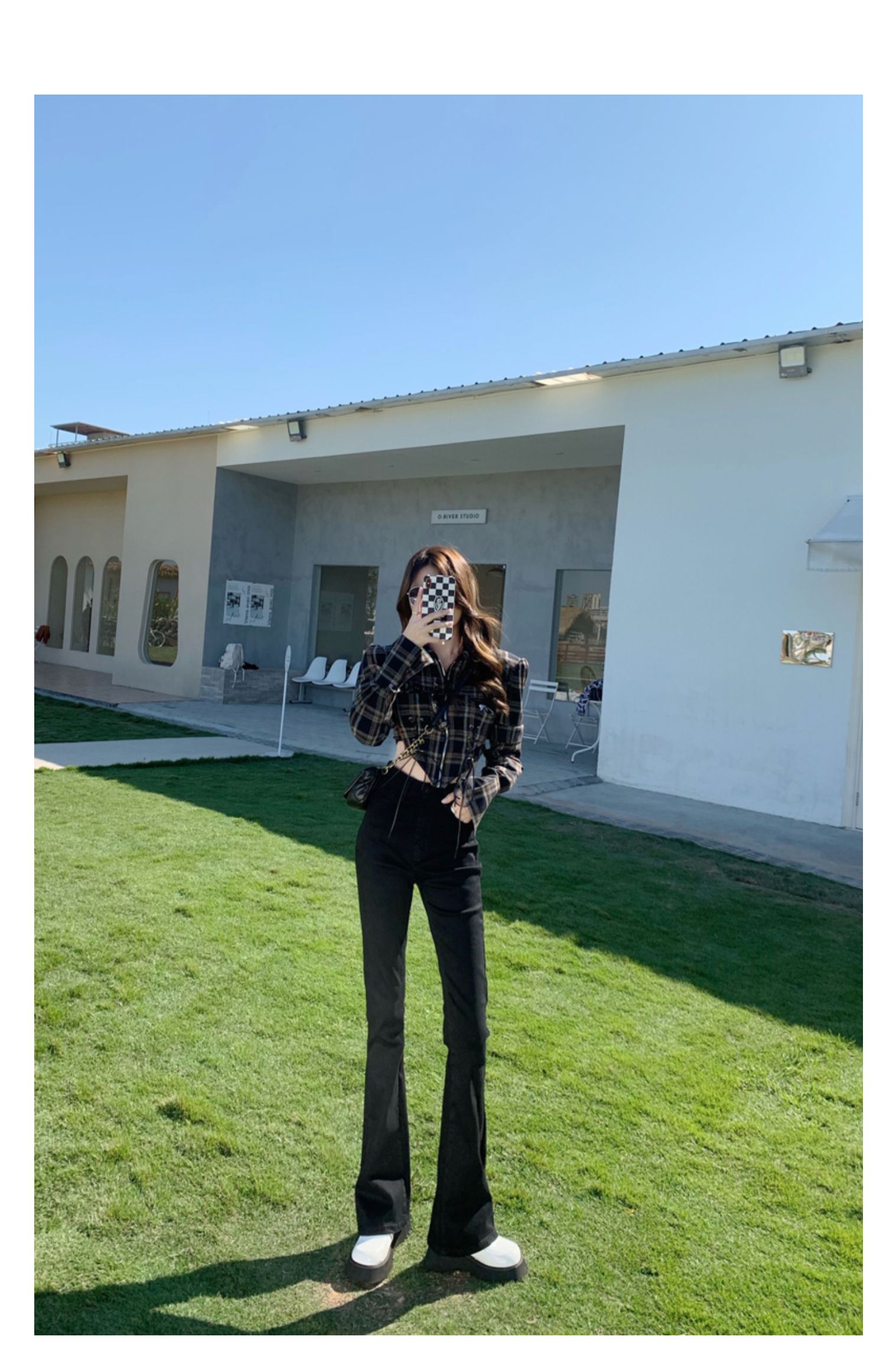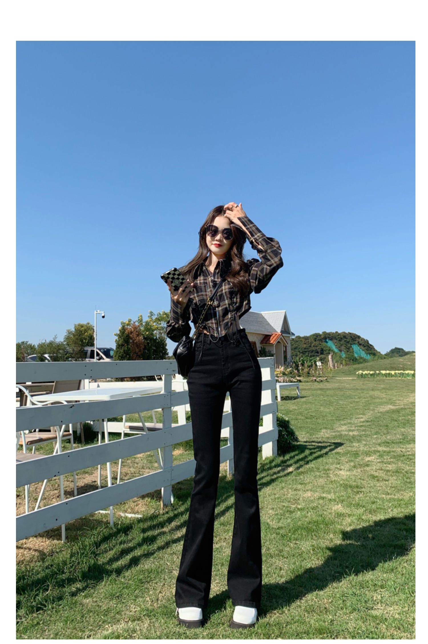 Эластичные демисезонные ретро джинсы, штаны, черные универсальные штаны-клёш, высокая талия, свободный крой, по фигуре