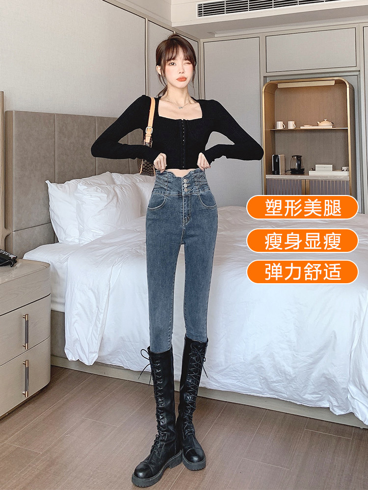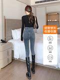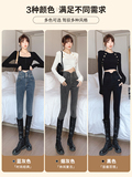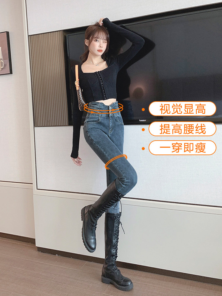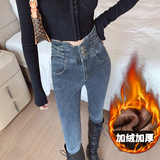 Джинсы, утепленные штаны, синие ботинки, карандаш, высокая талия, подходит для подростков, в обтяжку, облегающий крой