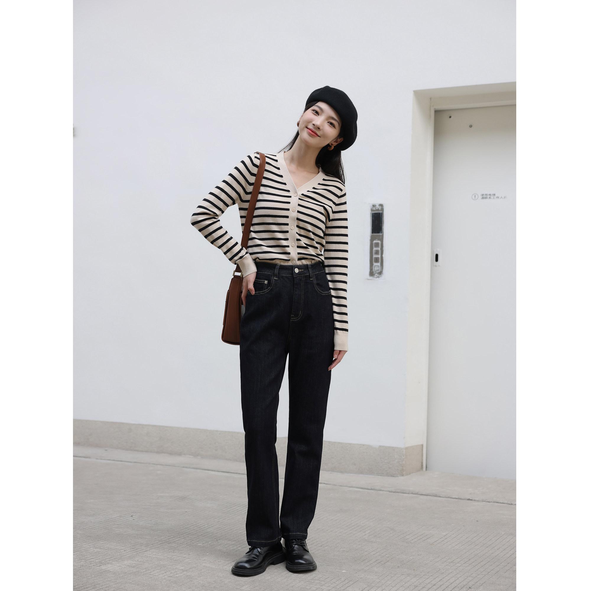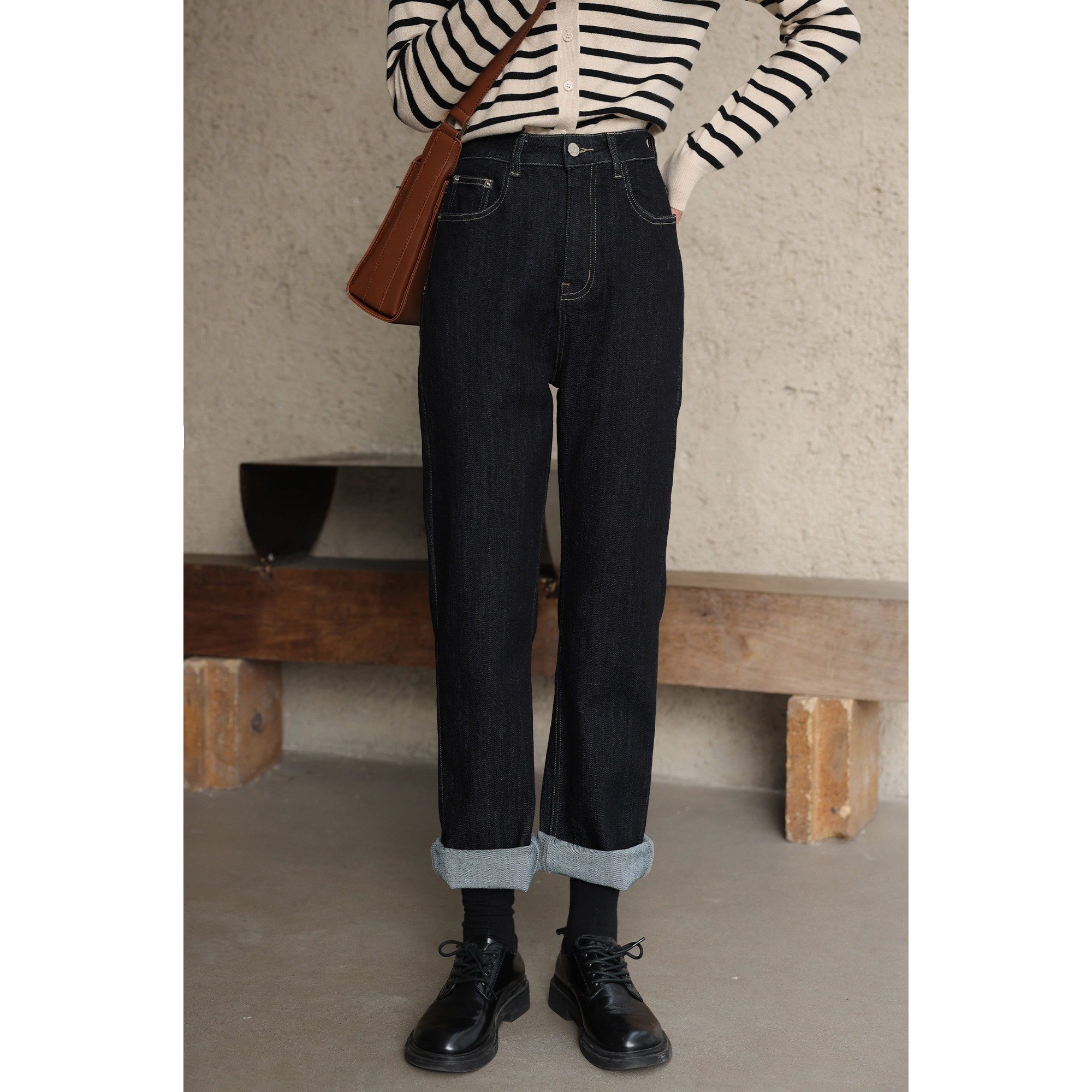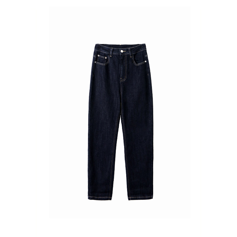 Темно-синие джинсы, осенние приталенные штаны, свободный прямой крой, высокая талия, 2021 года