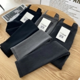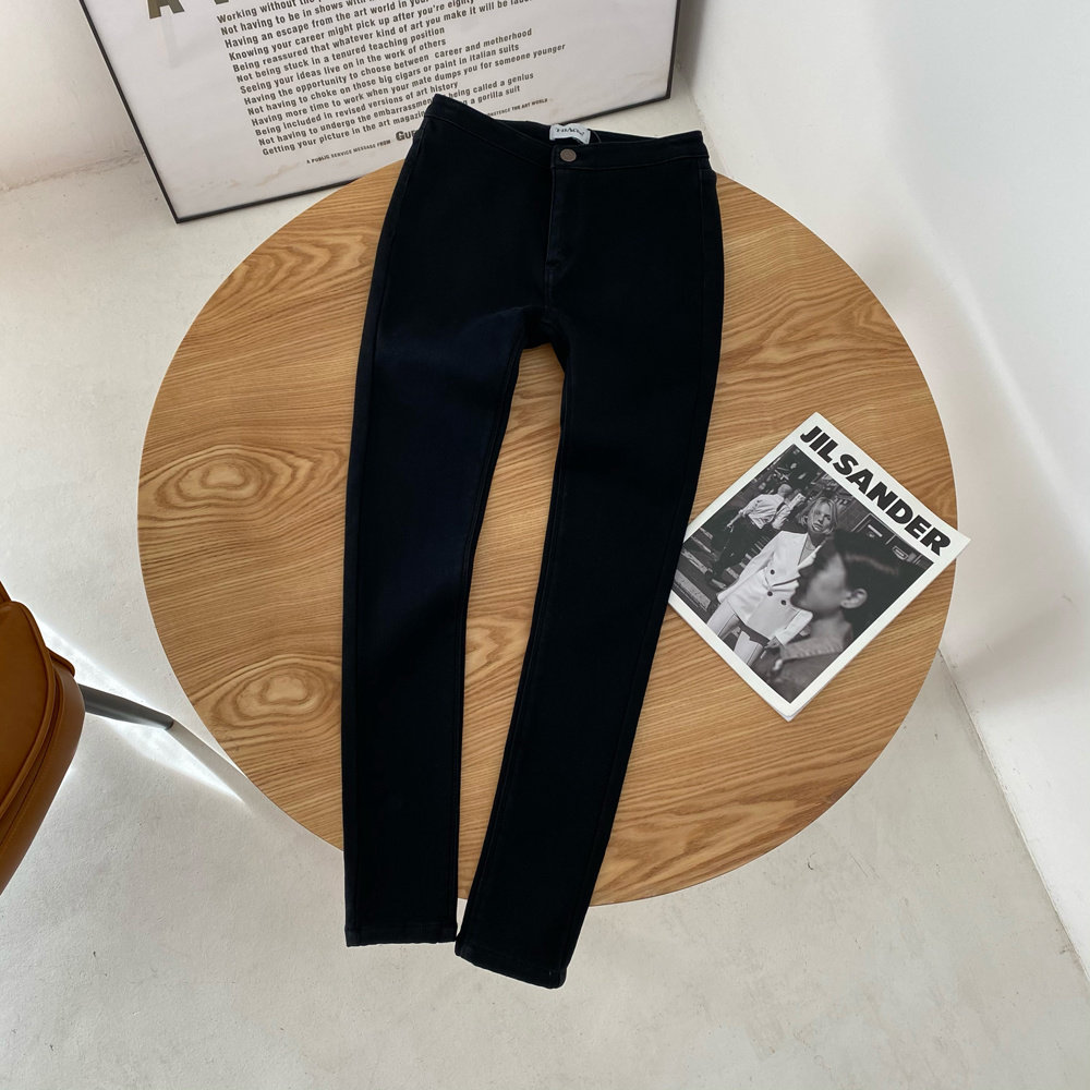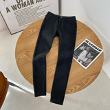 Эластичный пуховик, флисовые удерживающие тепло джинсы, штаны, в корейском стиле, высокая талия, увеличенная толщина