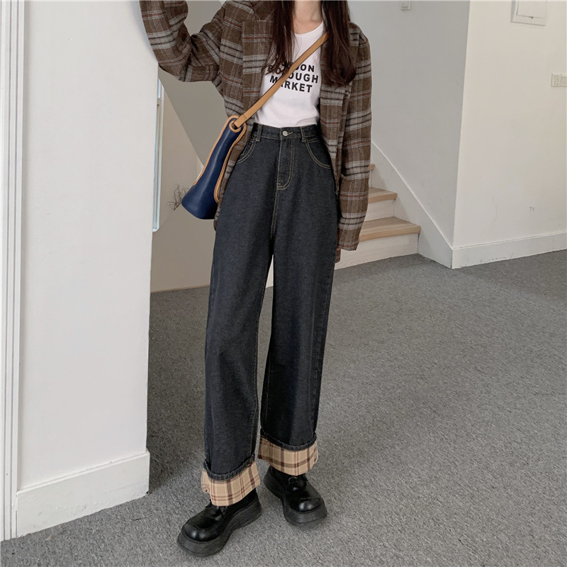 Штаны, осенние прямые свободные джинсы, высокая талия, коллекция 2022, большой размер, свободный крой