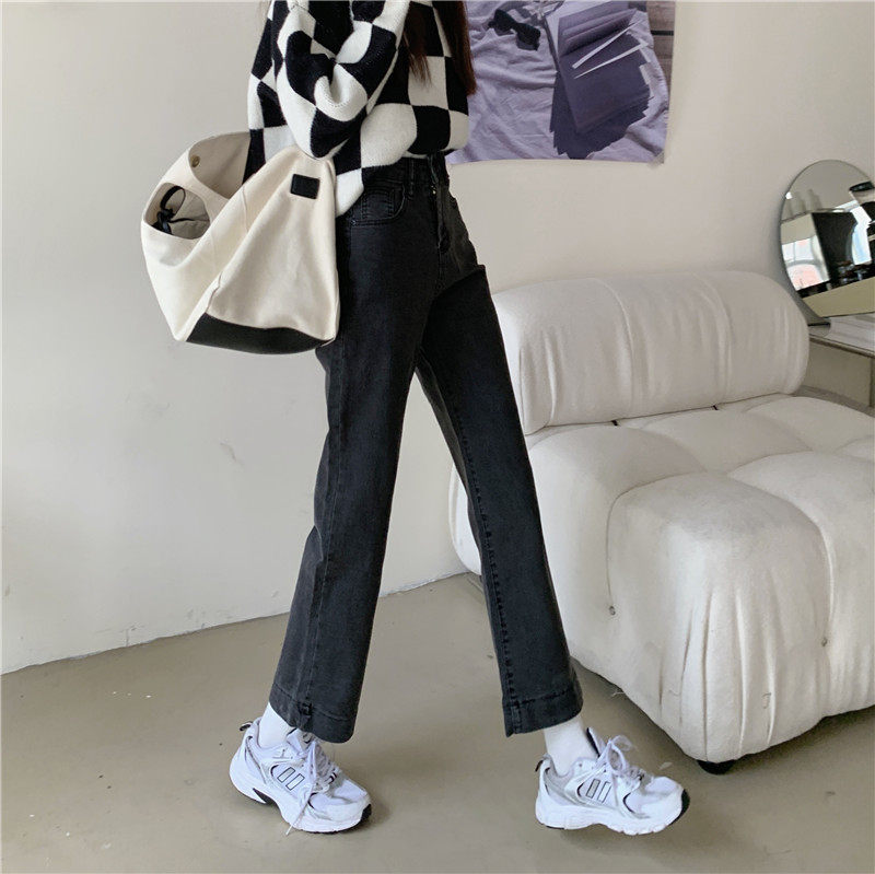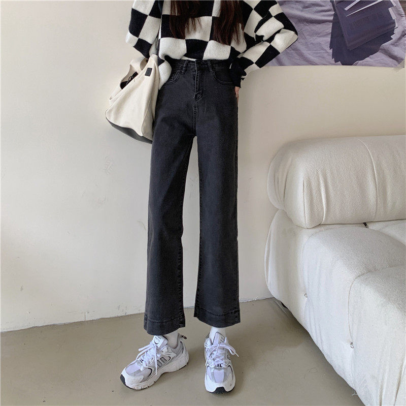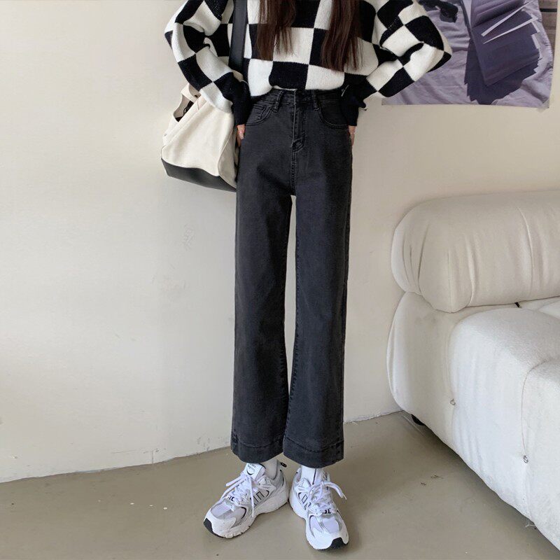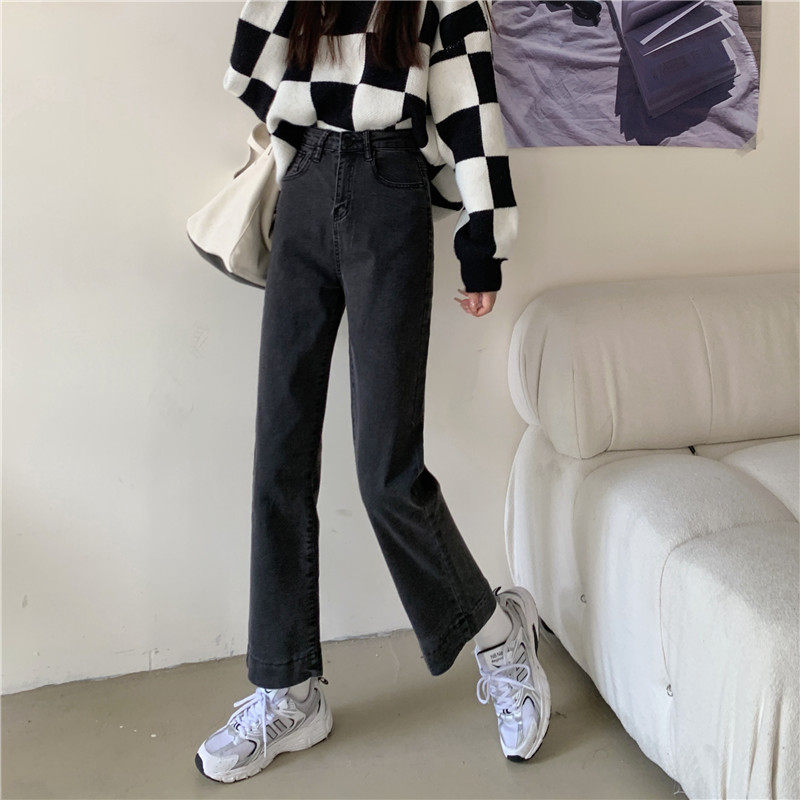 Весенние осенние приталенные прямые свободные джинсы, штаны, высокая талия, оверсайз, большой размер