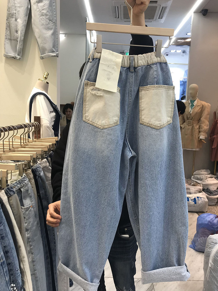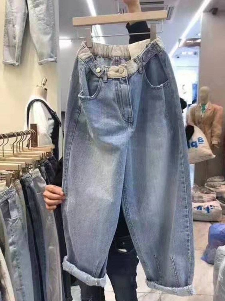 Демисезонные приталенные джинсы, штаны, коллекция 2023, эластичная талия, большой размер, свободный крой