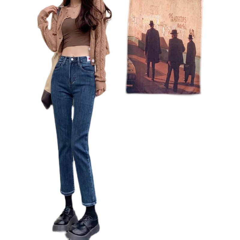 Осенние джинсы, дизайнерские штаны, 2023, высокая талия, подходит для подростков, тренд сезона, по фигуре, свободный прямой крой