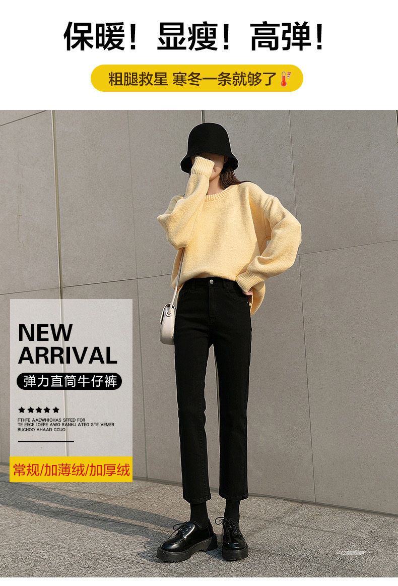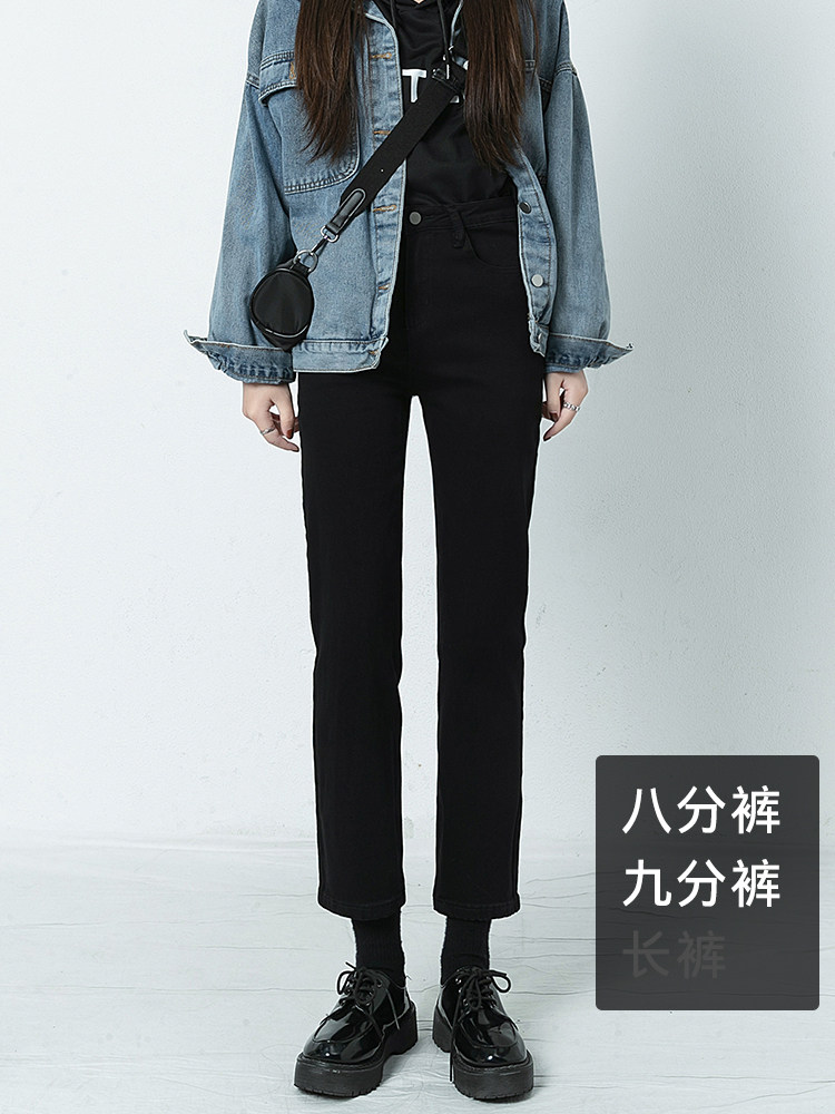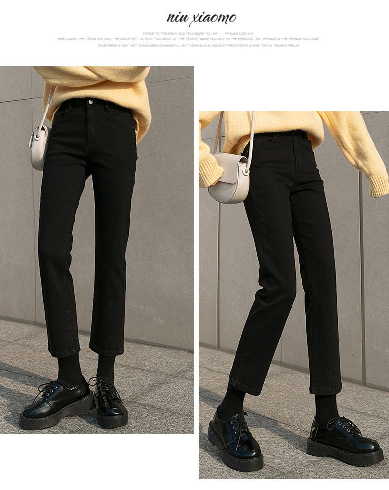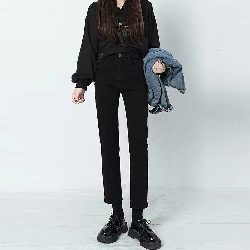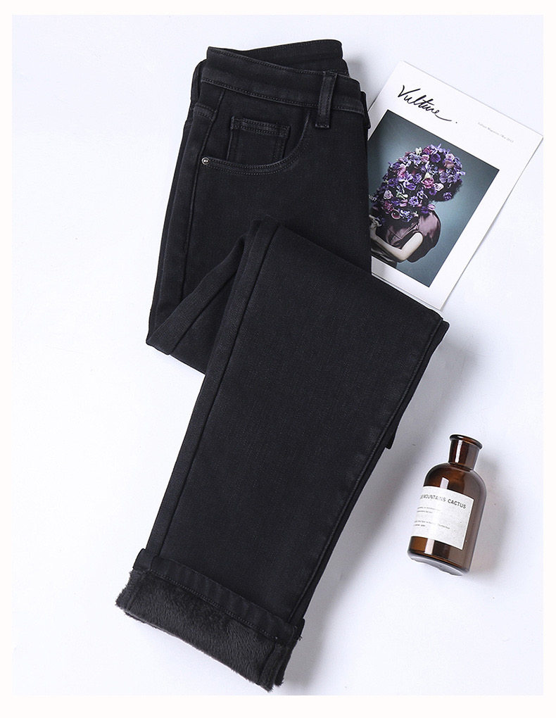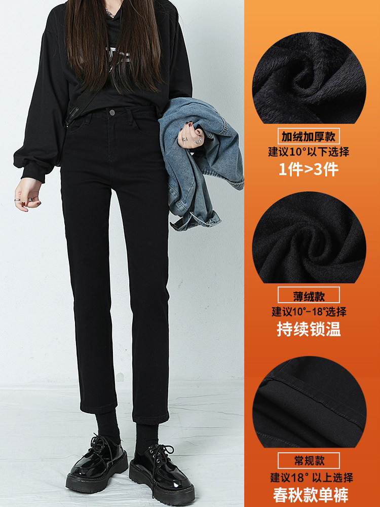 Черные штаны, приталенные утепленные джинсы, коллекция 2021, высокая талия, свободный прямой крой