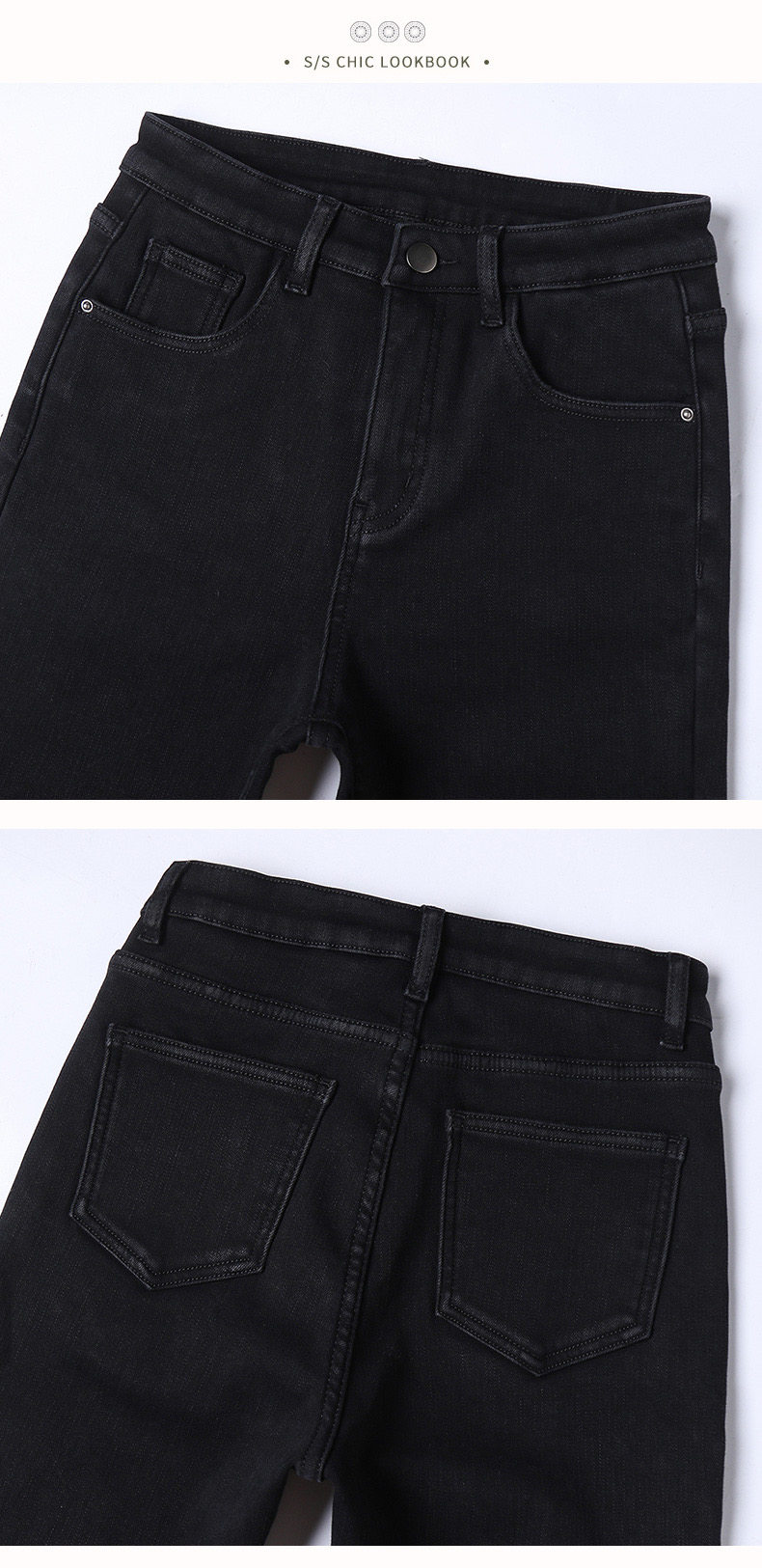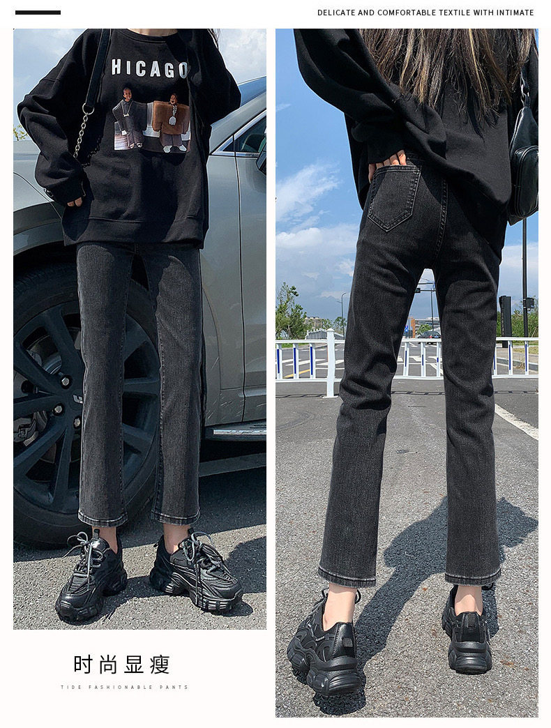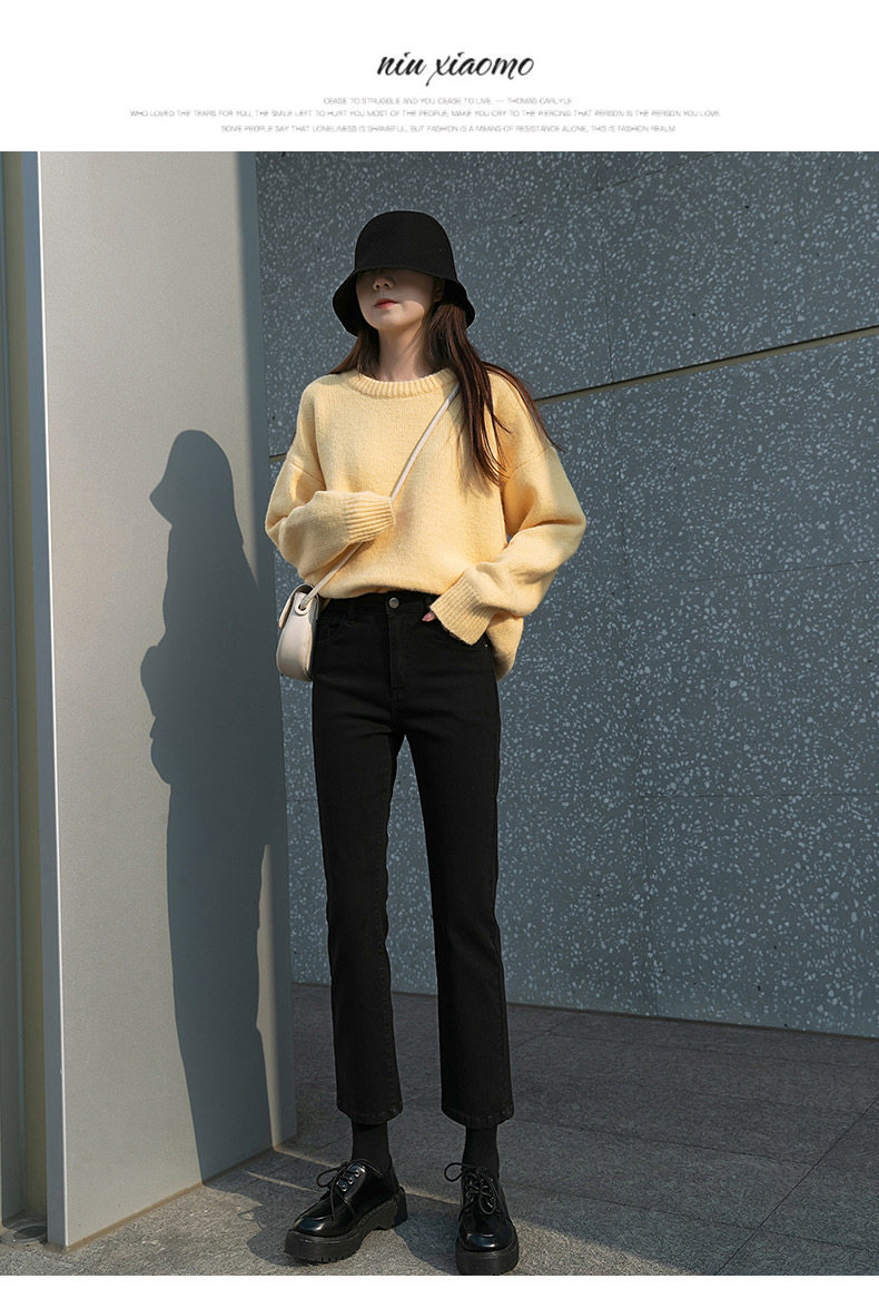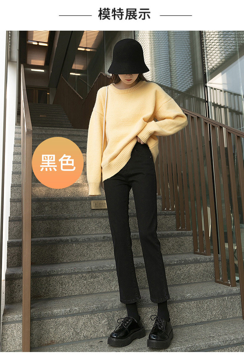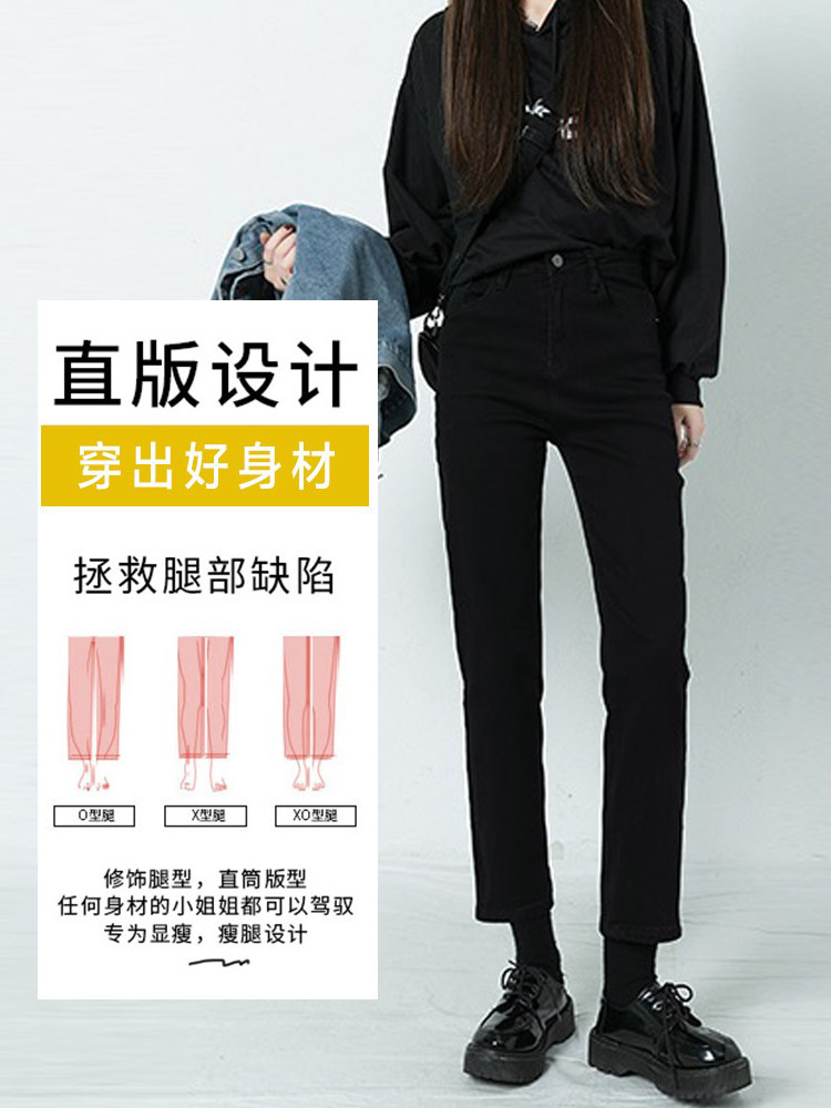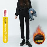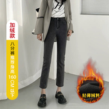 Черные штаны, приталенные утепленные джинсы, коллекция 2021, высокая талия, свободный прямой крой