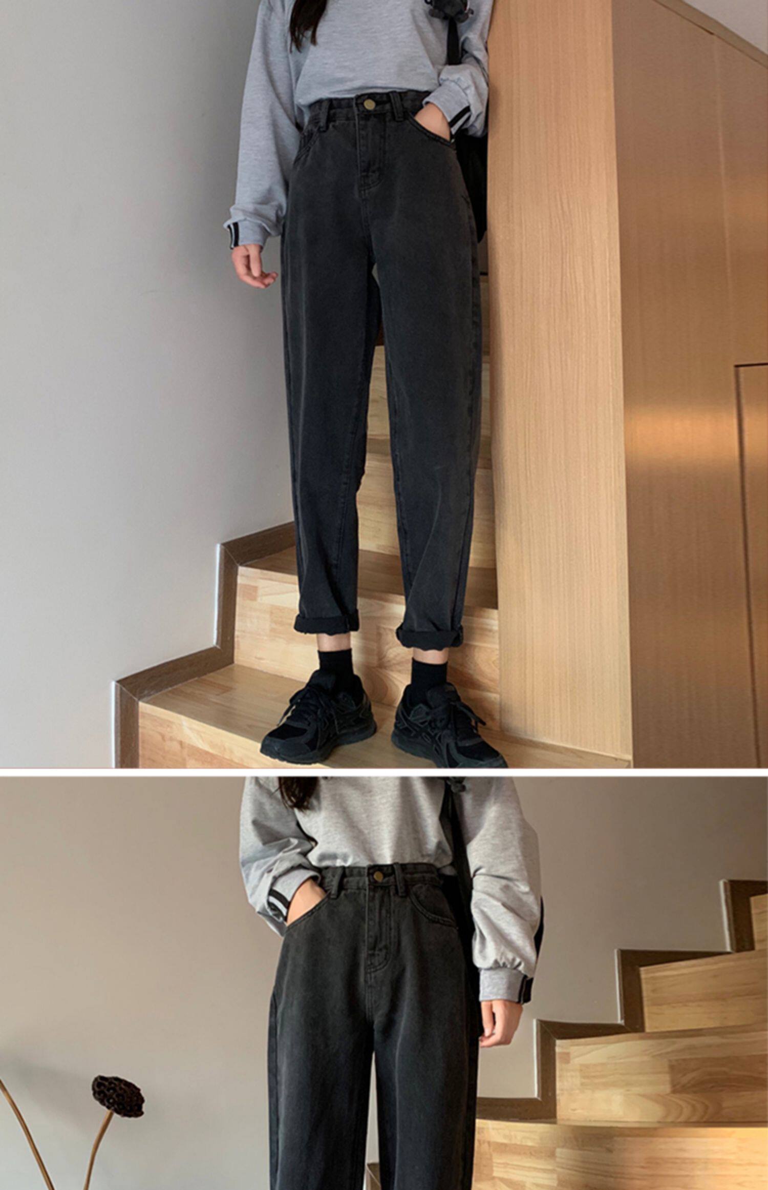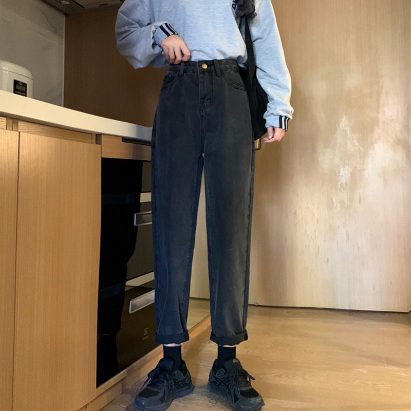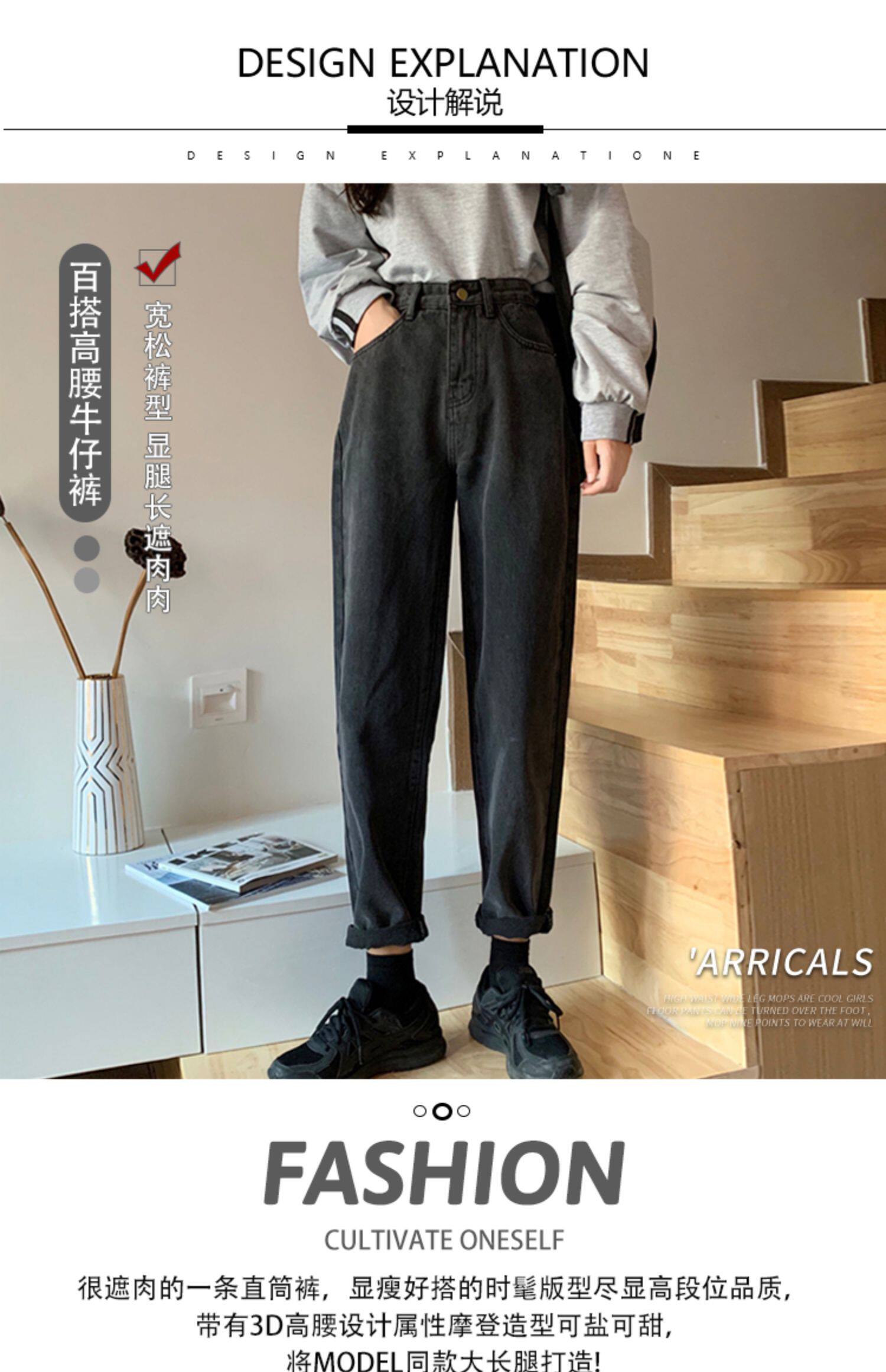 Tide, осенние джинсы, приталенные штаны, большой размер, высокая талия, свободный прямой крой