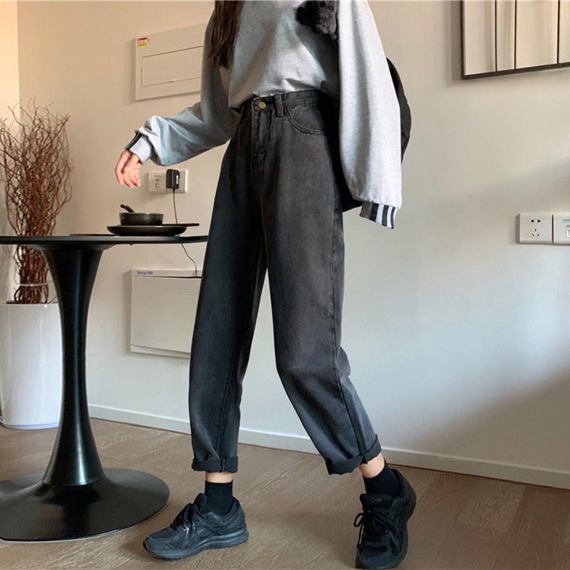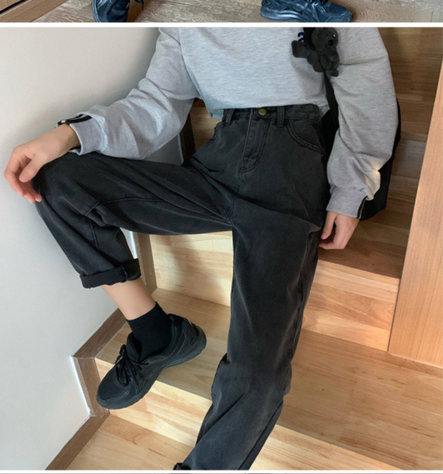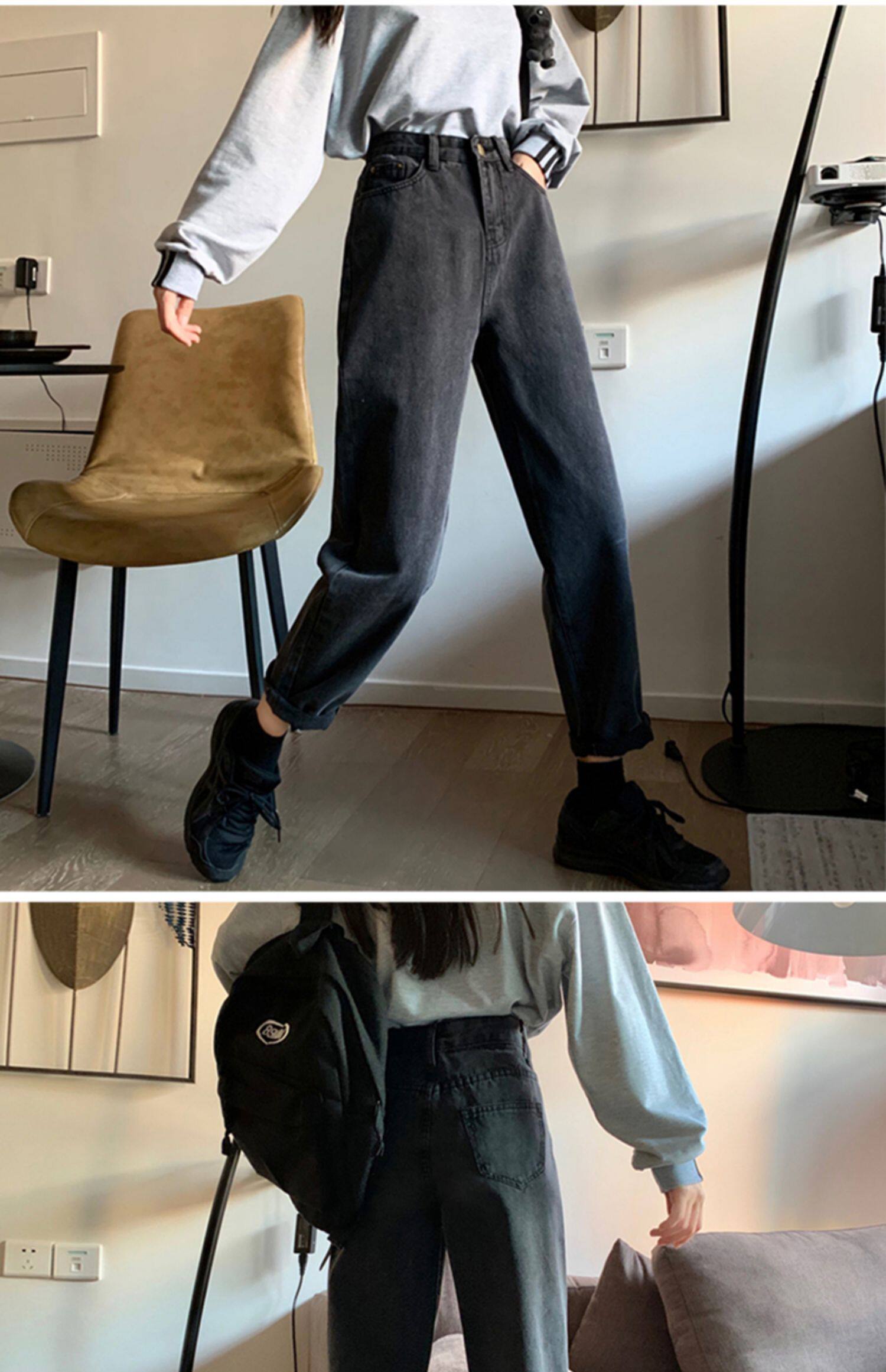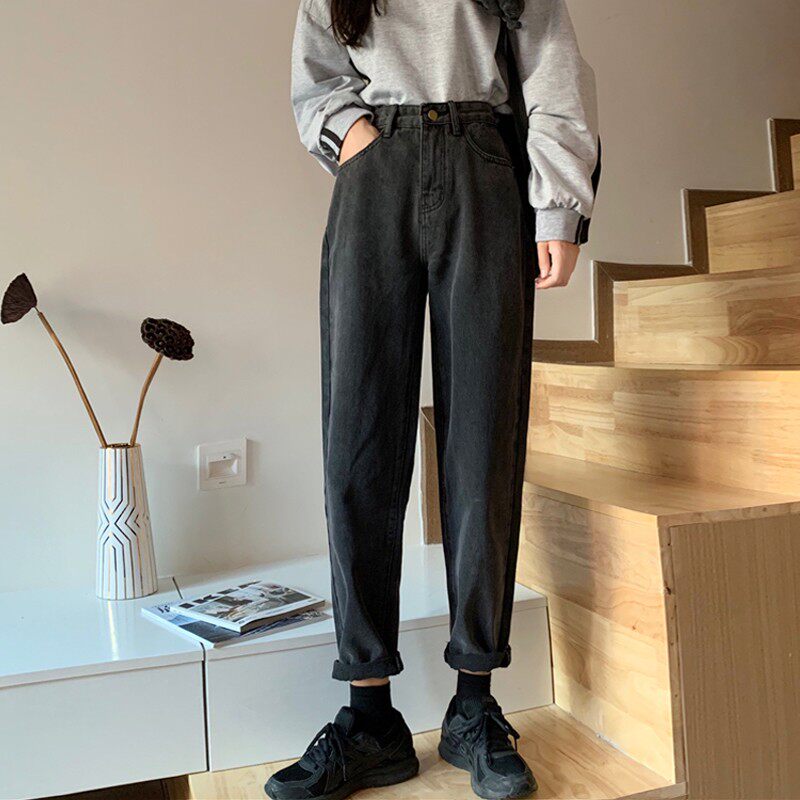 Tide, осенние джинсы, приталенные штаны, большой размер, высокая талия, свободный прямой крой