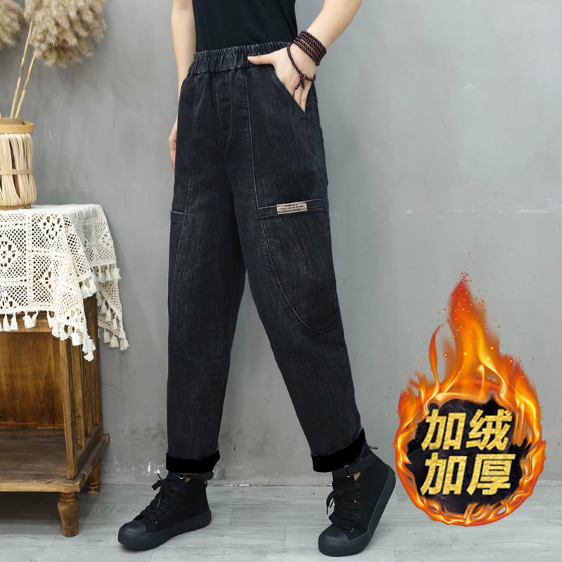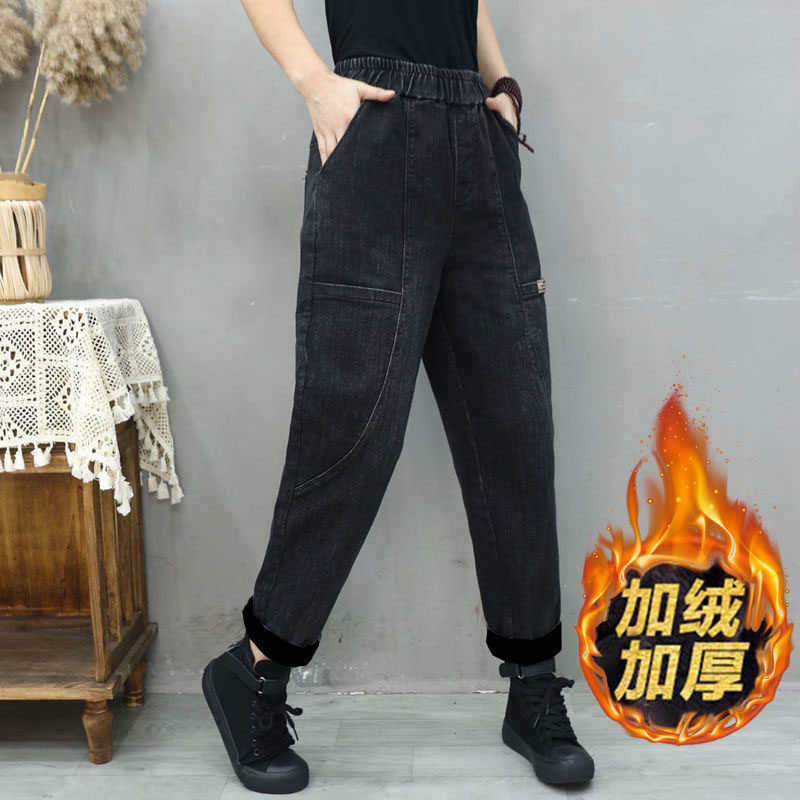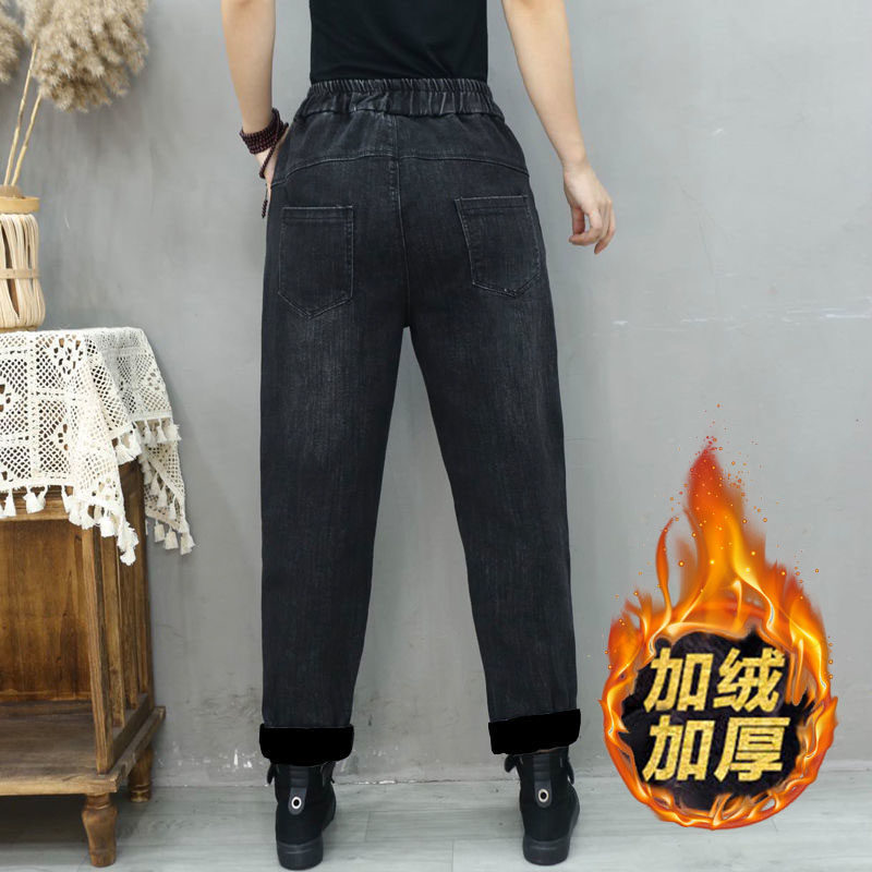Утепленные штаны, демисезонные джинсы, большой размер, свободный крой