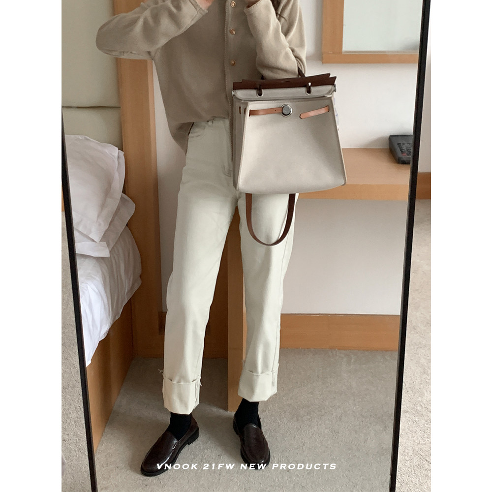 Демисезонные джинсы, штаны, леггинсы, высокая талия, 2021 года, оверсайз, свободный прямой крой
