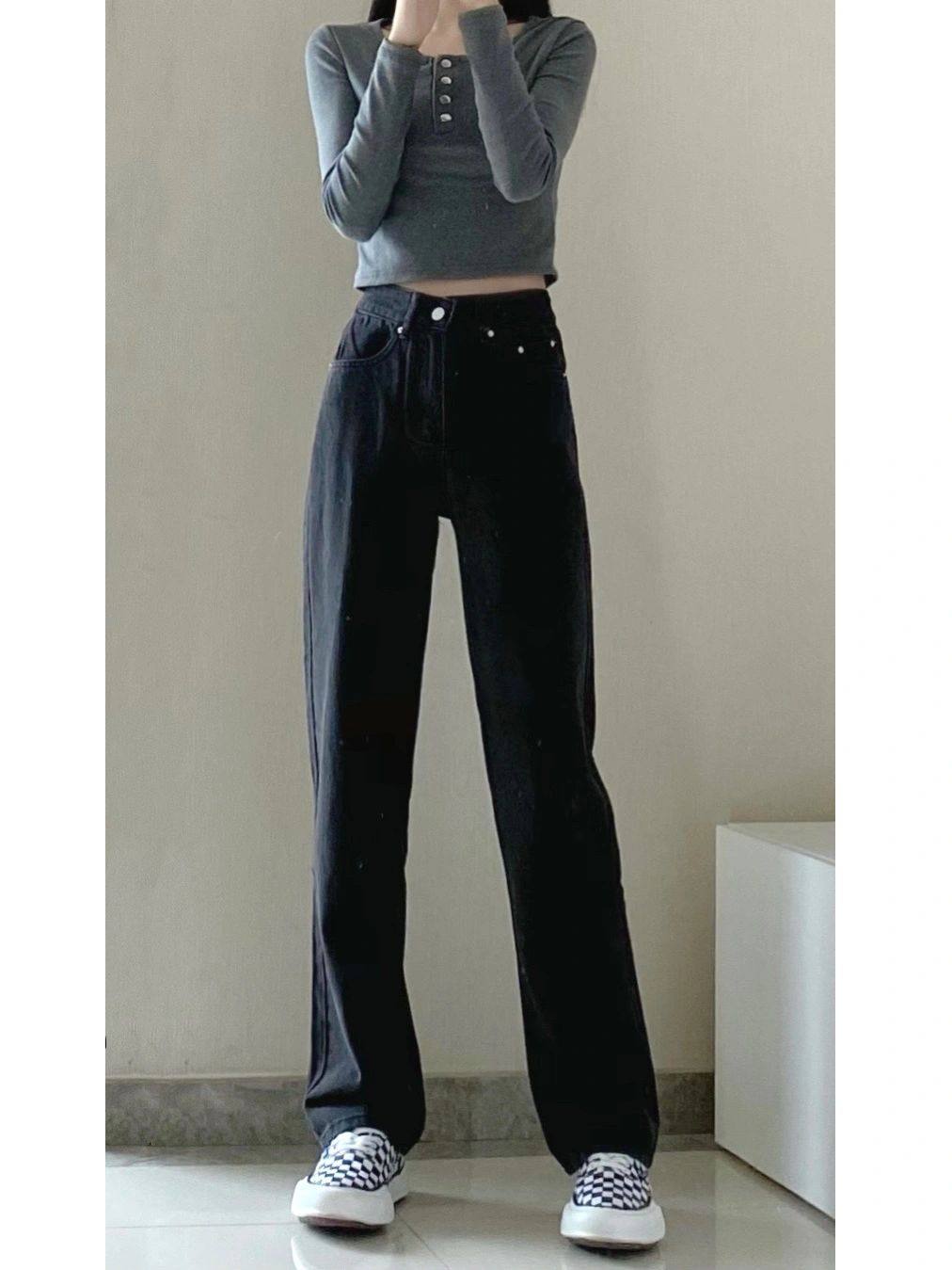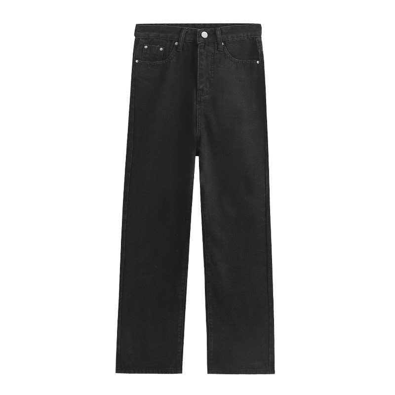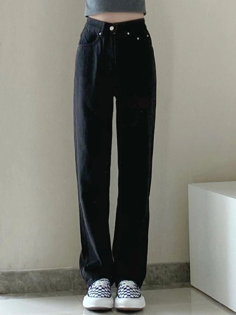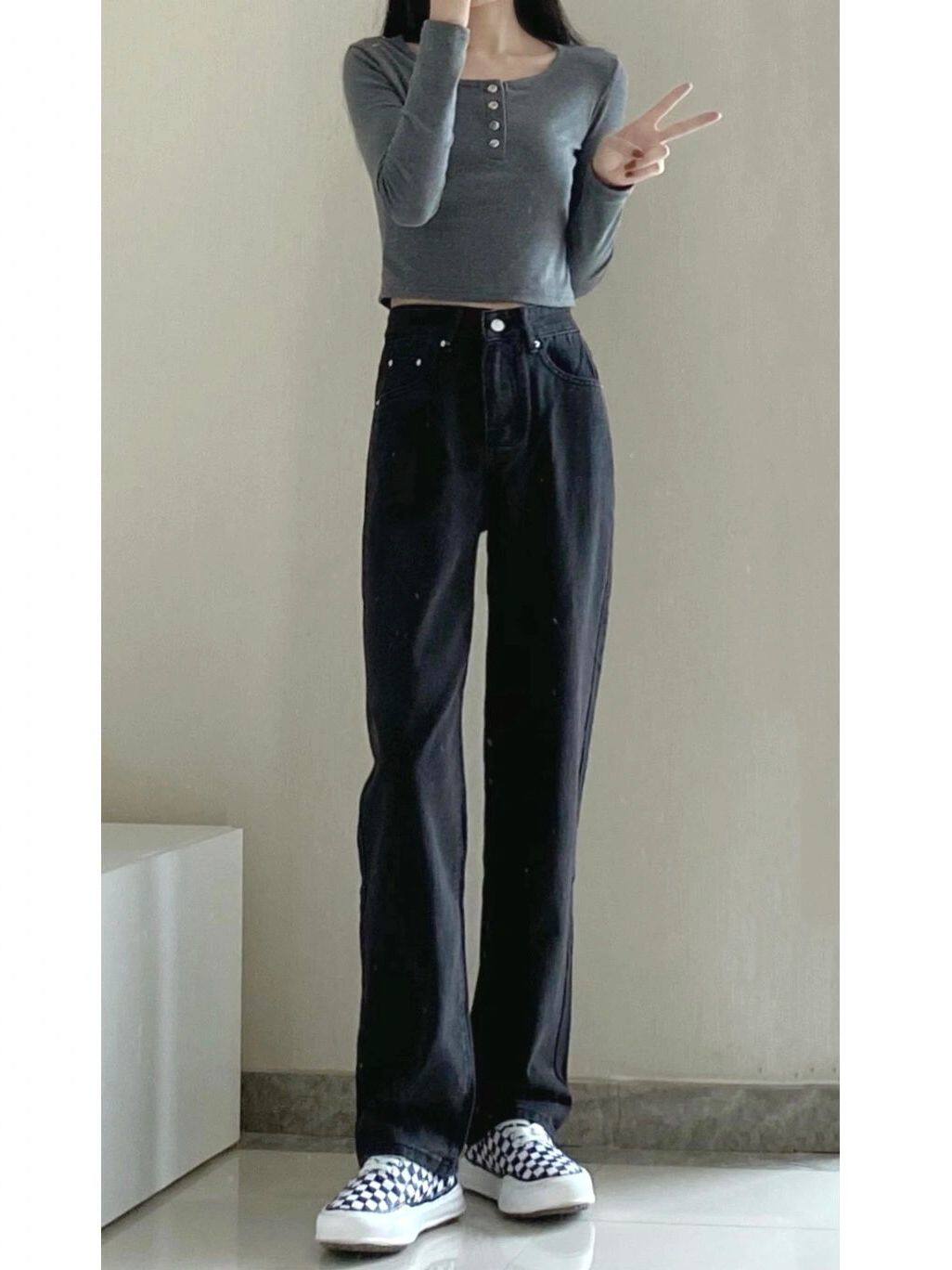 Черные весенние джинсы, летние приталенные штаны, свободный прямой крой, в корейском стиле, высокая талия