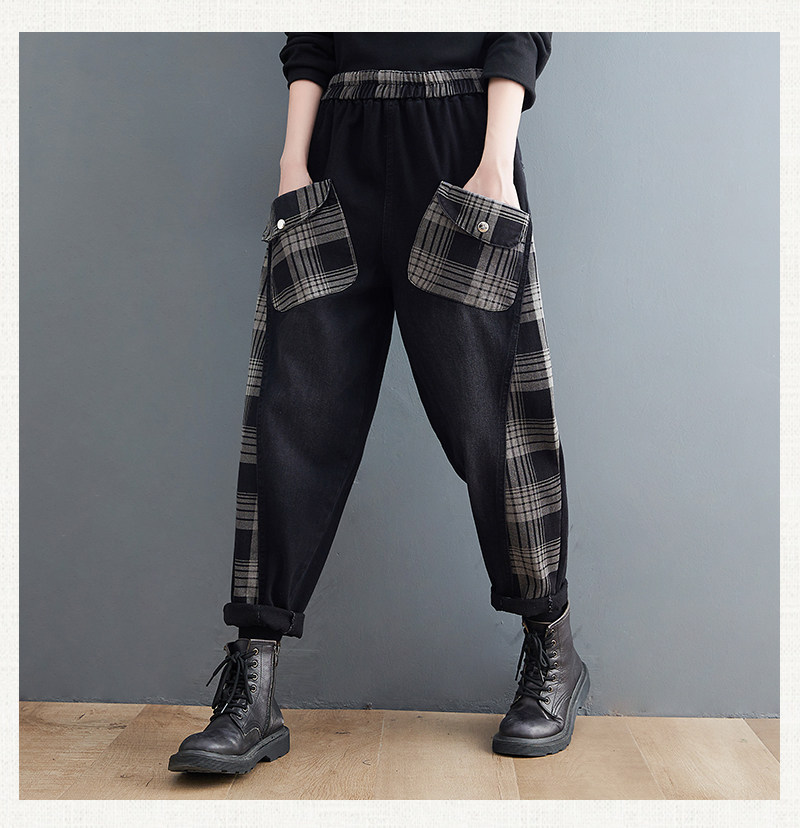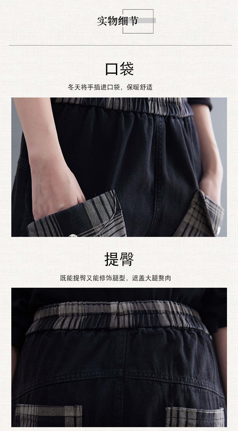 Ретро флисовые демисезонные джинсы с начесом, штаны, леггинсы, большой размер, свободный крой