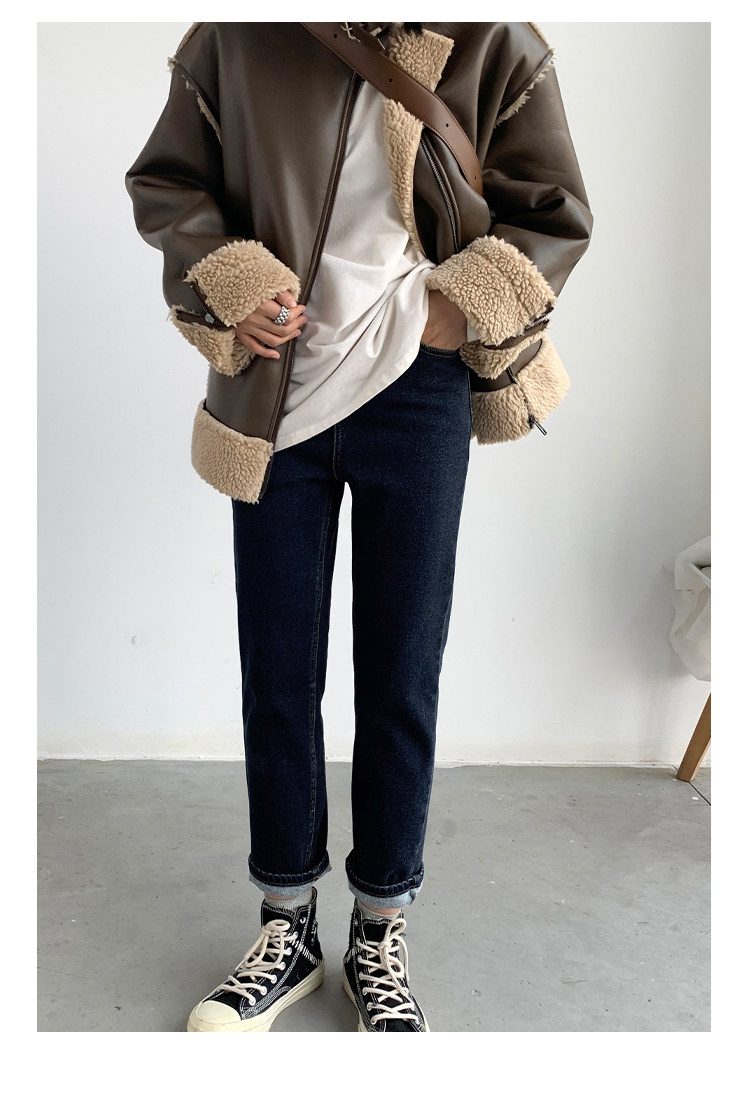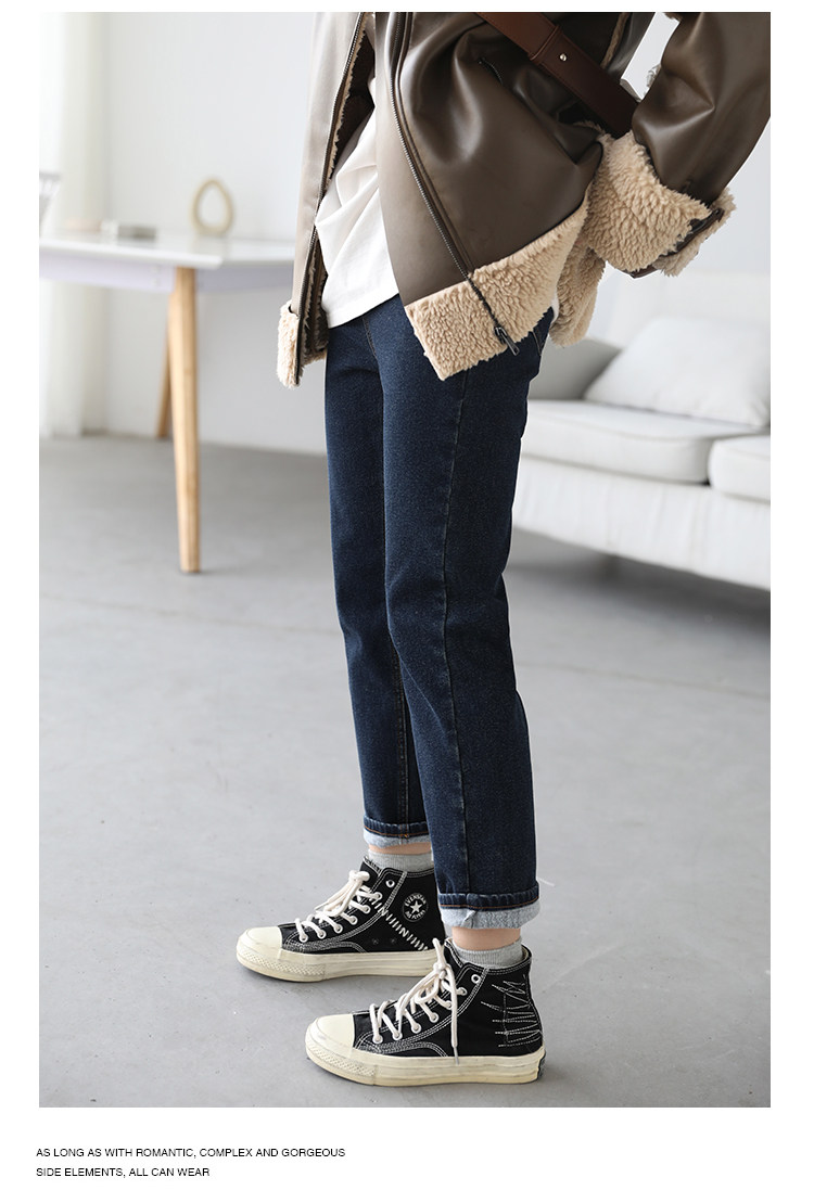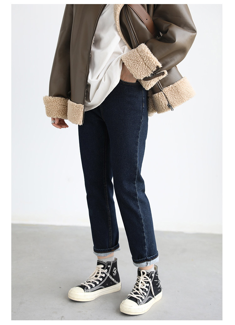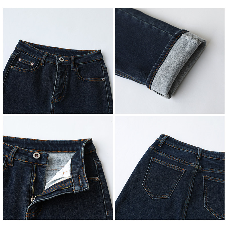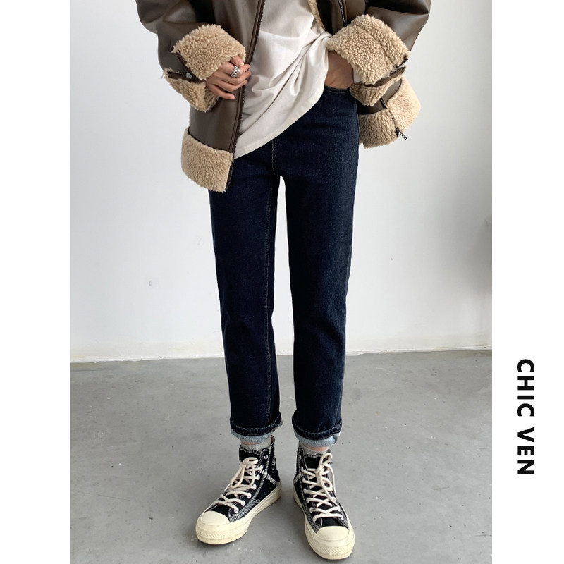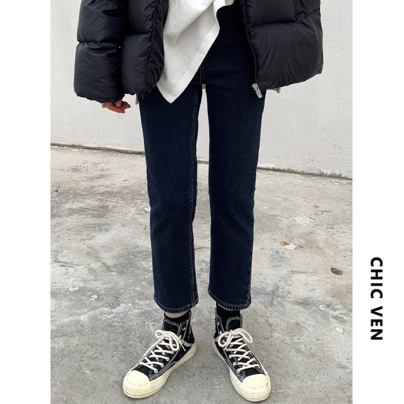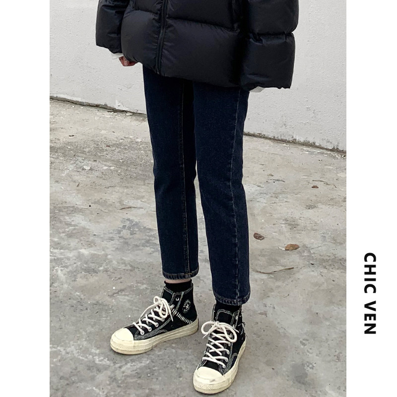 Чиквен "Современная промышленность" ретро -шлифовальные волосы тонкие дымовые брюки Сними девять джинсовые джинсы Женская зима
