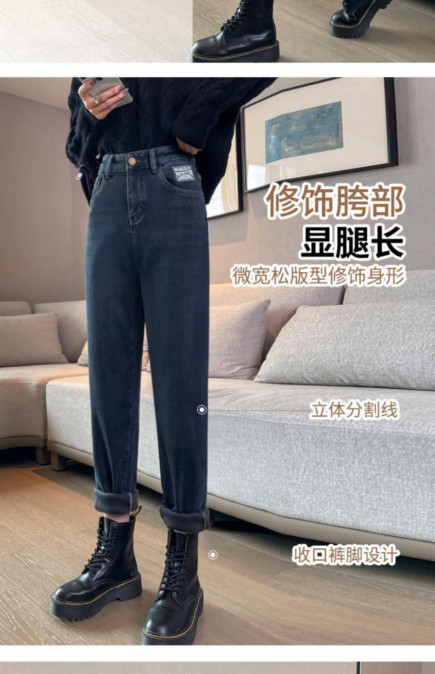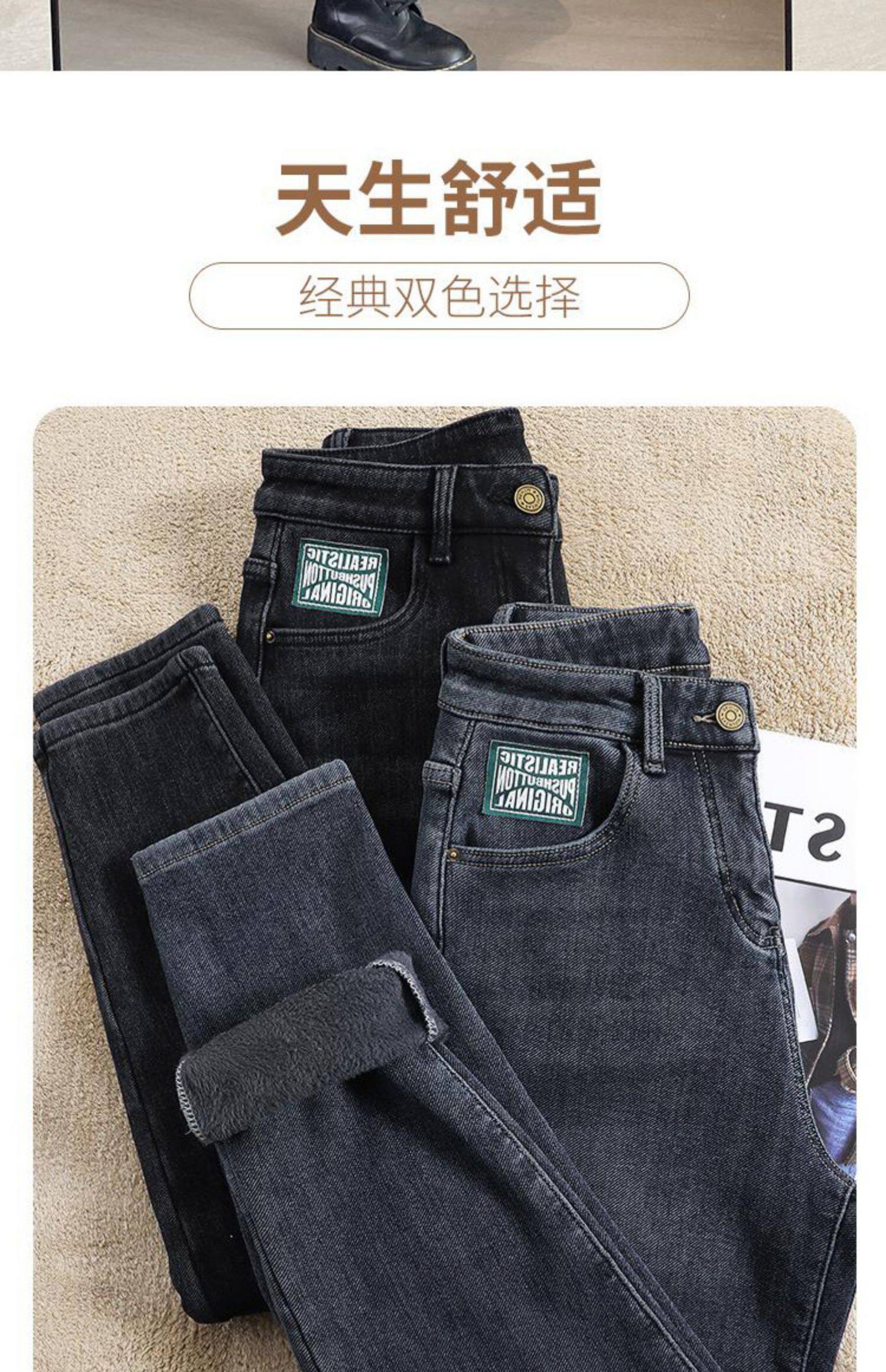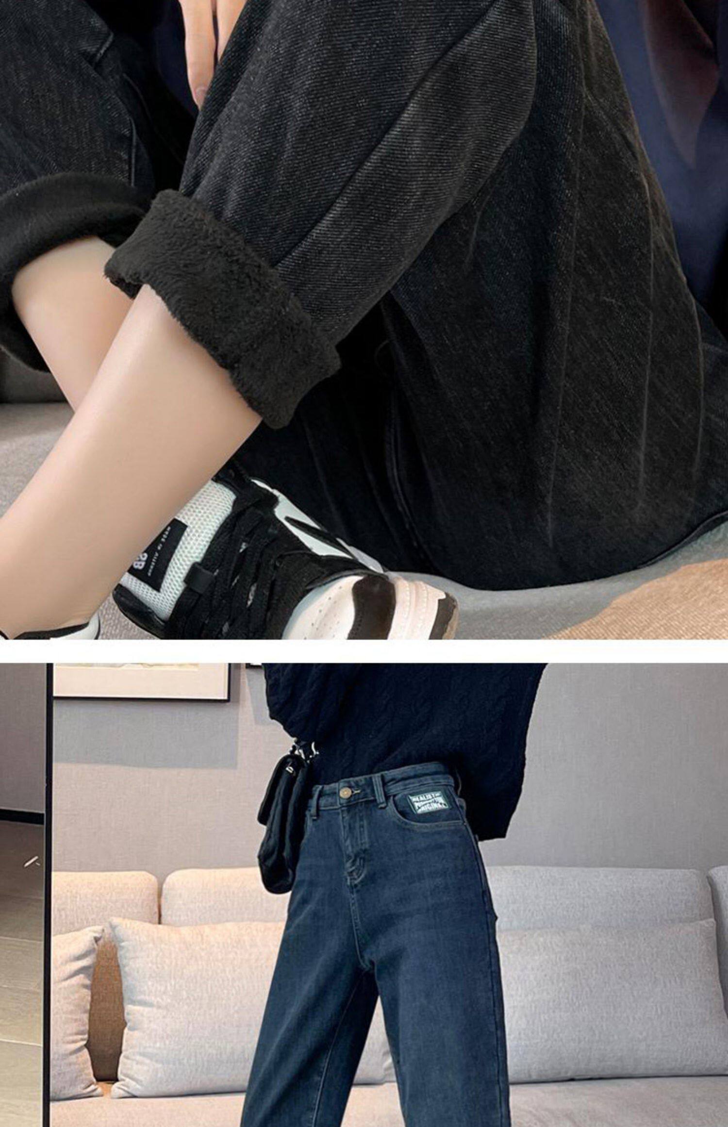 Флисовые весенние джинсы с начесом, штаны, оверсайз, высокая талия, увеличенная толщина, свободный прямой крой