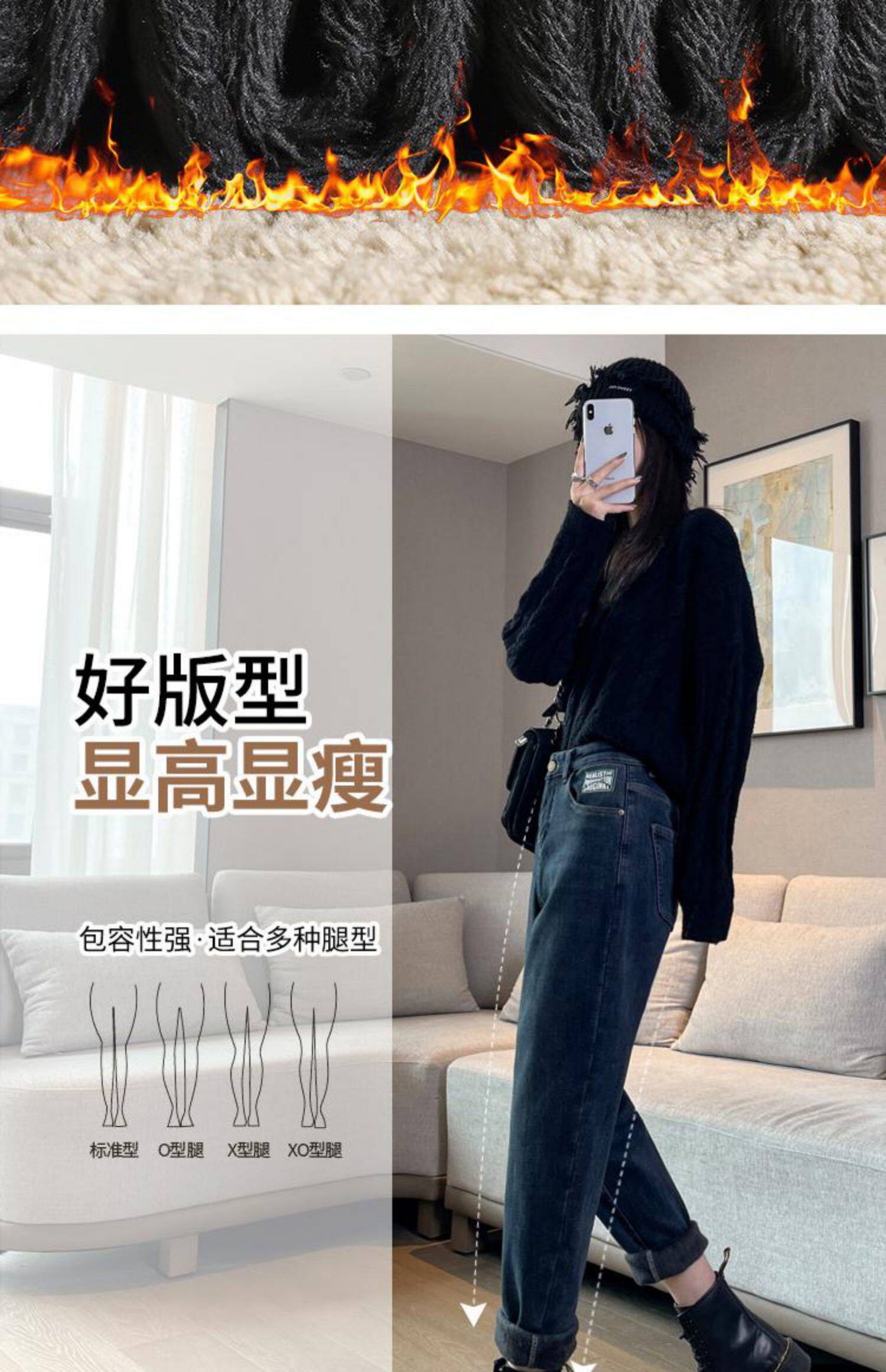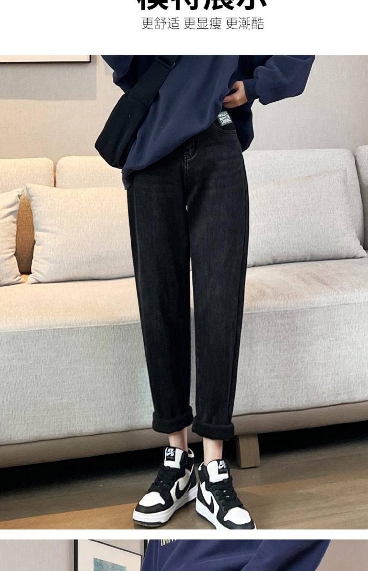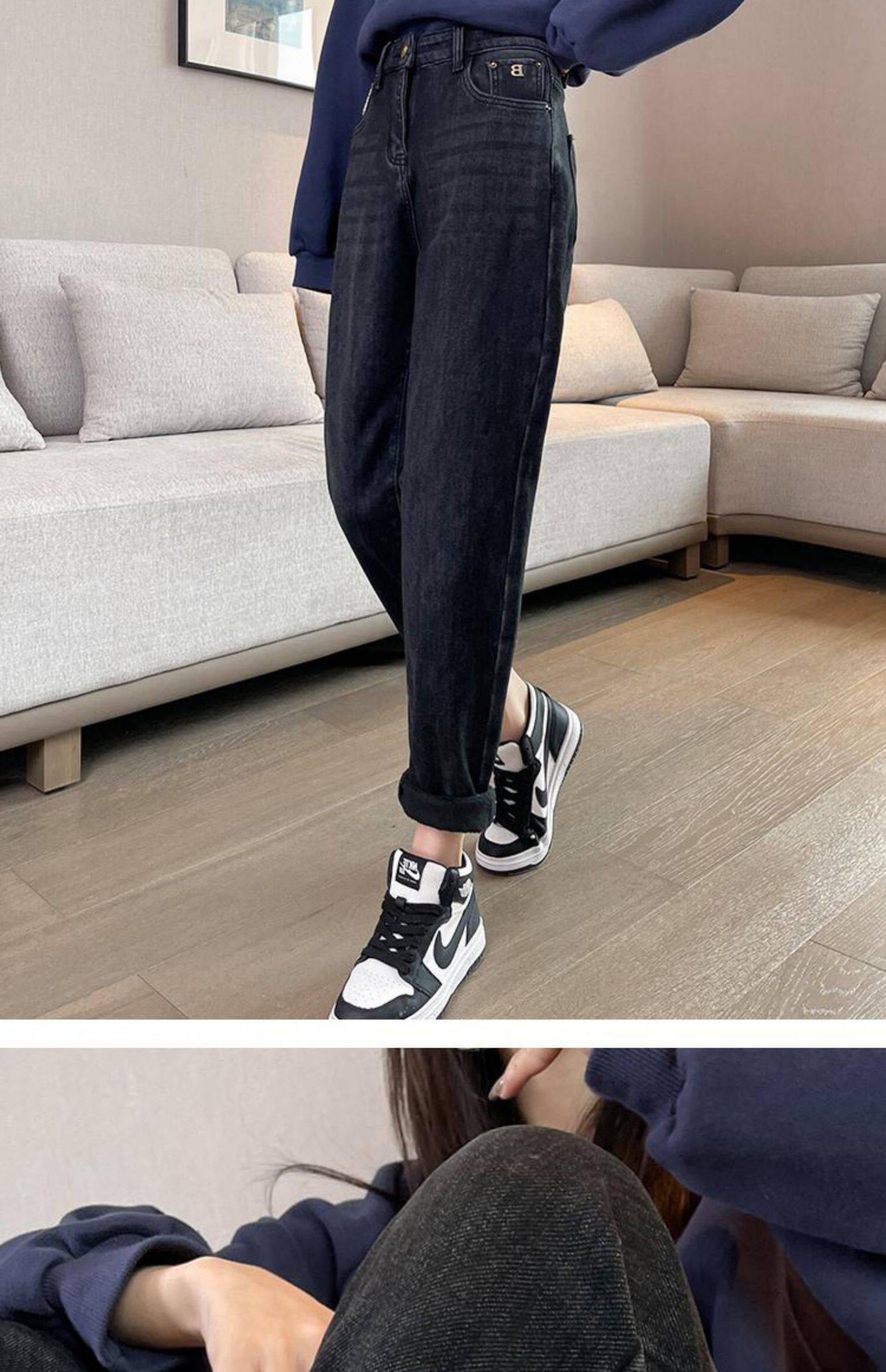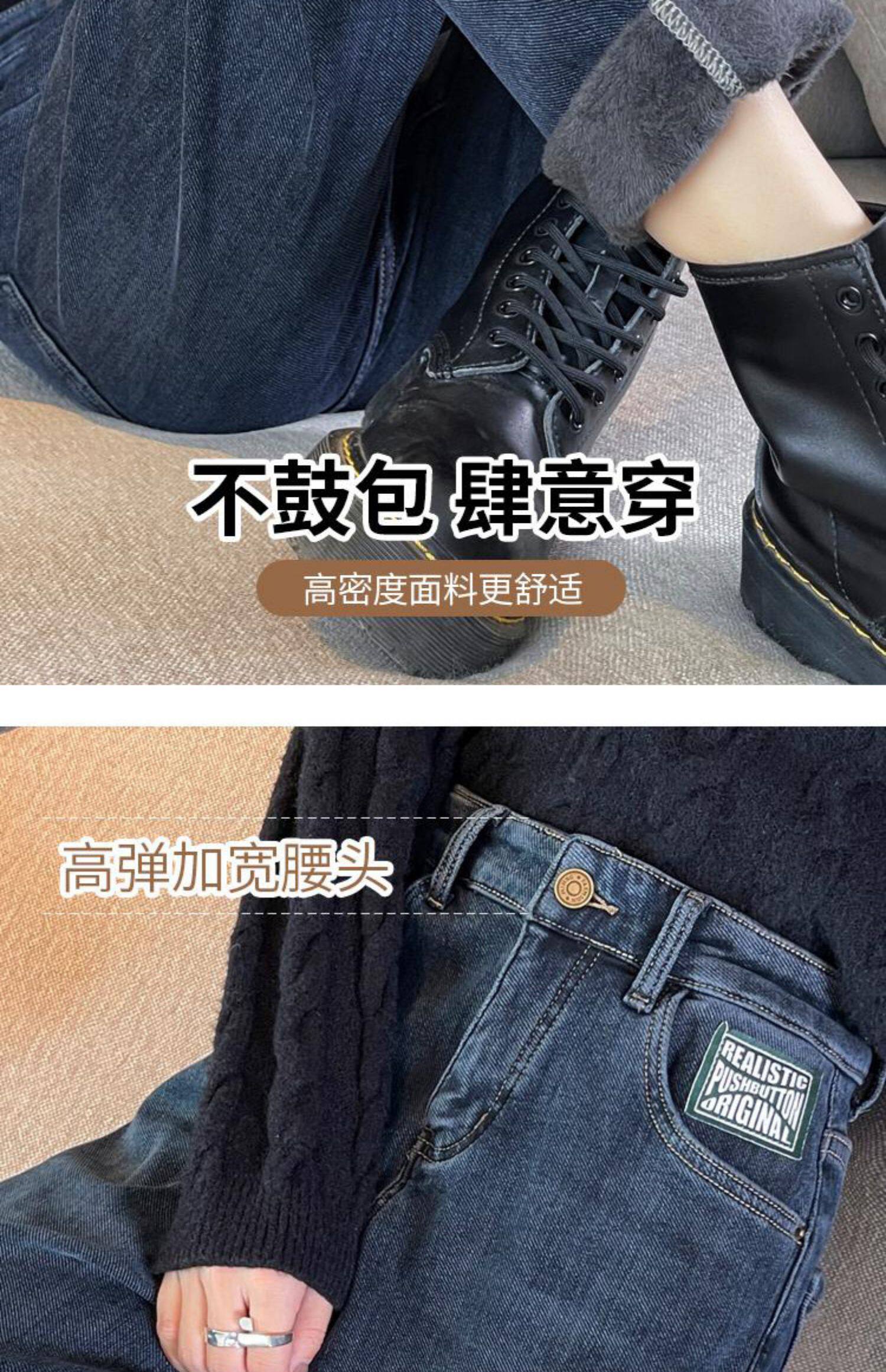 Флисовые весенние джинсы с начесом, штаны, оверсайз, высокая талия, увеличенная толщина, свободный прямой крой