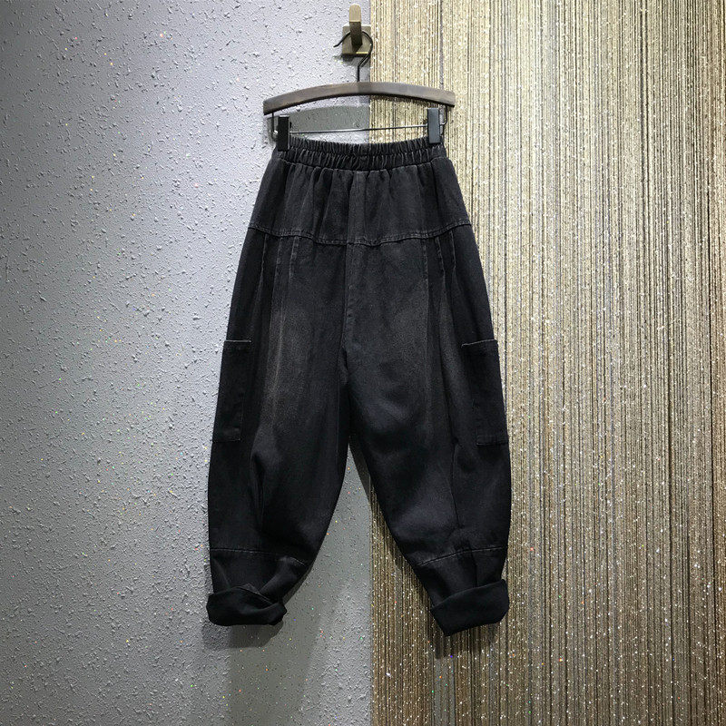 Демисезонные флисовые джинсы, штаны, коллекция 2021, эластичная талия, оверсайз