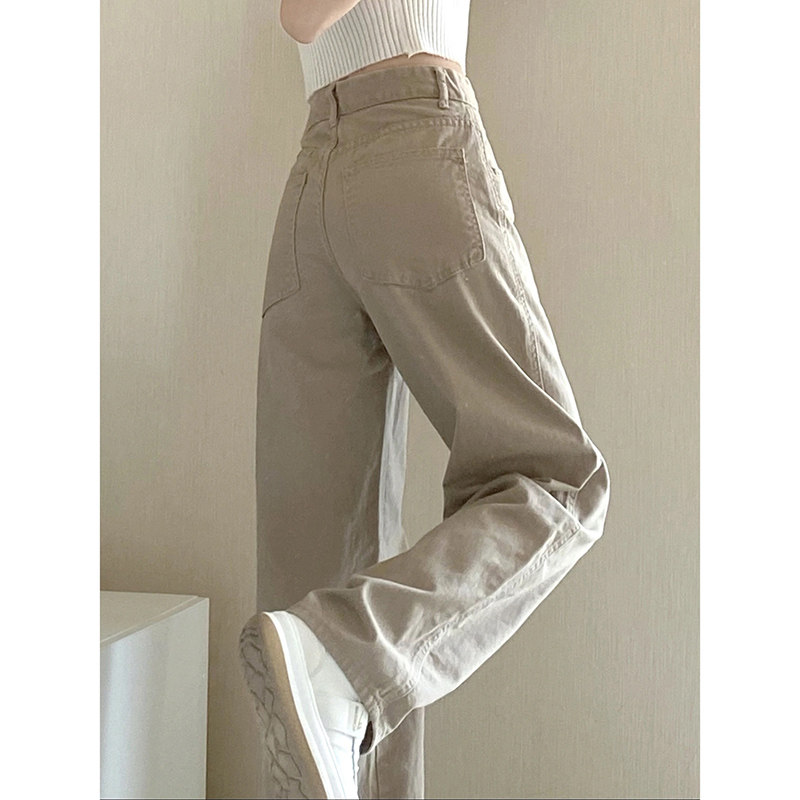 Приталенные хаки ретро джинсы, штаны, для формы тела «груша», высокая талия, большой размер, свободный крой, в западном стиле