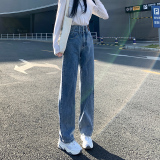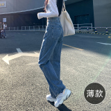 Штаны, летние тонкие джинсы, высокая талия, подходит для подростков, свободный прямой крой