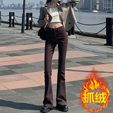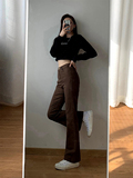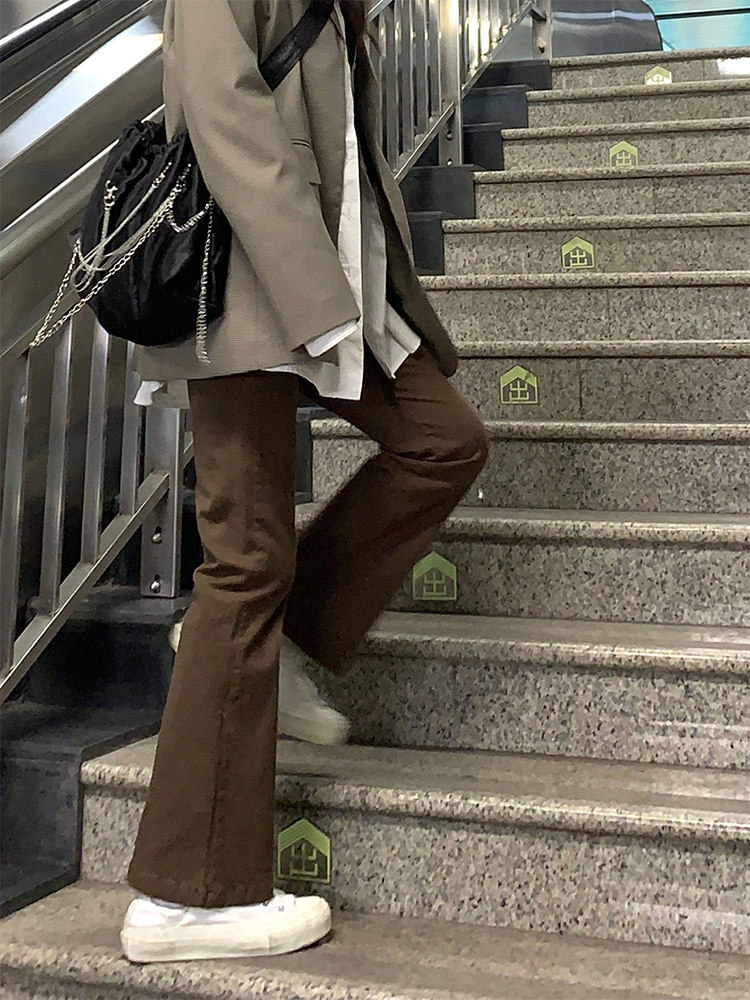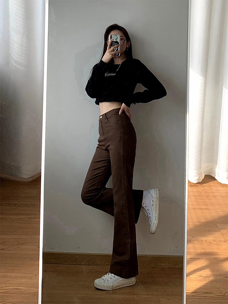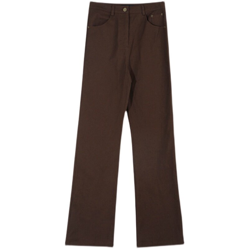 Приталенные коричневые штаны-клёш, универсальный ретро консилер, штаны, для формы тела «груша», высокая талия, большой размер