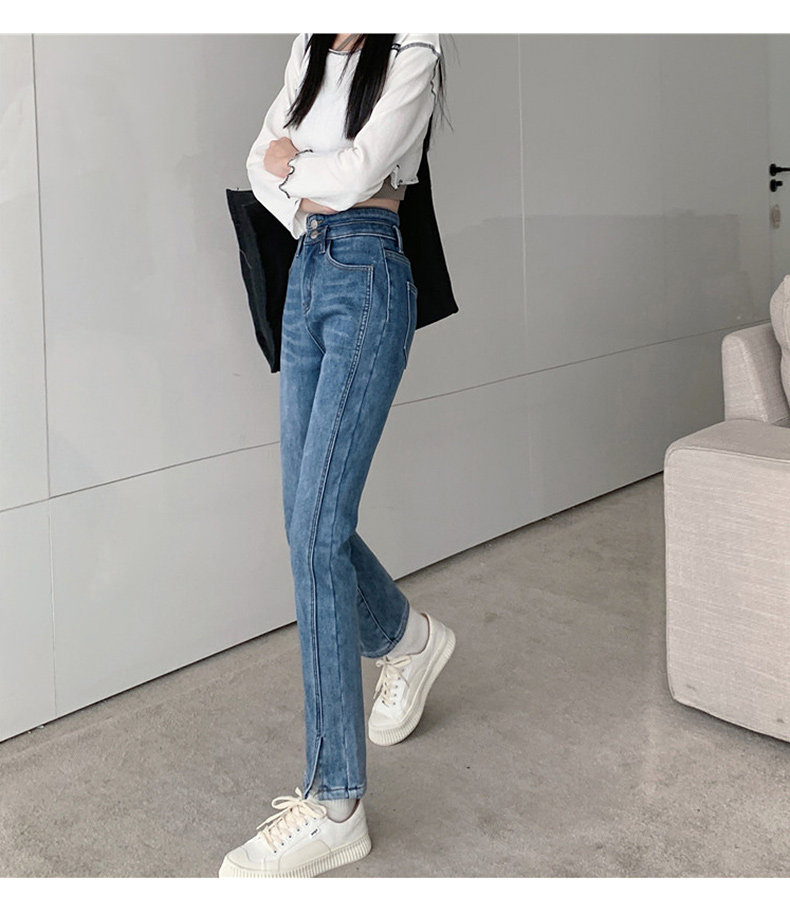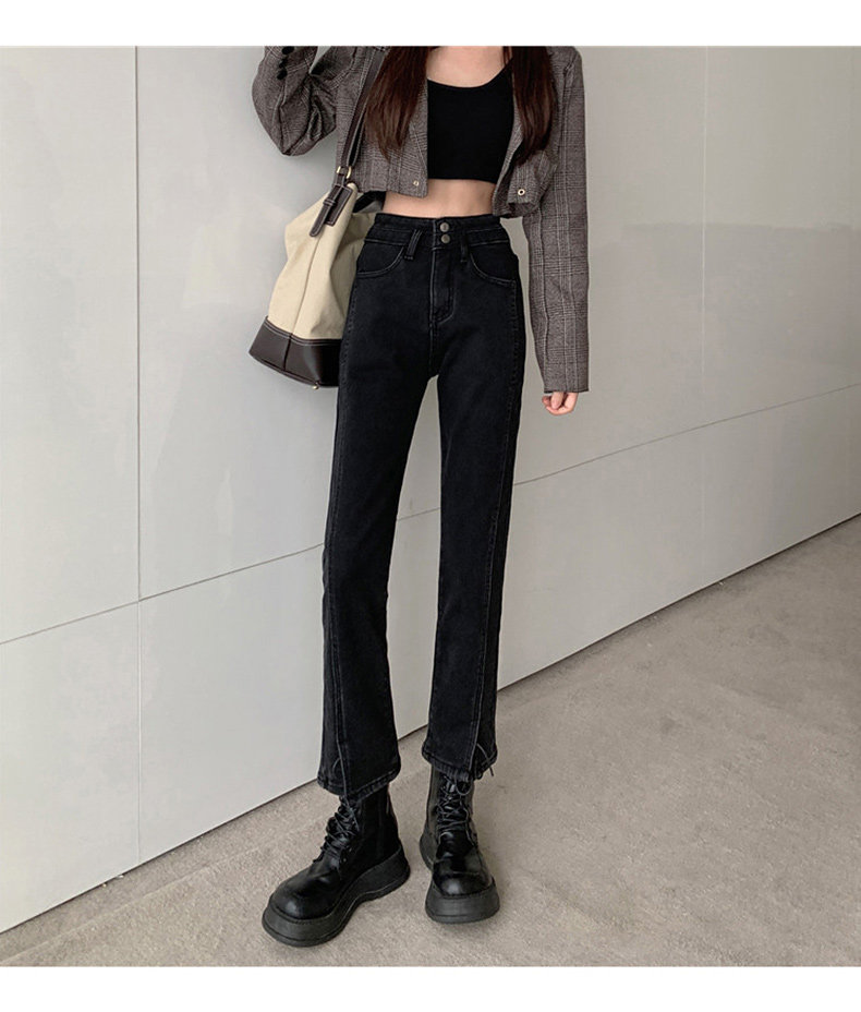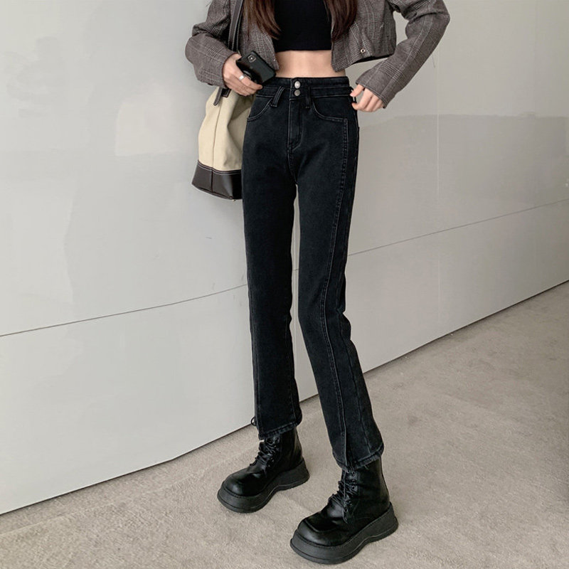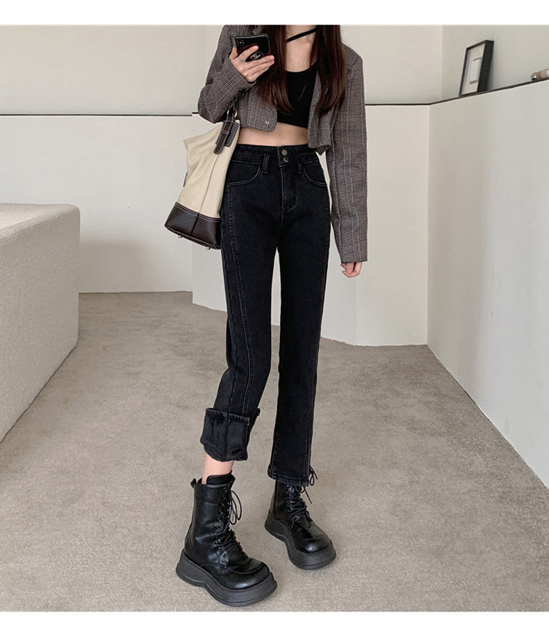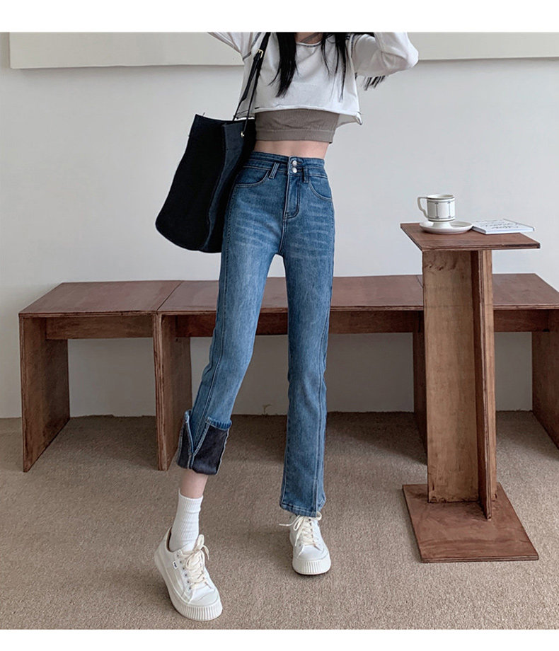 Зимние флисовые джинсы с начесом, штаны, сексуальные штаны-клёш, высокая талия, 2021 года, новая коллекция, подходит для подростков