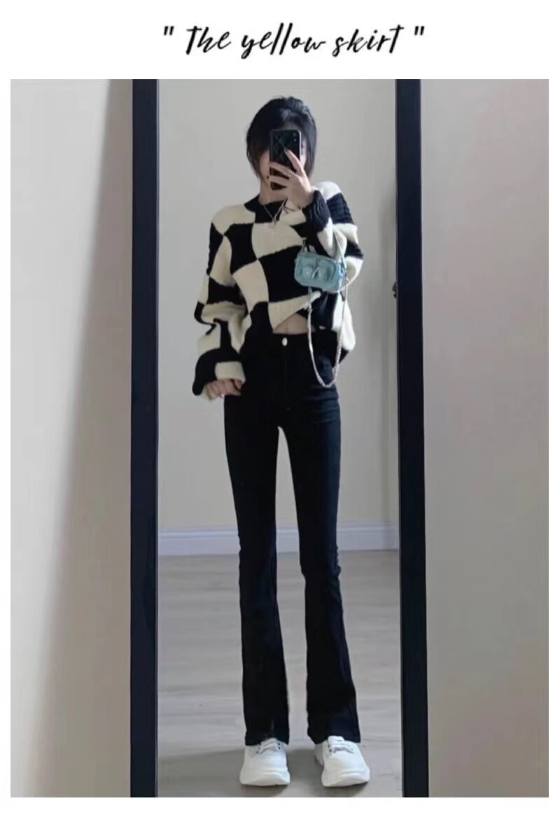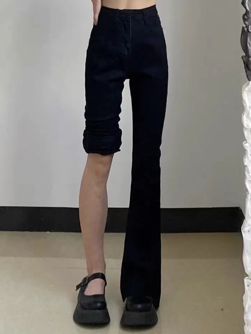 Черные цветные сапоги, демисезонные шерстяные джинсы, эластичные штаны-клёш, высокая талия, свободный крой, облегающий крой