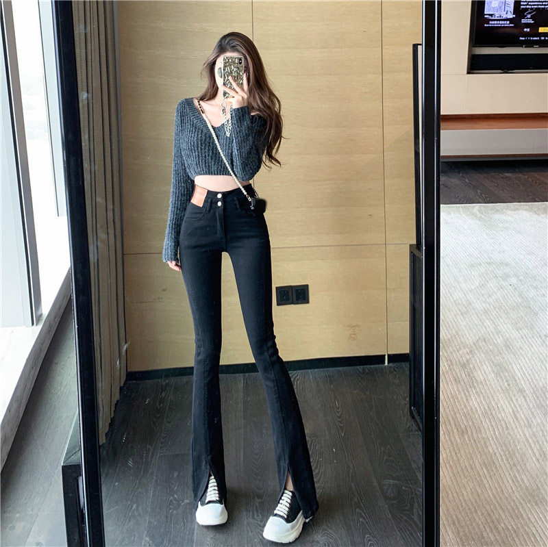 Черные джинсовые джинсы, весенние штаны, штаны-клёш, по фигуре, 2023, высокая талия, свободный прямой крой