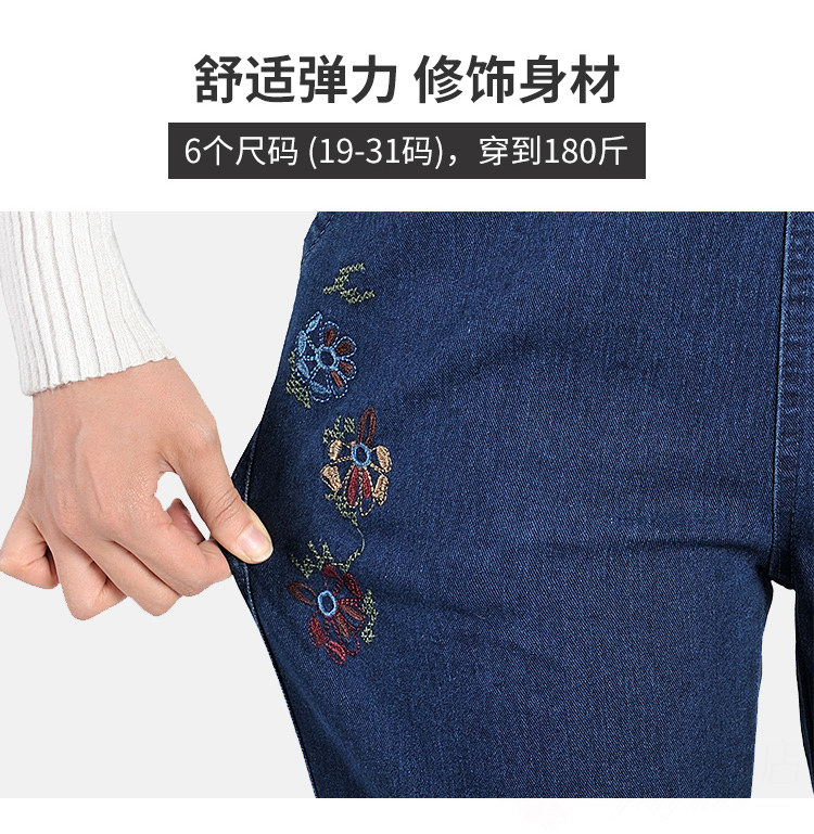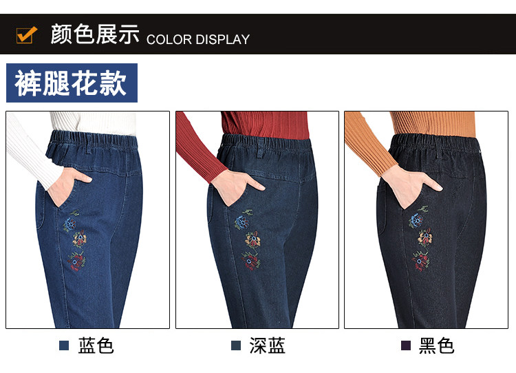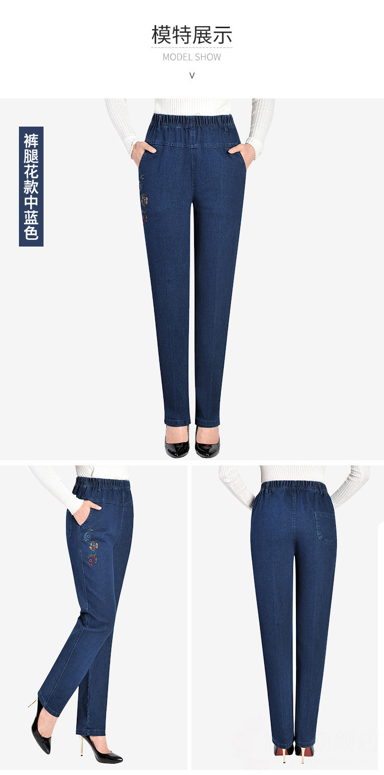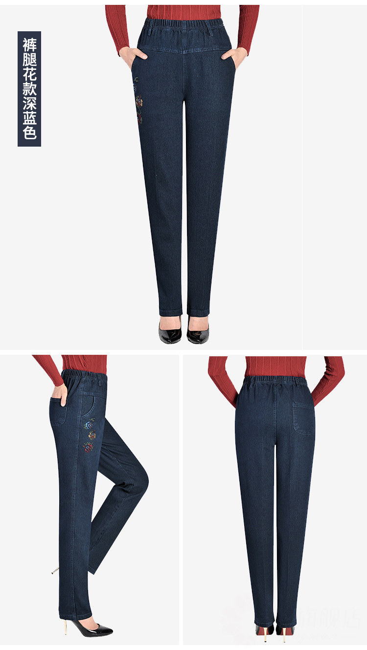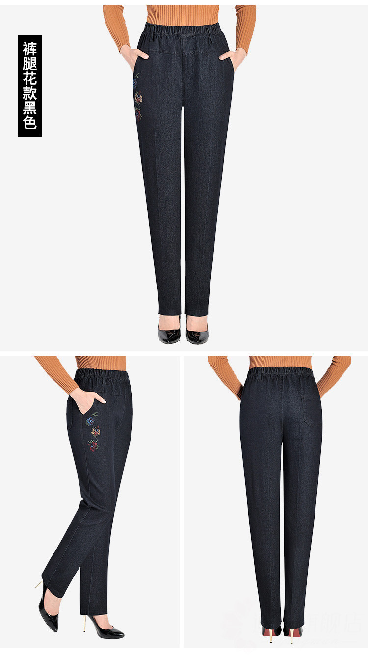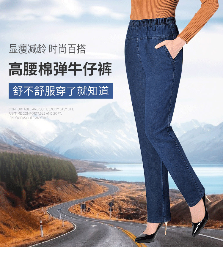 Утепленные джинсы, эластичные штаны, для среднего возраста, увеличенная толщина, высокая талия, большой размер, свободный прямой крой, эластичная талия