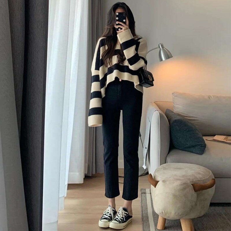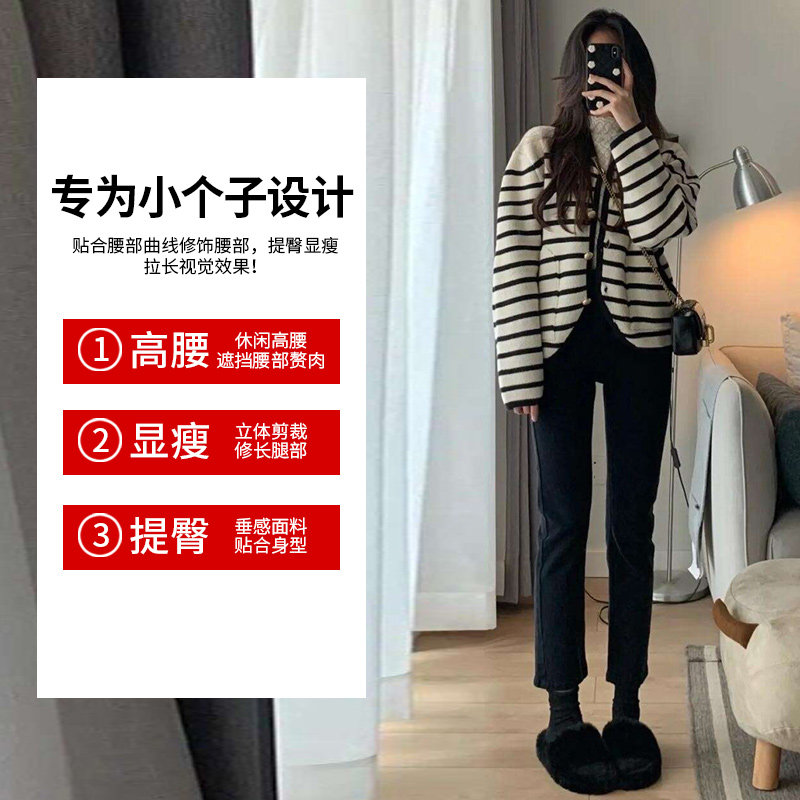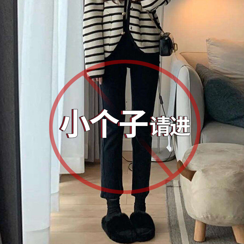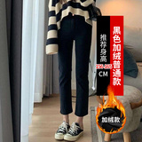 Демисезонные прямые свободные джинсы, утепленные штаны, черные ретро леггинсы, подходит для подростков, облегающий крой, по фигуре
