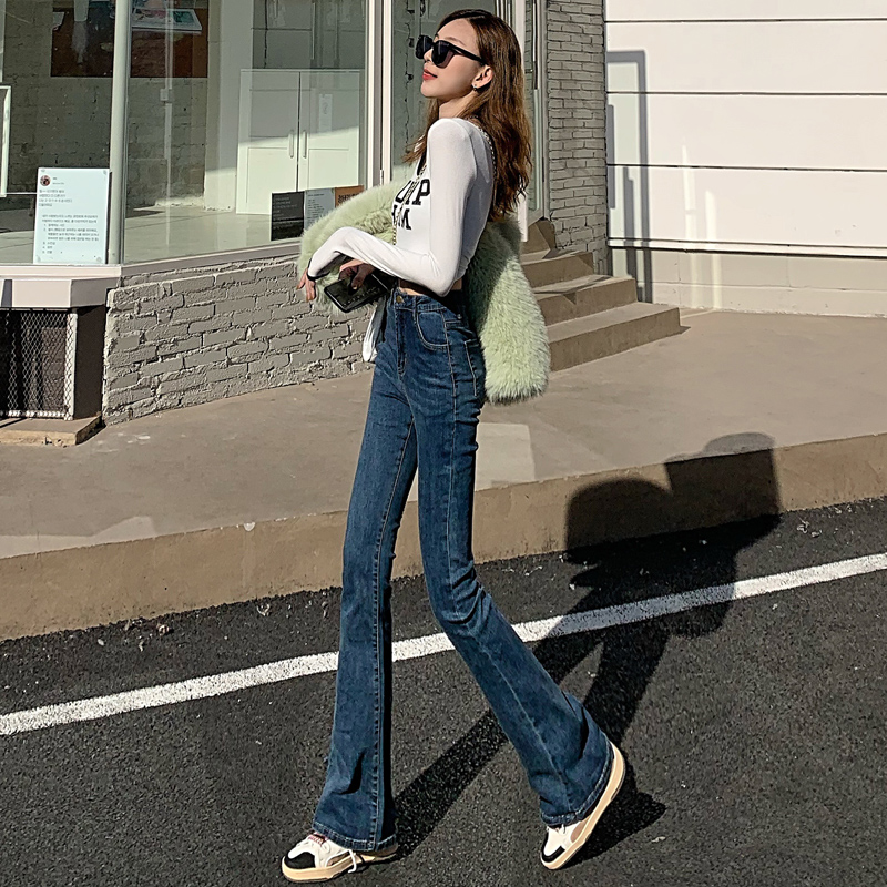 Весенние эластичные штаны, джинсы, универсальные штаны-клёш, 2022, высокая талия, по фигуре