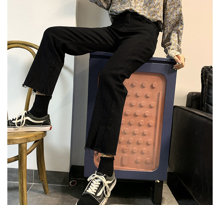 Черные демисезонные прямые свободные джинсы, штаны, дизайнерские леггинсы, свободный прямой крой, тренд сезона