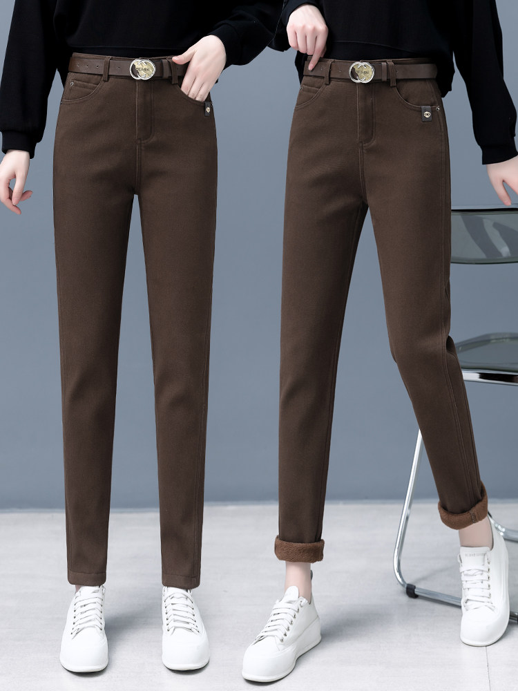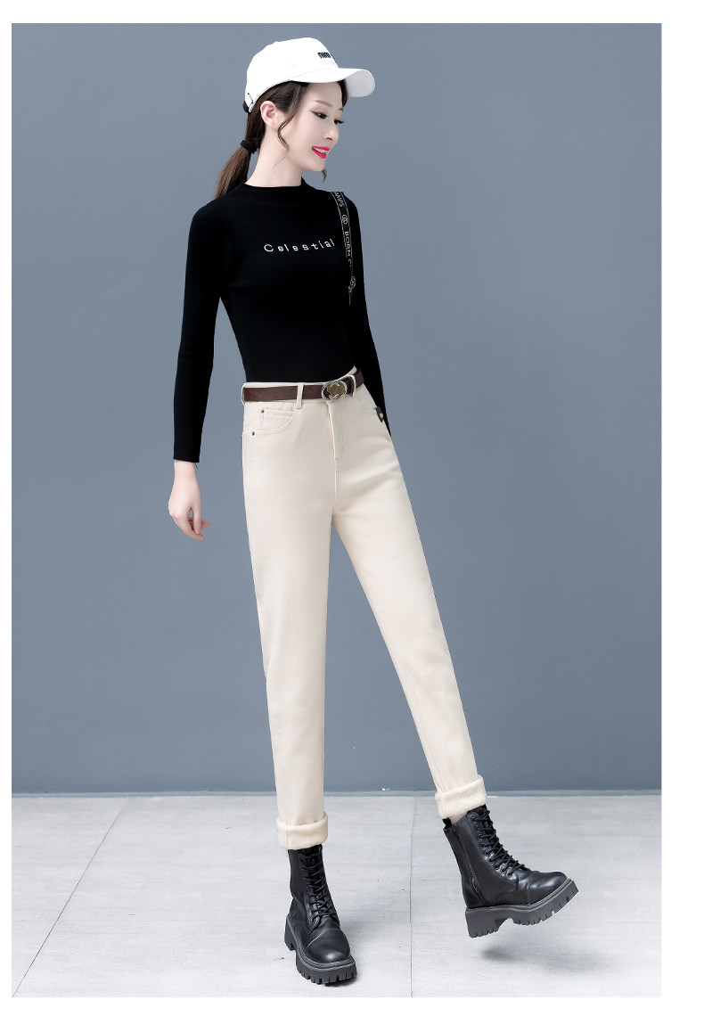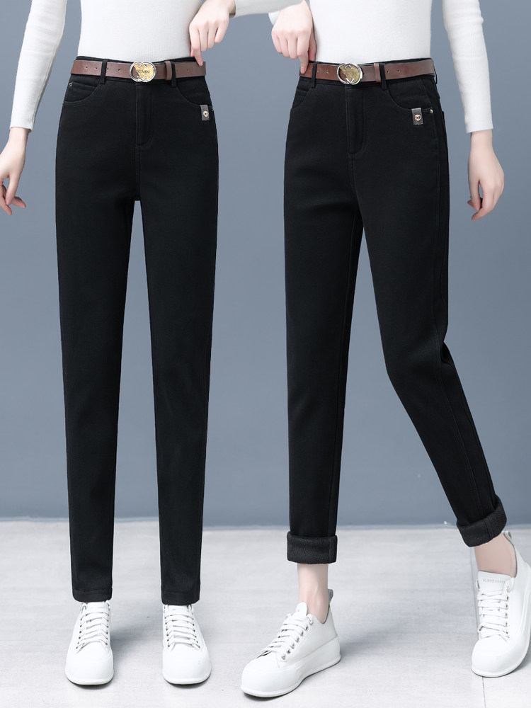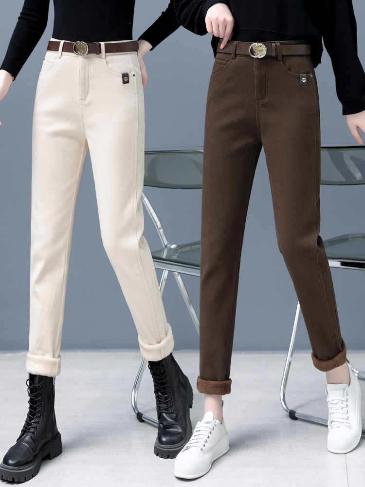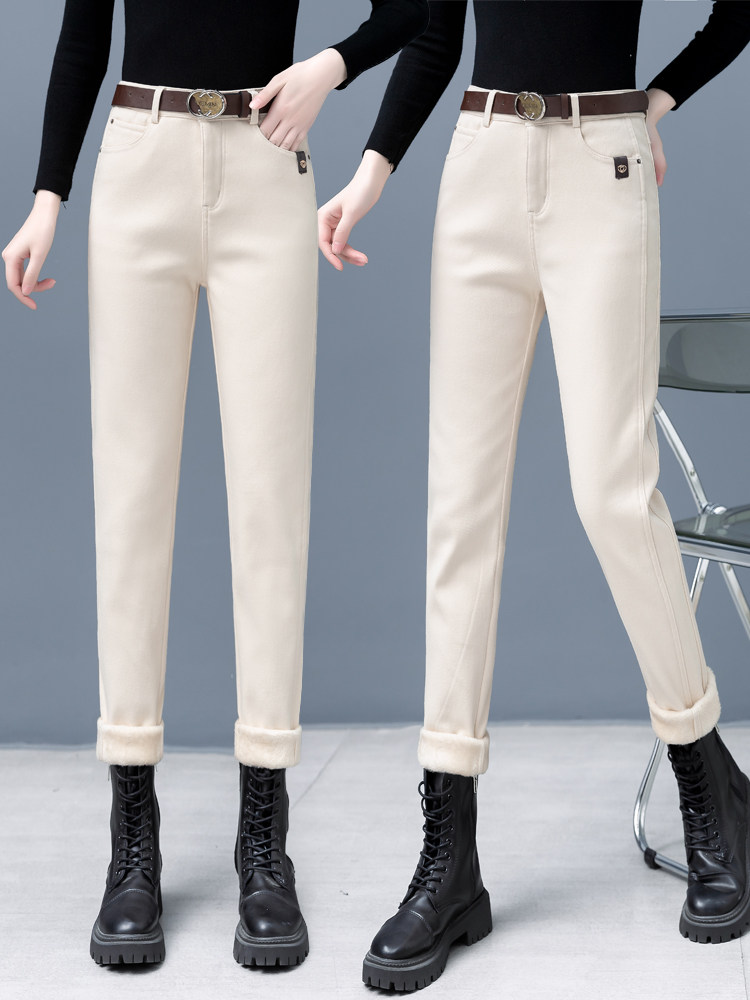 Флисовые демисезонные джинсы с начесом, штаны, леггинсы, 2024 года, высокая талия, оверсайз