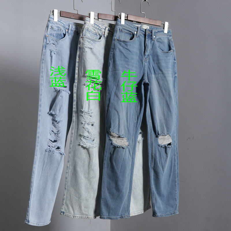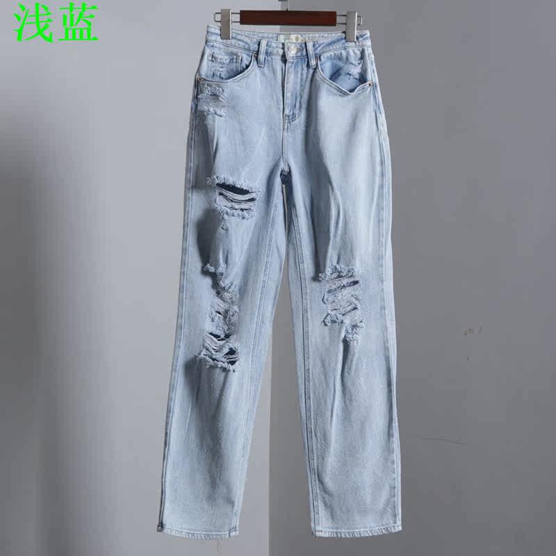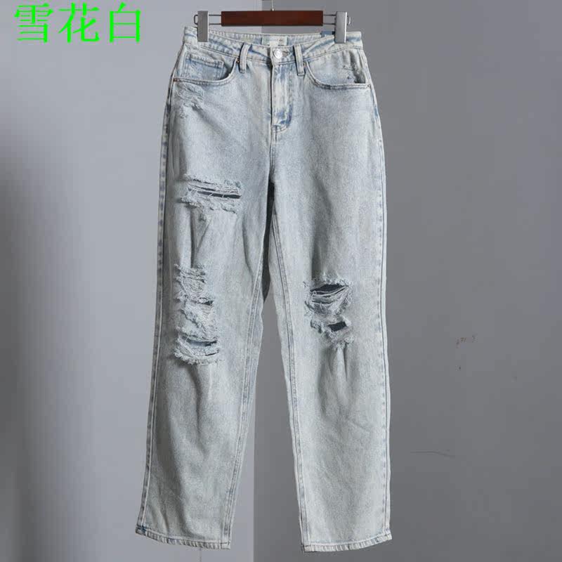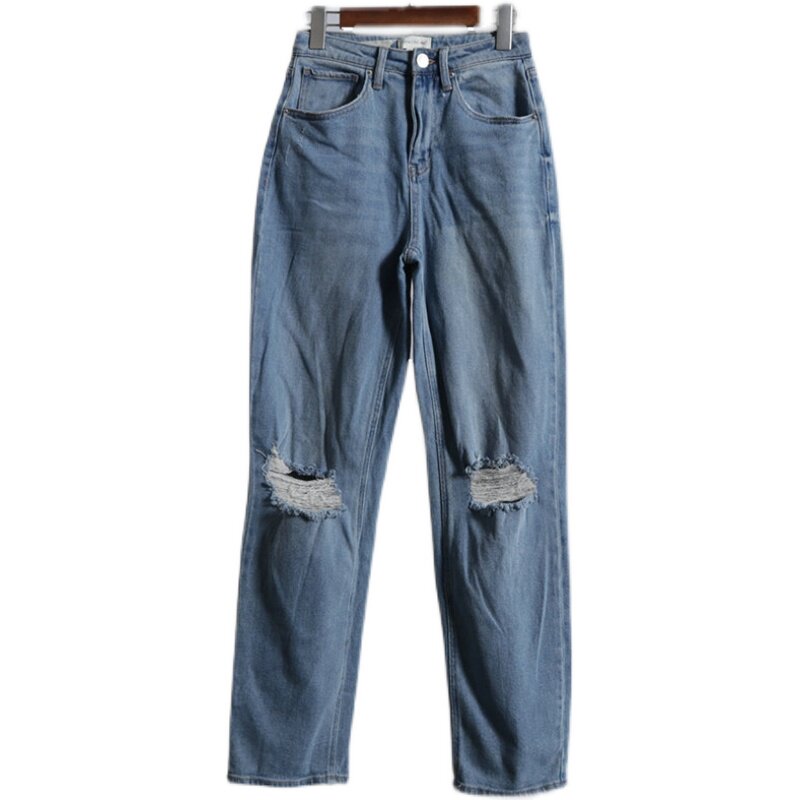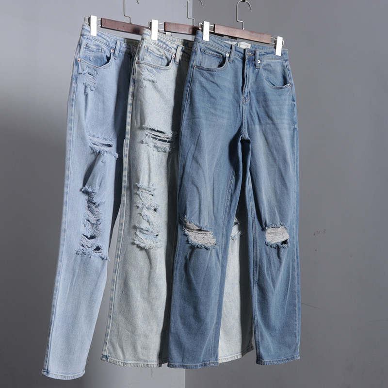 (Трансграничная торговля), светлые прямые свободные джинсы, штаны, высокая талия, свободный прямой крой