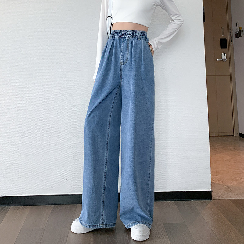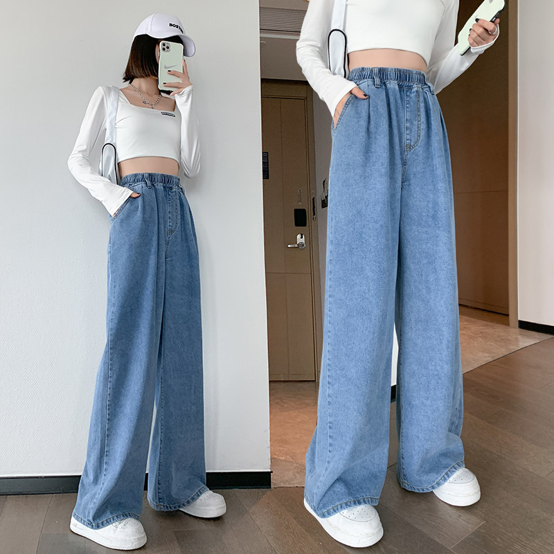 Очень большие джинсы, осенние демисезонные штаны, большой размер, высокая талия, эластичная талия, свободный прямой крой