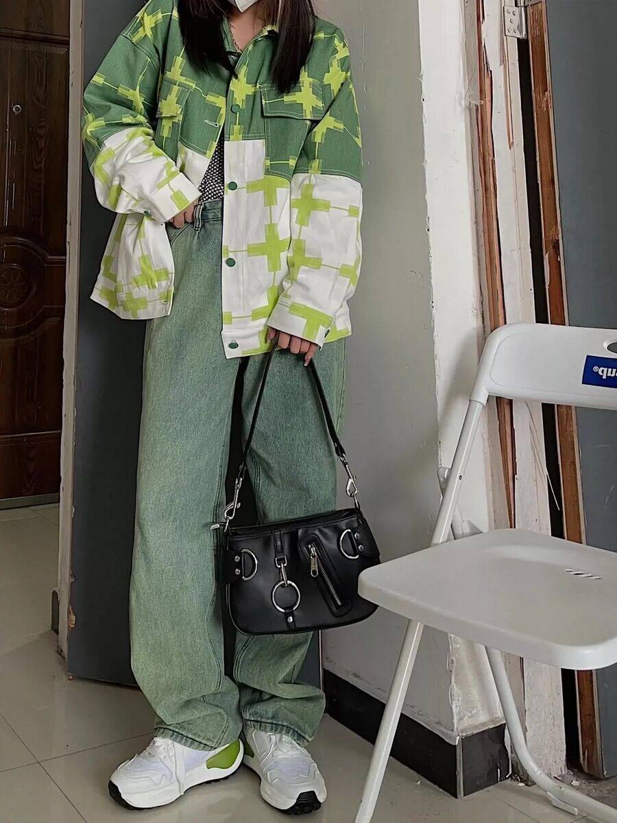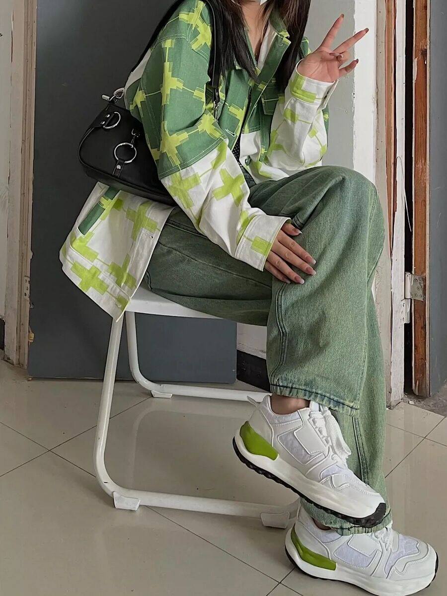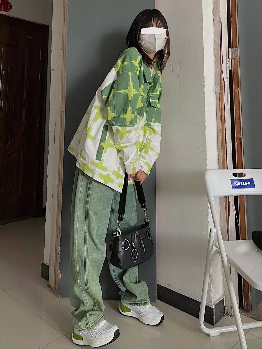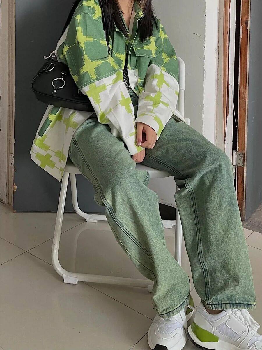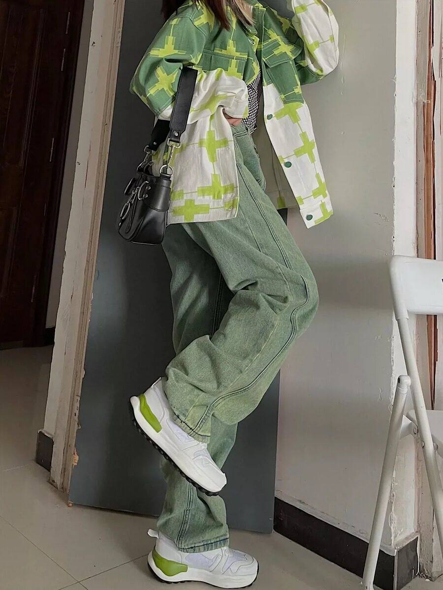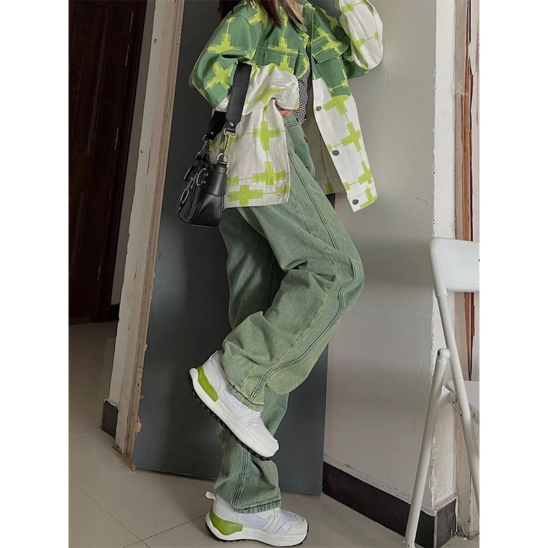 Tide, зеленые осенние джинсы, демисезонные сексуальные штаны, высокая талия, свободный прямой крой, подходит для подростков