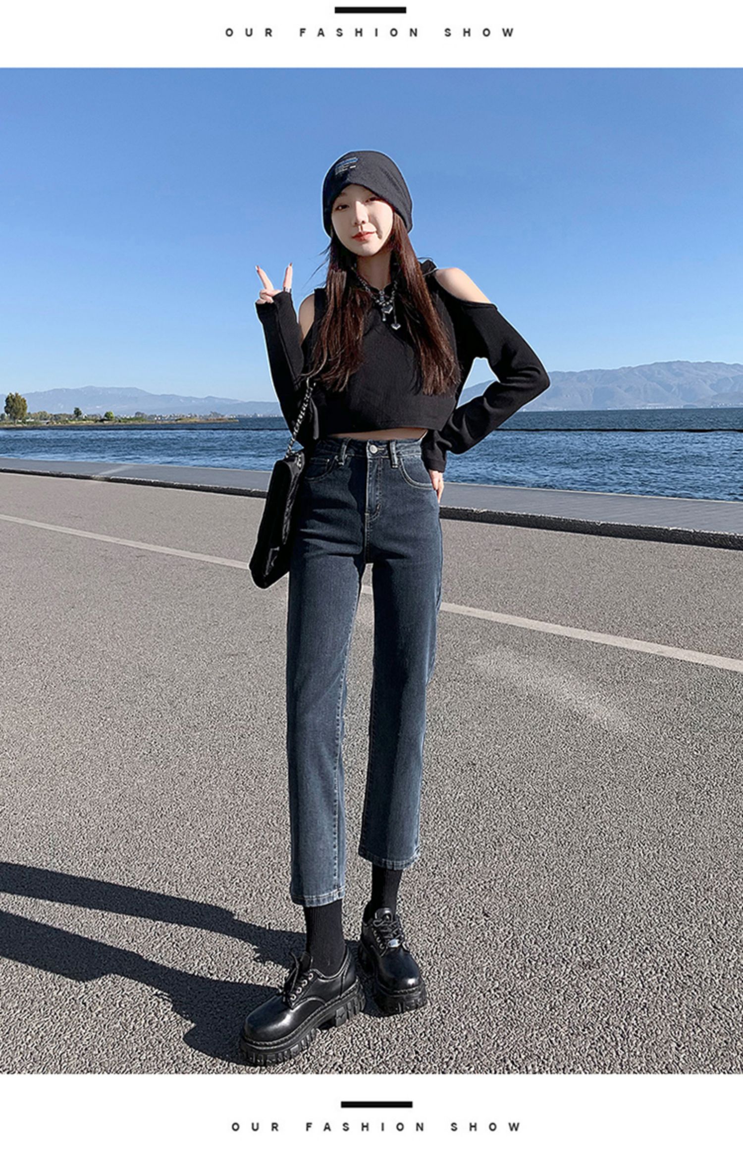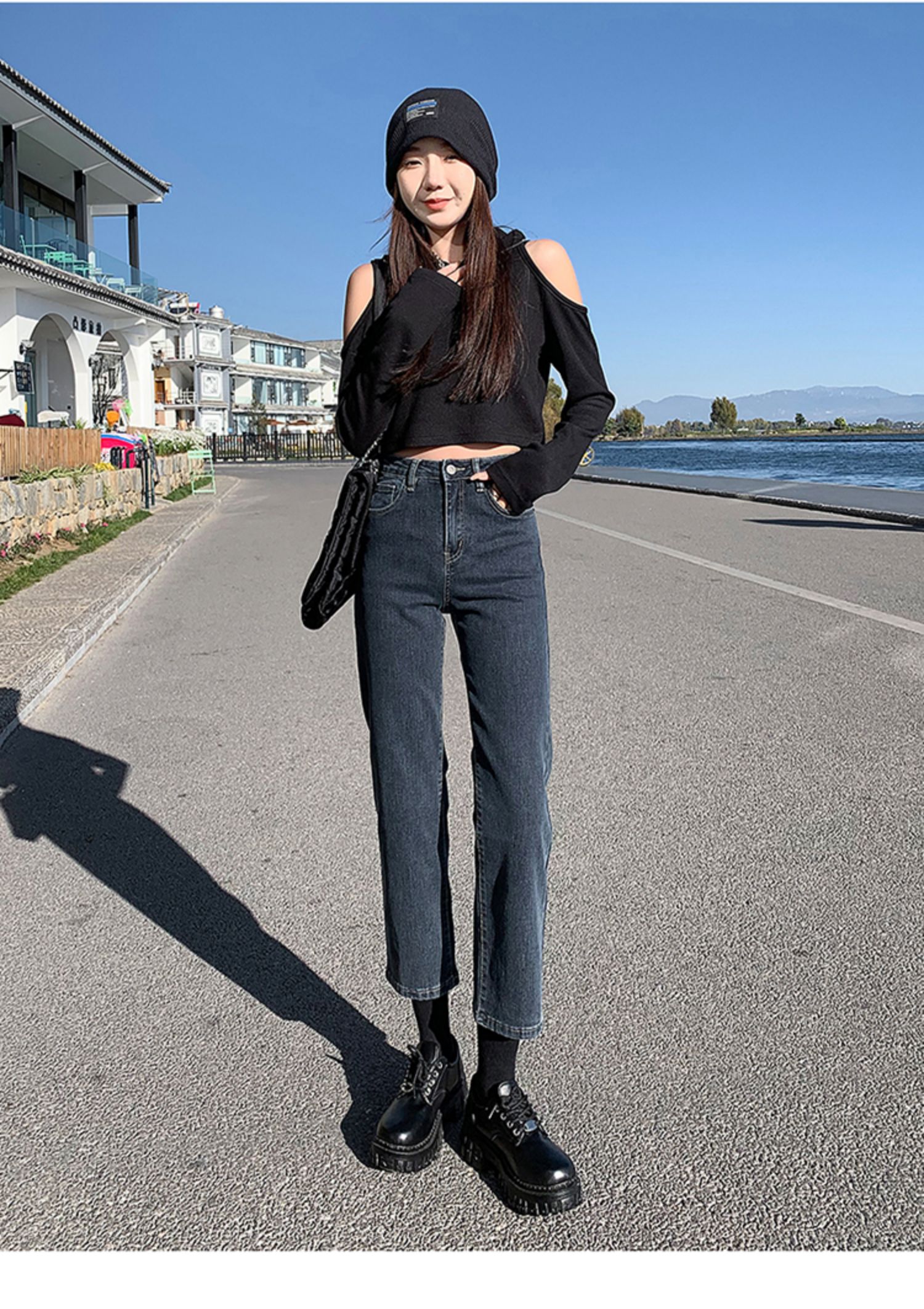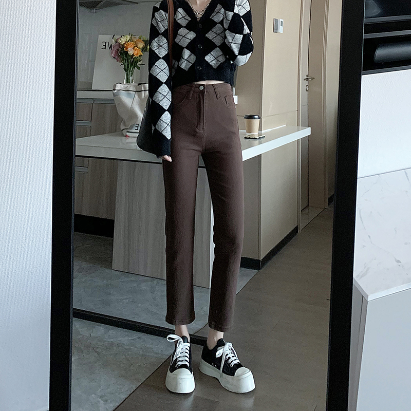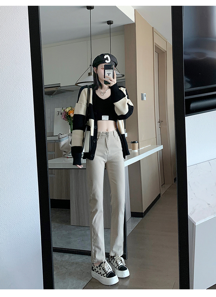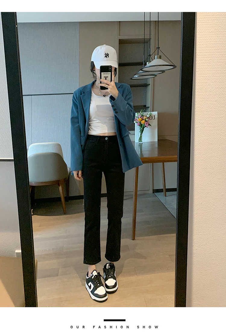 Прямые свободные джинсы, осенние черные штаны, высокая талия, подходит для подростков